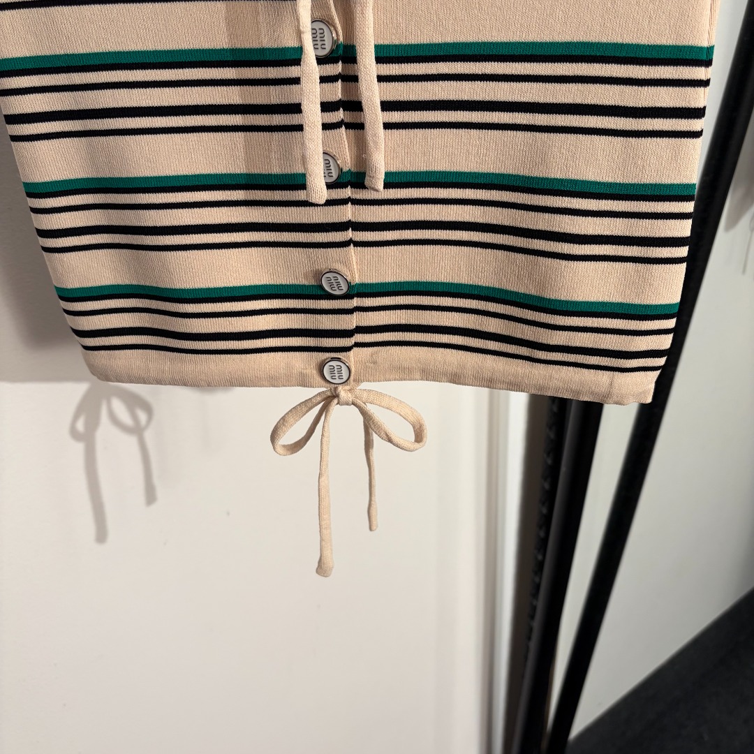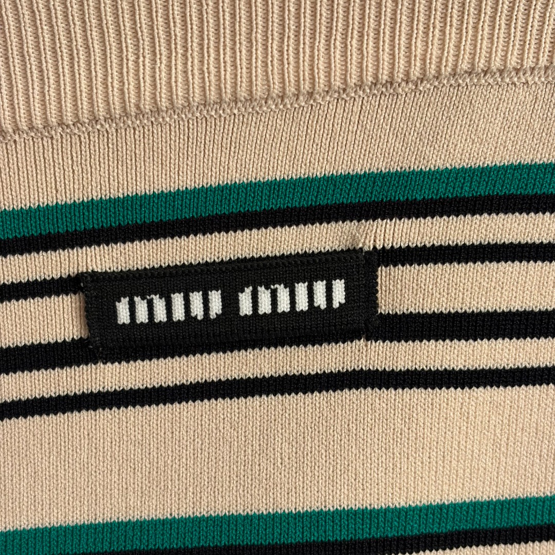这款衣服是AAAAA 1:1 质量 (非常棒). 使用了和原版一模一样的材料. 商标部分也保持了和缪缪/Miu Miu一样. 图片拍摄是实物衣服拍摄, 您所收到的实物保证和我们图片一模一样.
