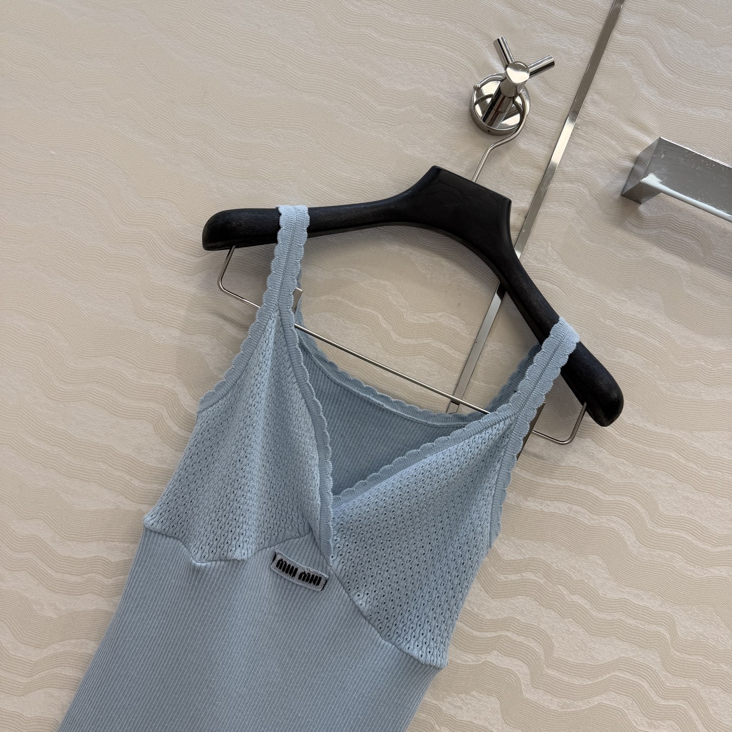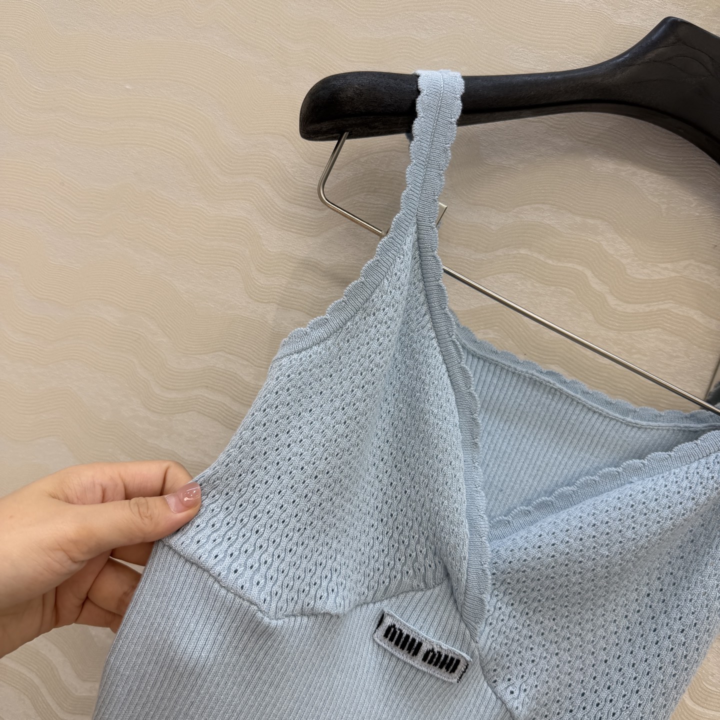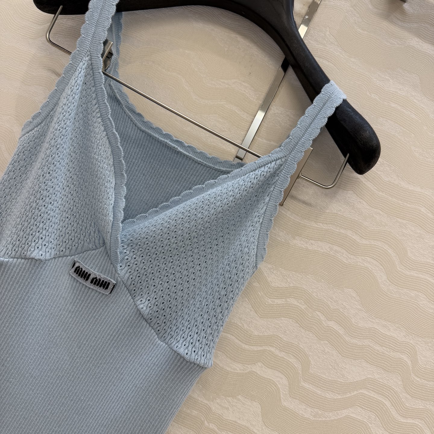 这款衣服是AAAAA 1:1 质量 (非常棒). 使用了和原版一模一样的材料. 商标部分也保持了和缪缪/Miu Miu一样. 图片拍摄是实物衣服拍摄, 您所收到的实物保证和我们图片一模一样.