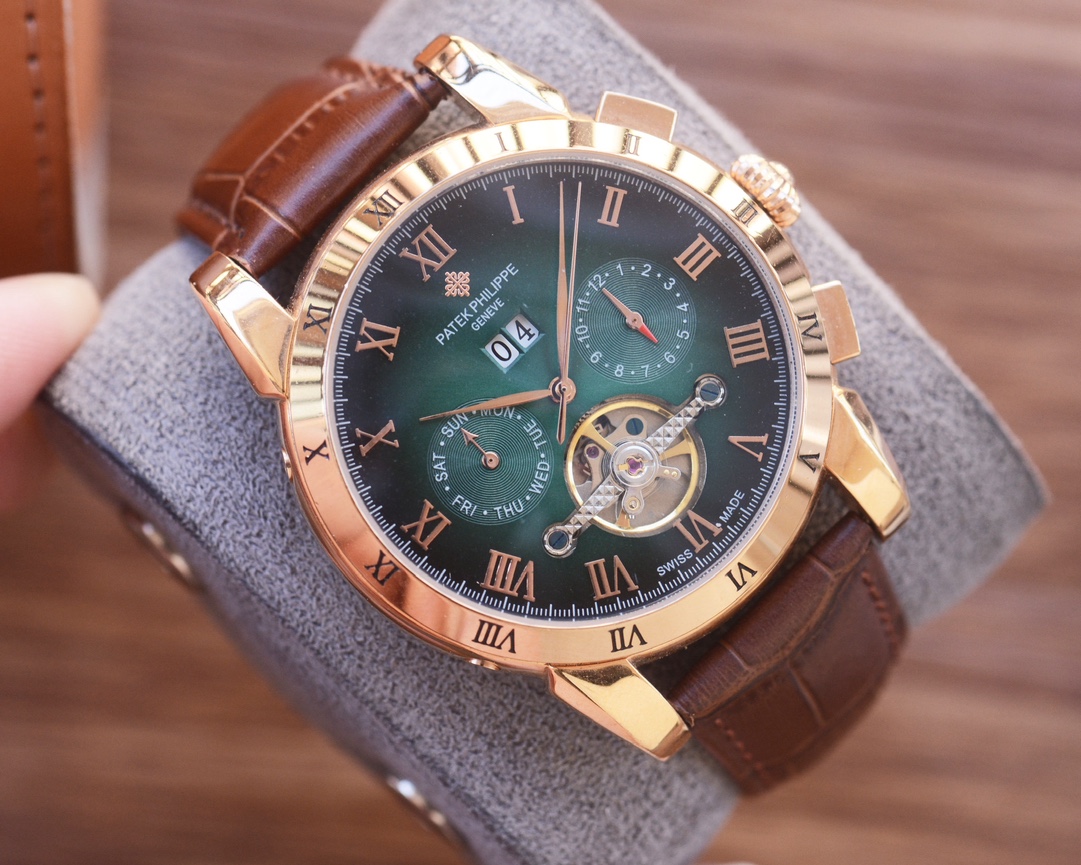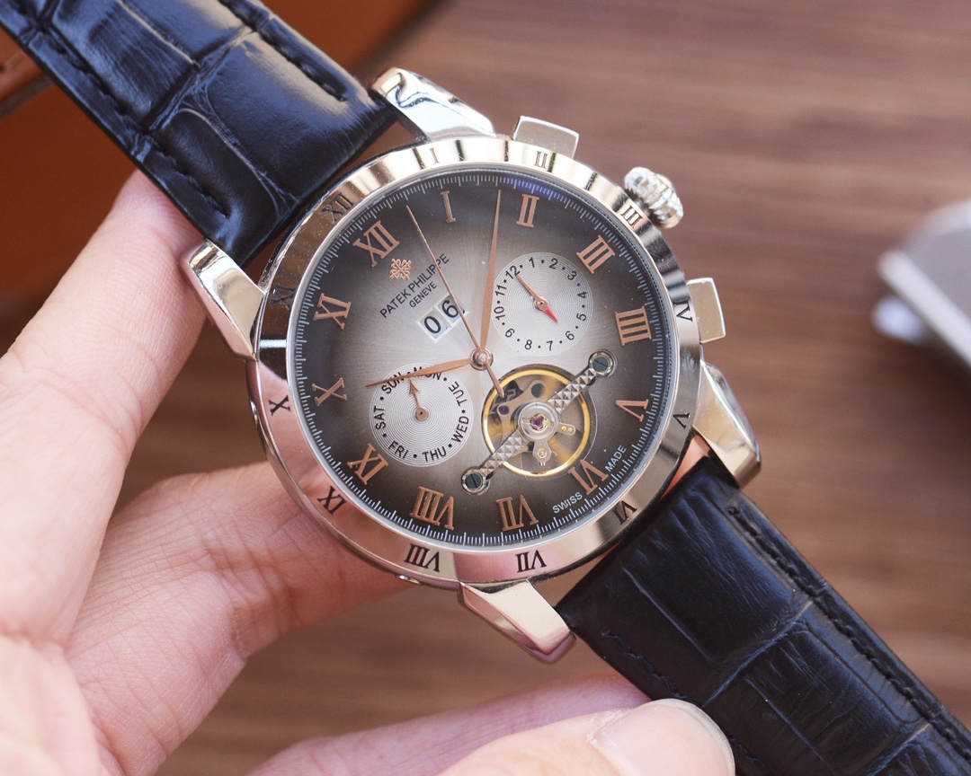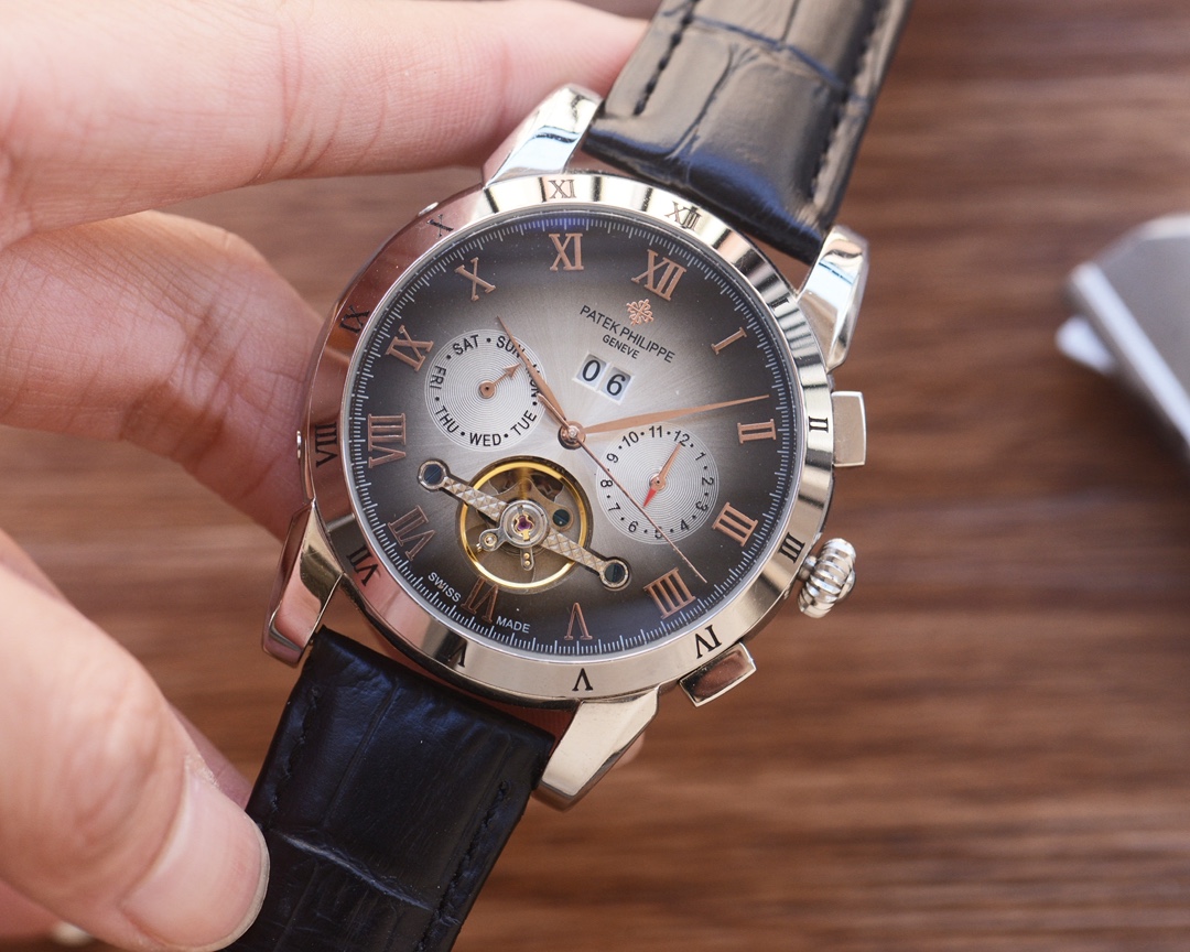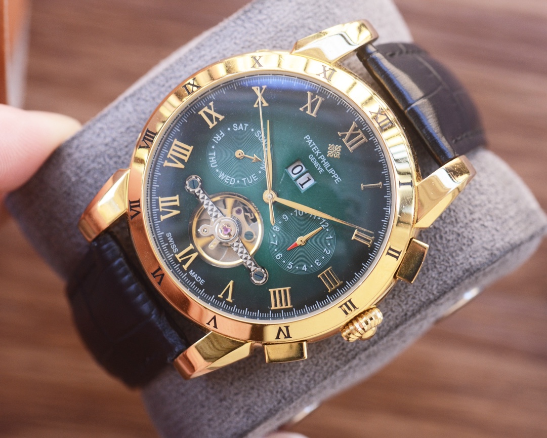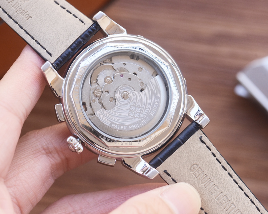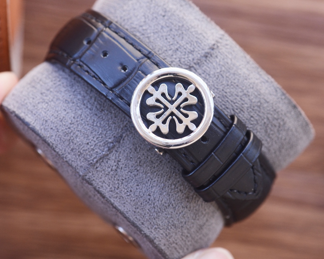 这款手表是AAAAA 1:1 质量 (非常棒). 使用了和原版一模一样的材料. 商标部分也保持了和百达翡丽/Patek Philippe一样. 图片拍摄是实物手表拍摄, 您所收到的实物保证和我们图片一模一样.
