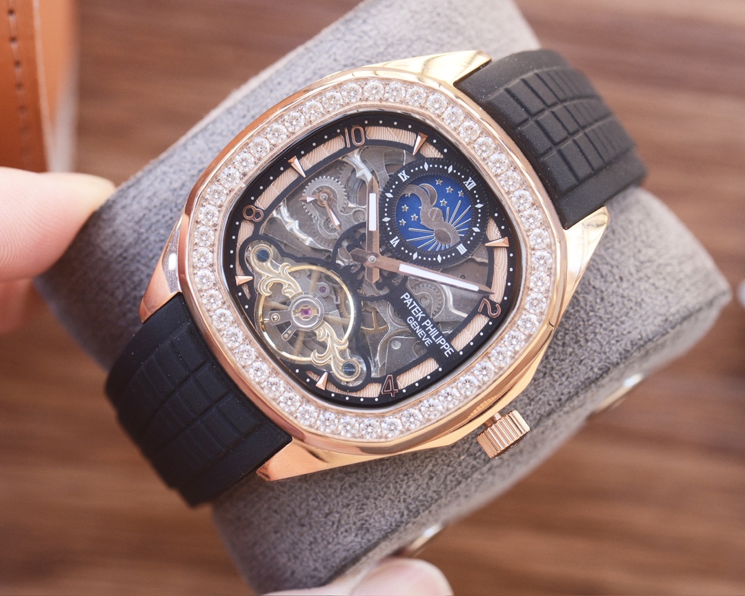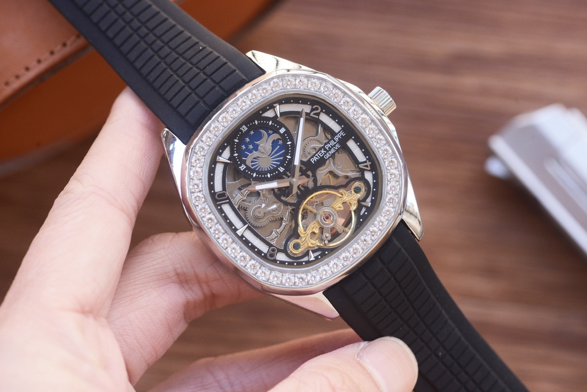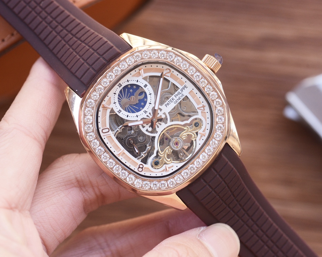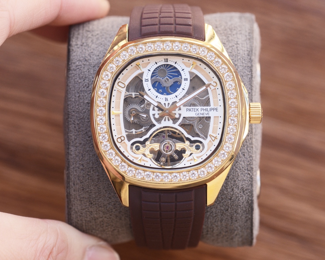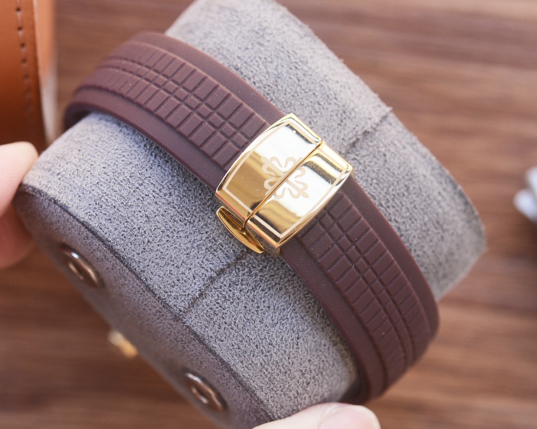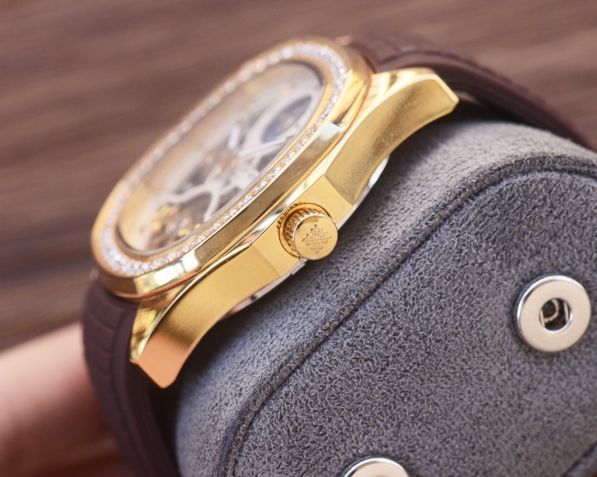 这款手表是AAAAA 1:1 质量 (非常棒). 使用了和原版一模一样的材料. 商标部分也保持了和百达翡丽/Patek Philippe一样. 图片拍摄是实物手表拍摄, 您所收到的实物保证和我们图片一模一样.