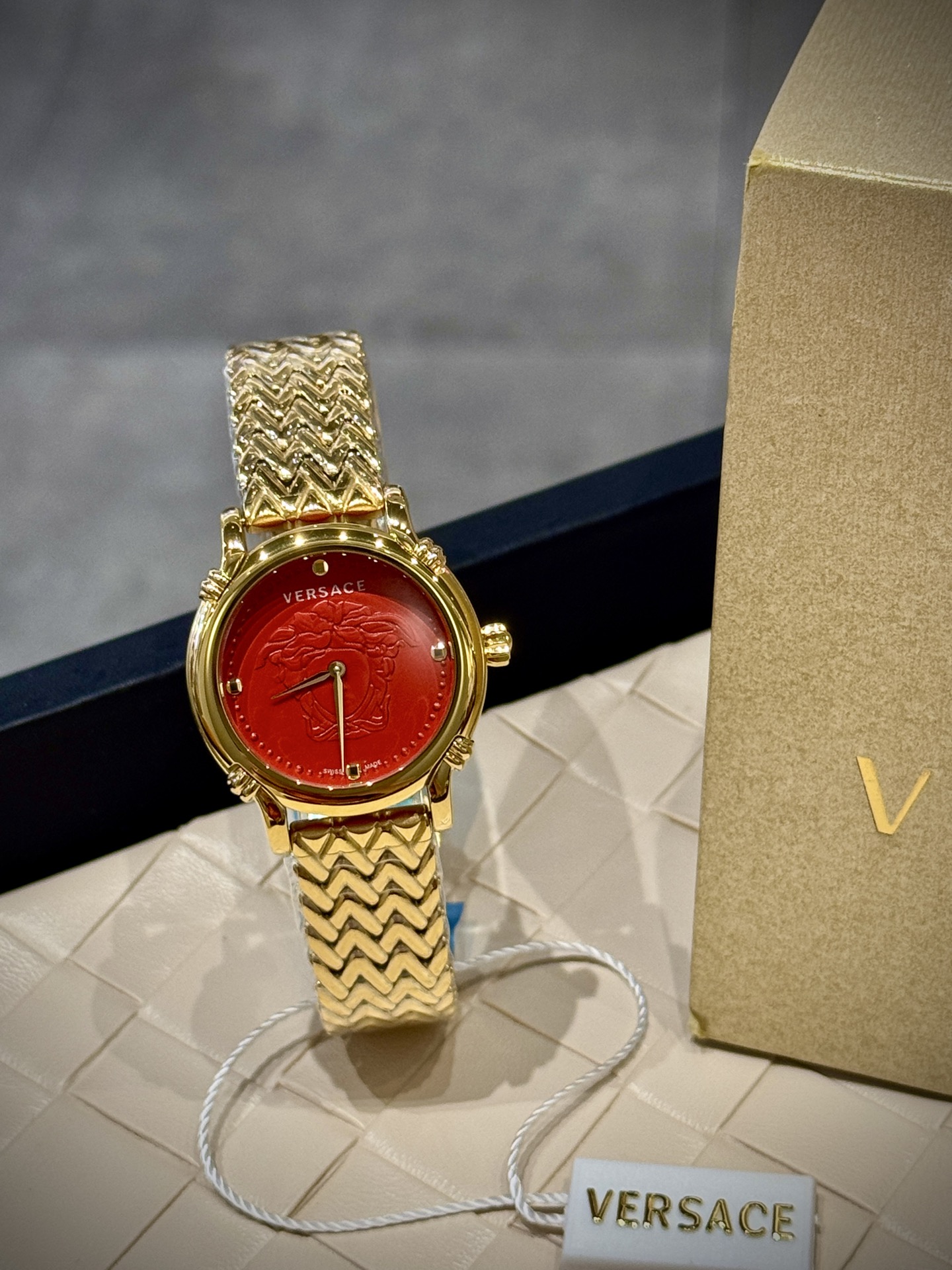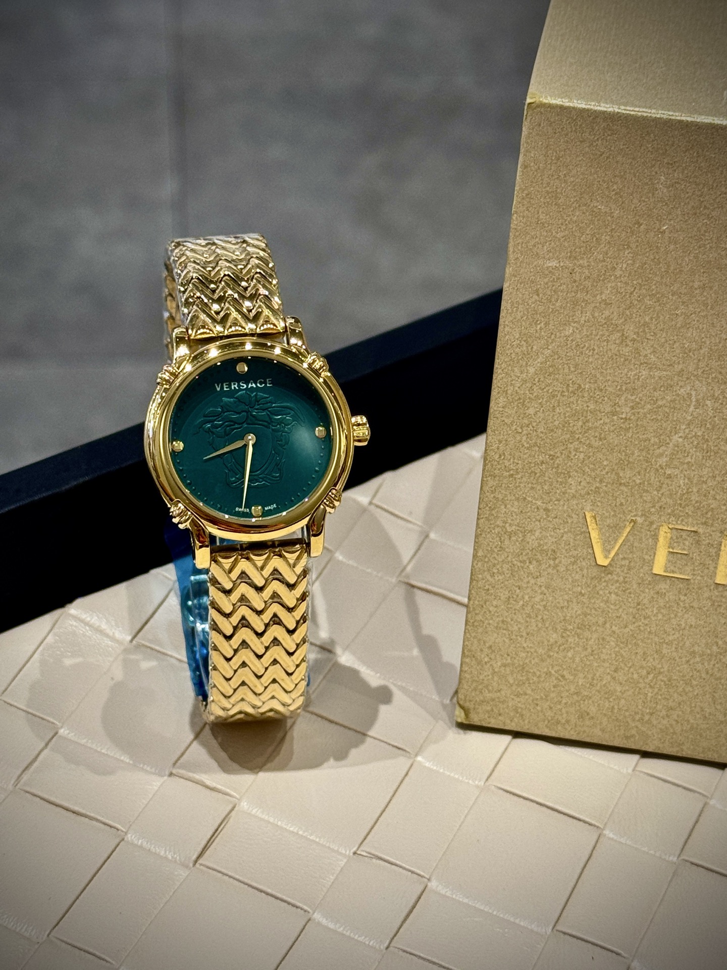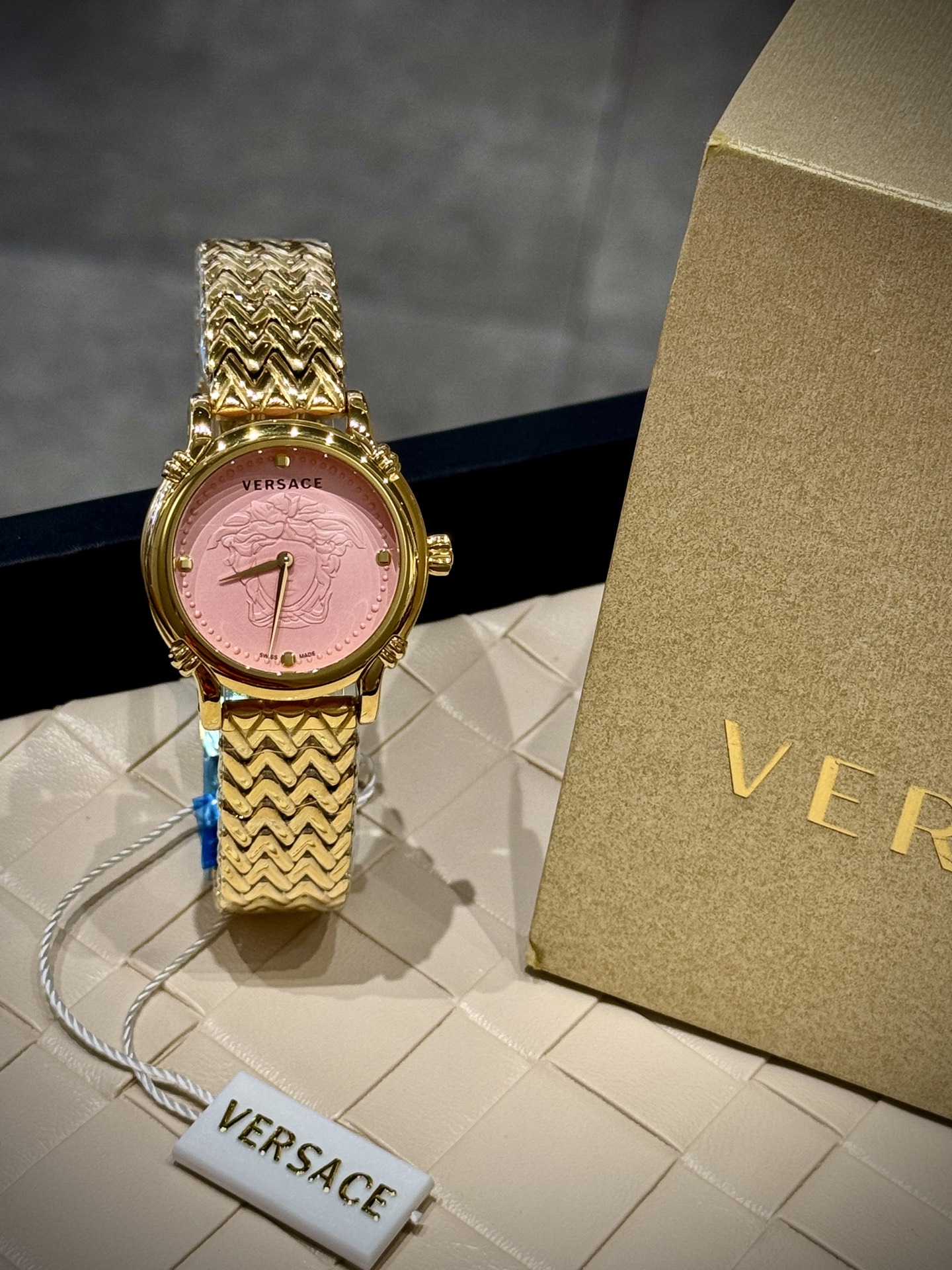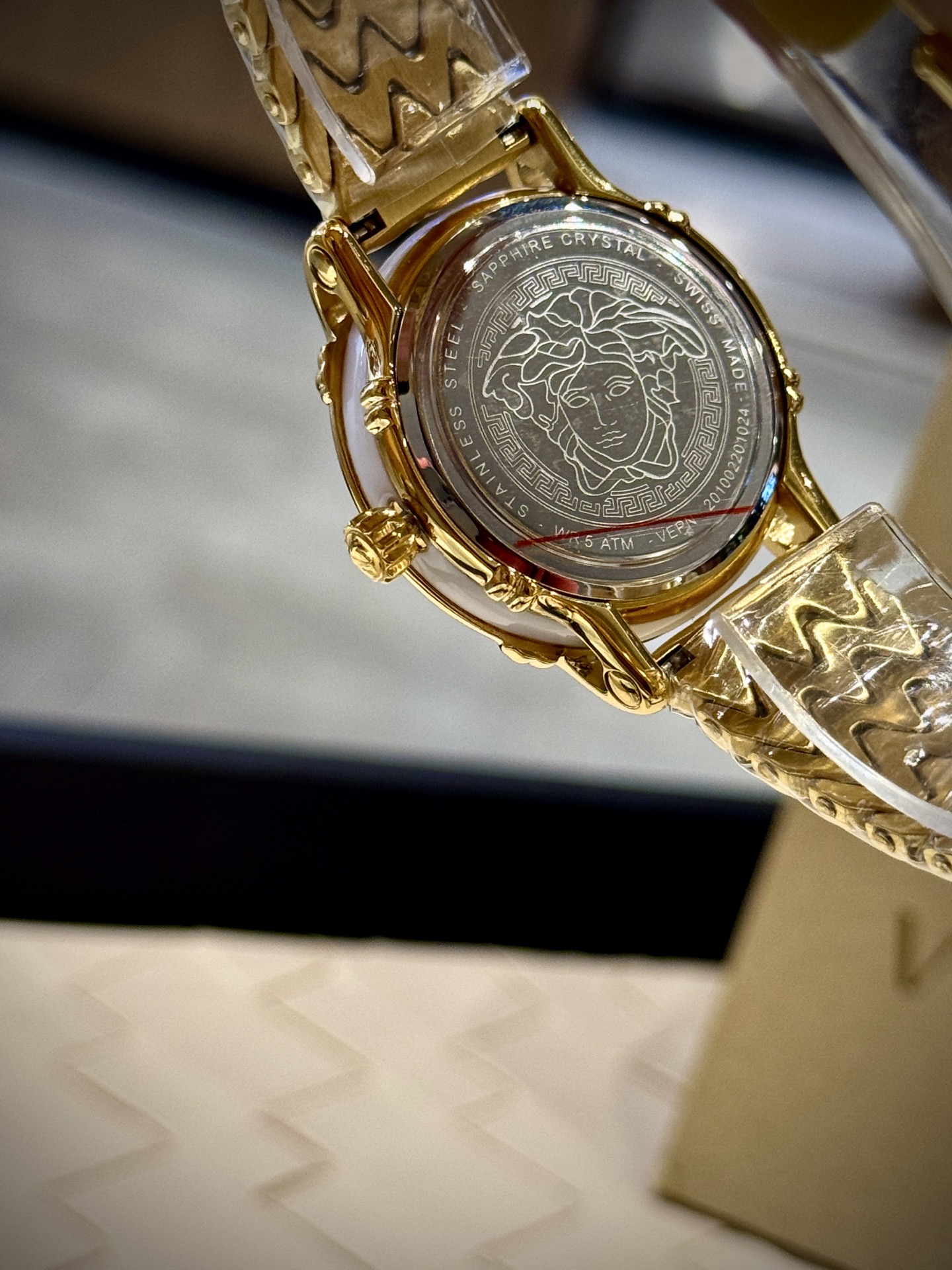 这款手表是AAAAA 1:1 质量 (非常棒). 使用了和原版一模一样的材料. 商标部分也保持了和范思哲/Versace一样. 图片拍摄是实物手表拍摄, 您所收到的实物保证和我们图片一模一样.
