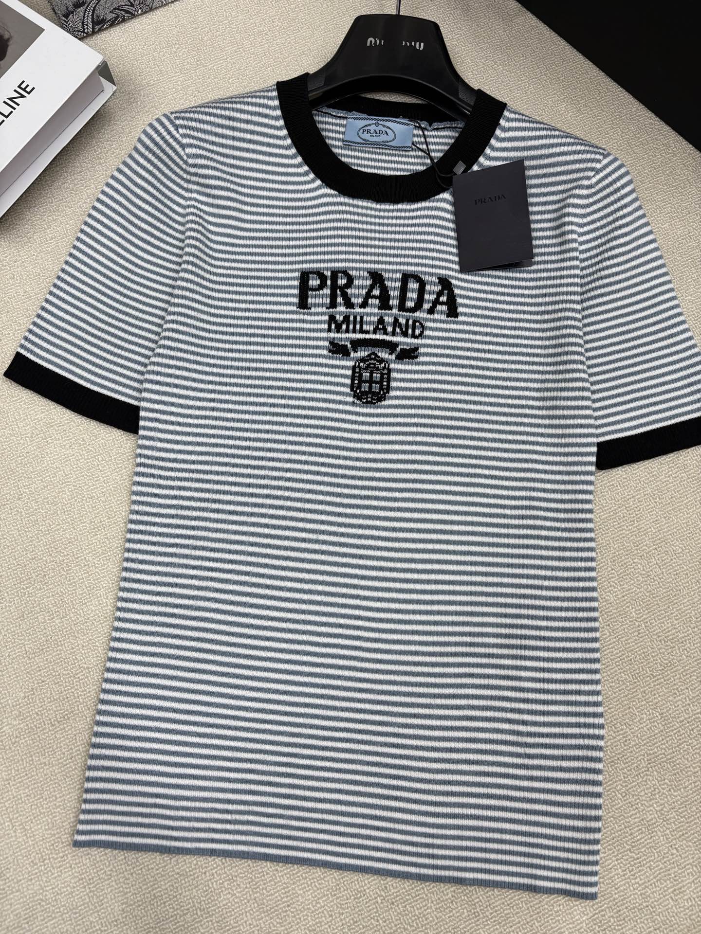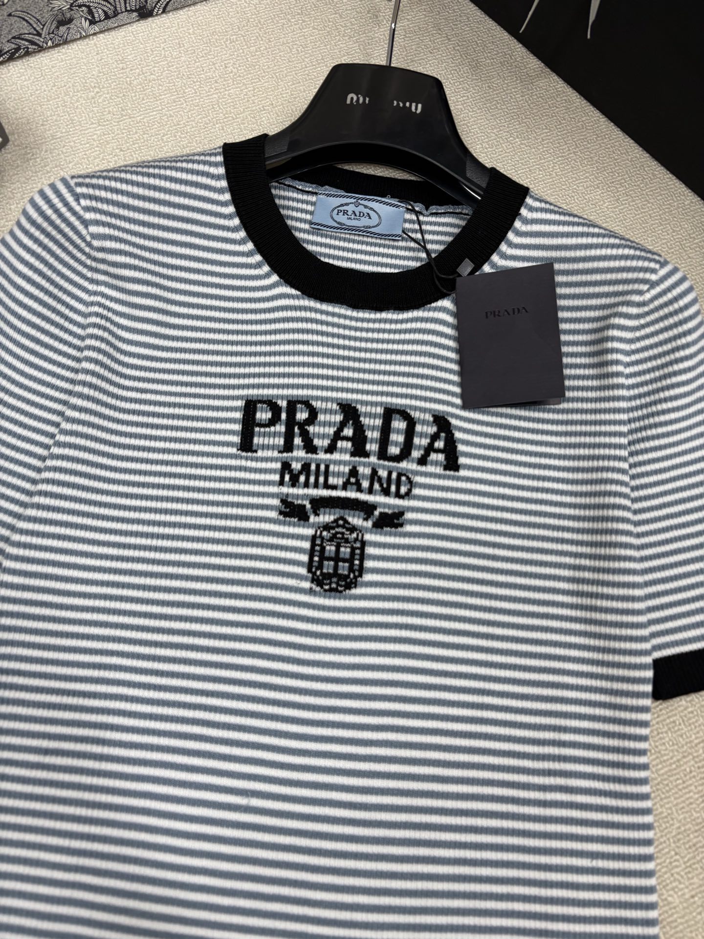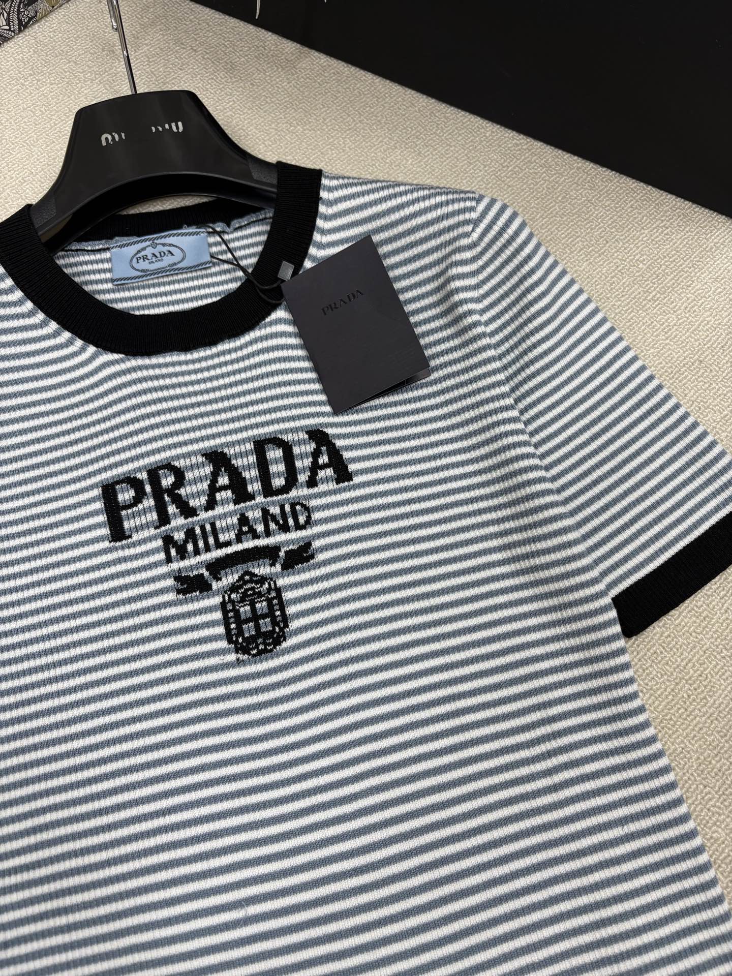 这款衣服是AAAAA 1:1 质量 (非常棒). 使用了和原版一模一样的材料. 商标部分也保持了和普拉达/Prada一样. 图片拍摄是实物衣服拍摄, 您所收到的实物保证和我们图片一模一样.