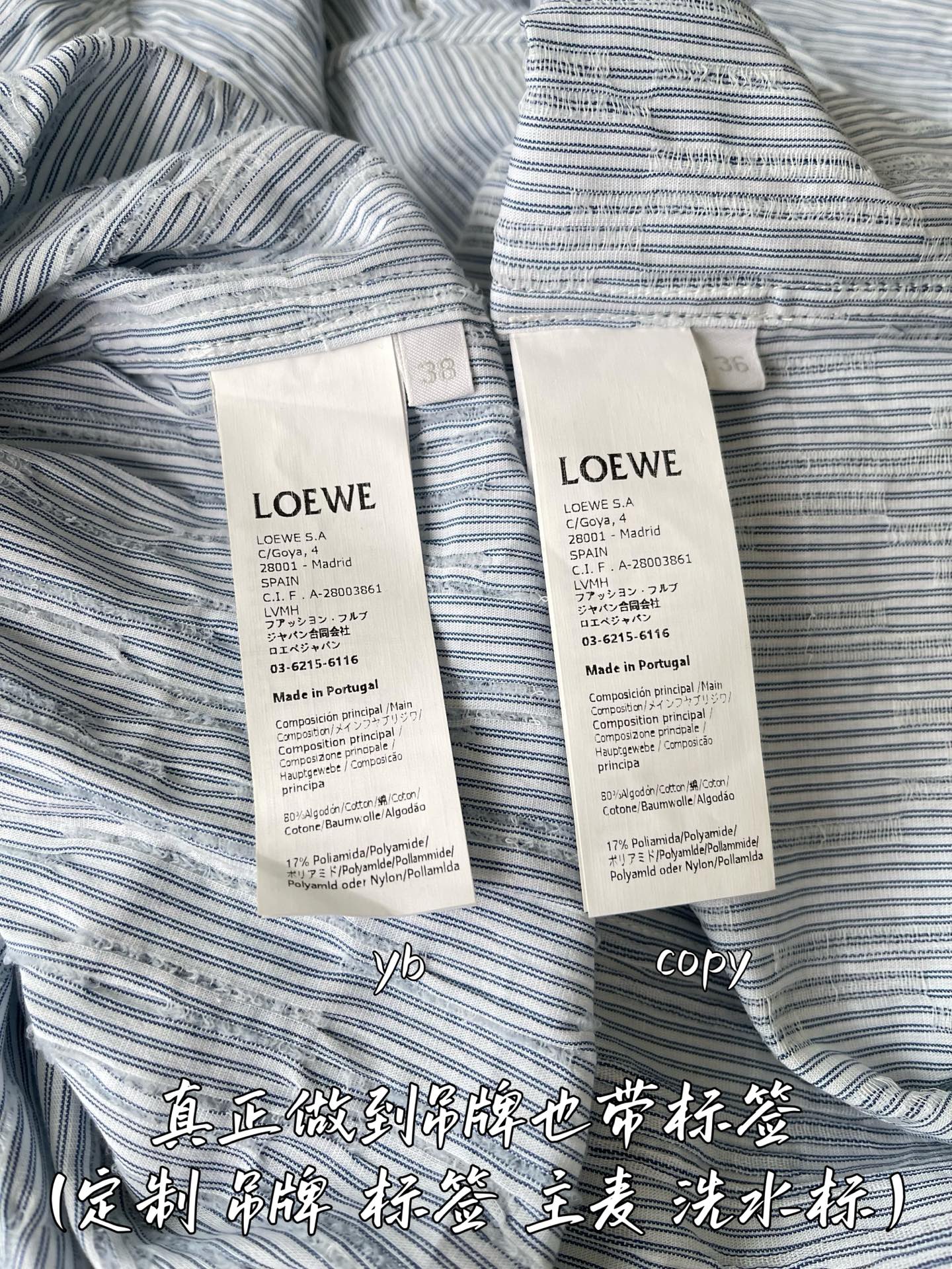 这款衣服是AAAAA 1:1 质量 (非常棒). 使用了和原版一模一样的材料. 商标部分也保持了和罗意威/Loewe一样. 图片拍摄是实物衣服拍摄, 您所收到的实物保证和我们图片一模一样.