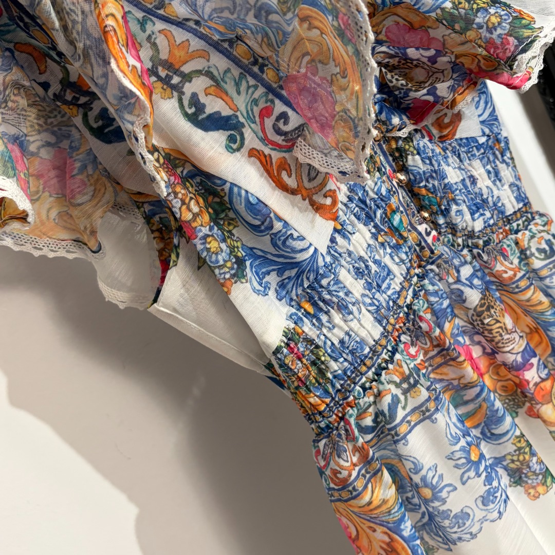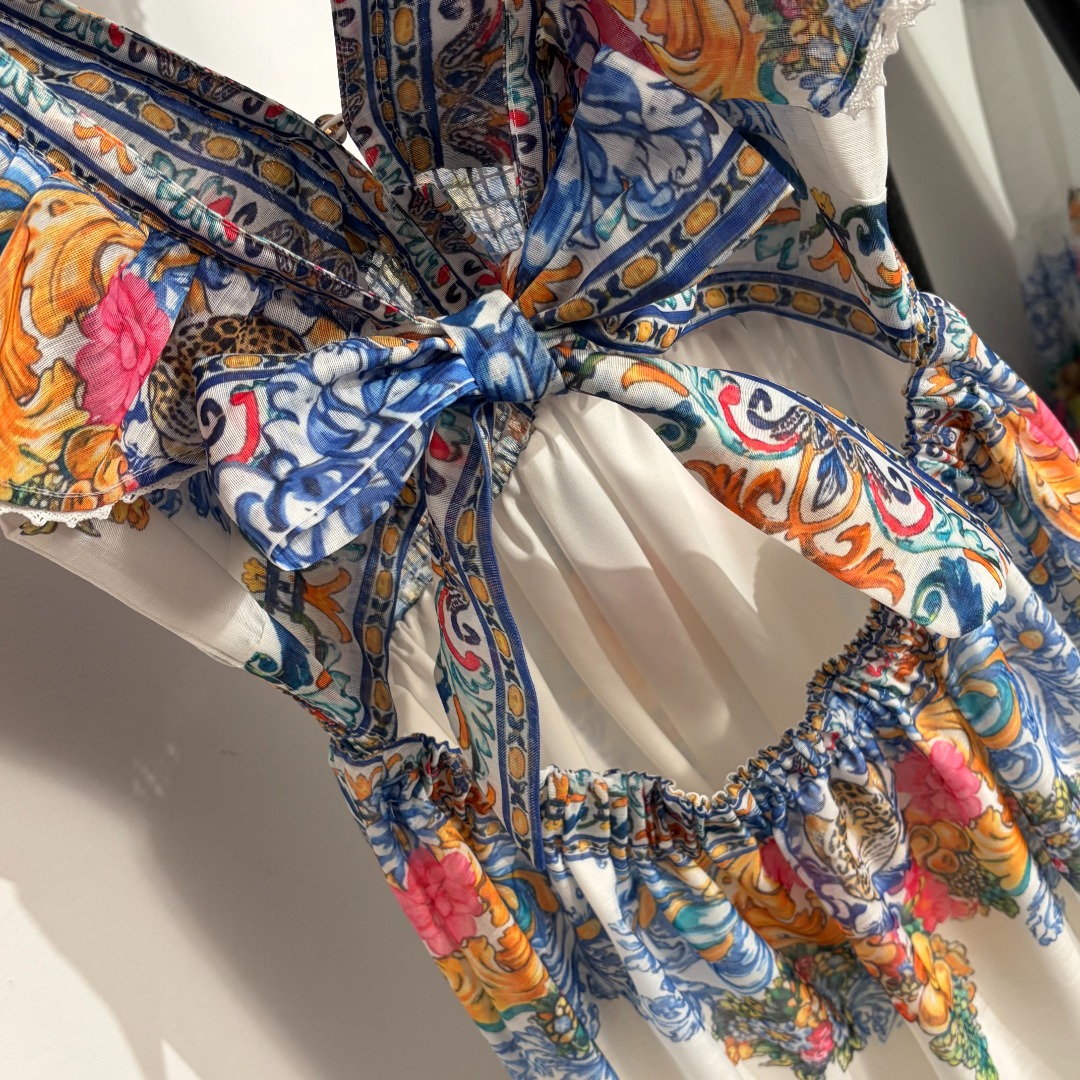 这款衣服是AAAAA 1:1 质量 (非常棒). 使用了和原版一模一样的材料. 商标部分也保持了和ZIMMERMANN一样. 图片拍摄是实物衣服拍摄, 您所收到的实物保证和我们图片一模一样.