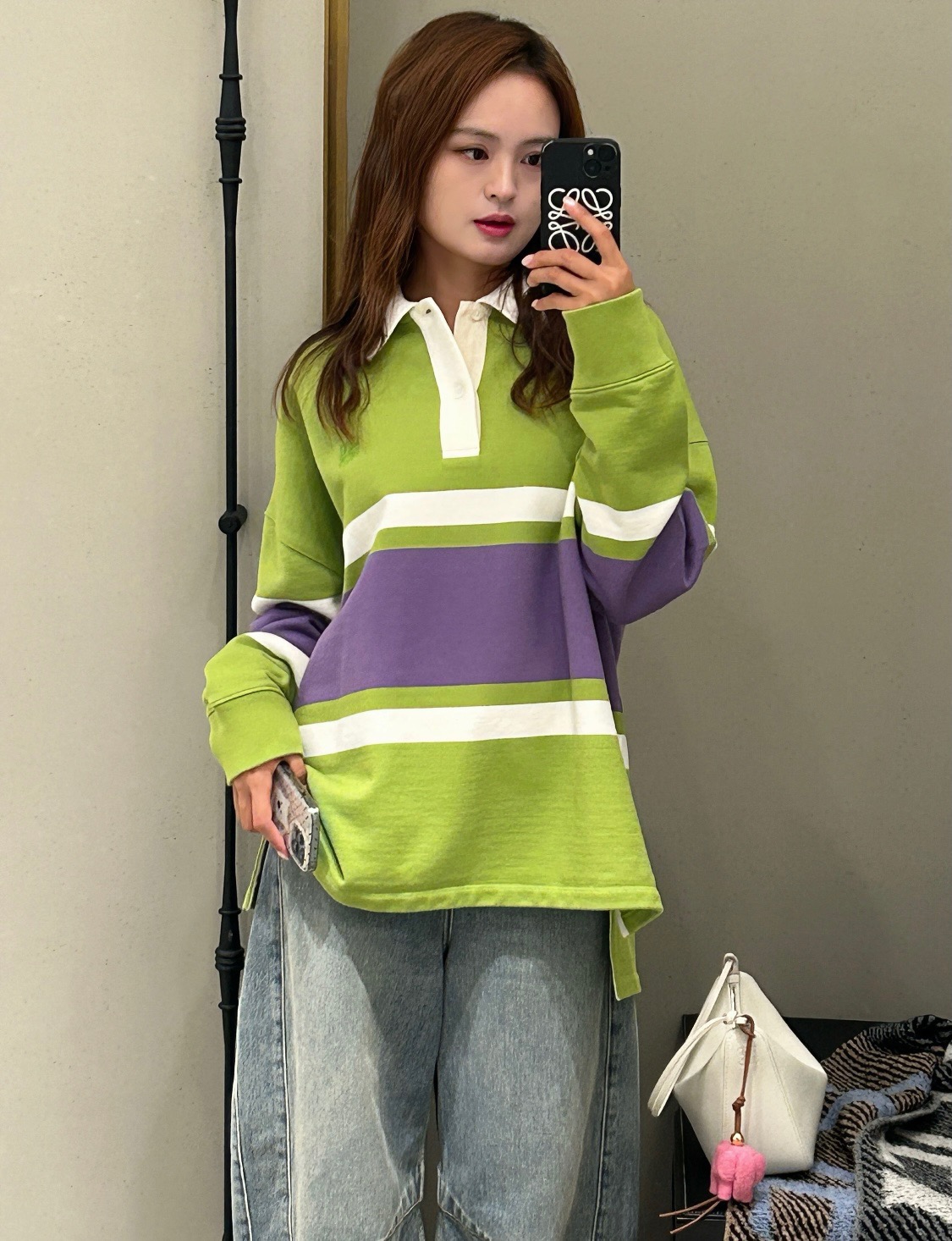 这款衣服是AAAAA 1:1 质量 (非常棒). 使用了和原版一模一样的材料. 商标部分也保持了和罗意威/Loewe一样. 图片拍摄是实物衣服拍摄, 您所收到的实物保证和我们图片一模一样.