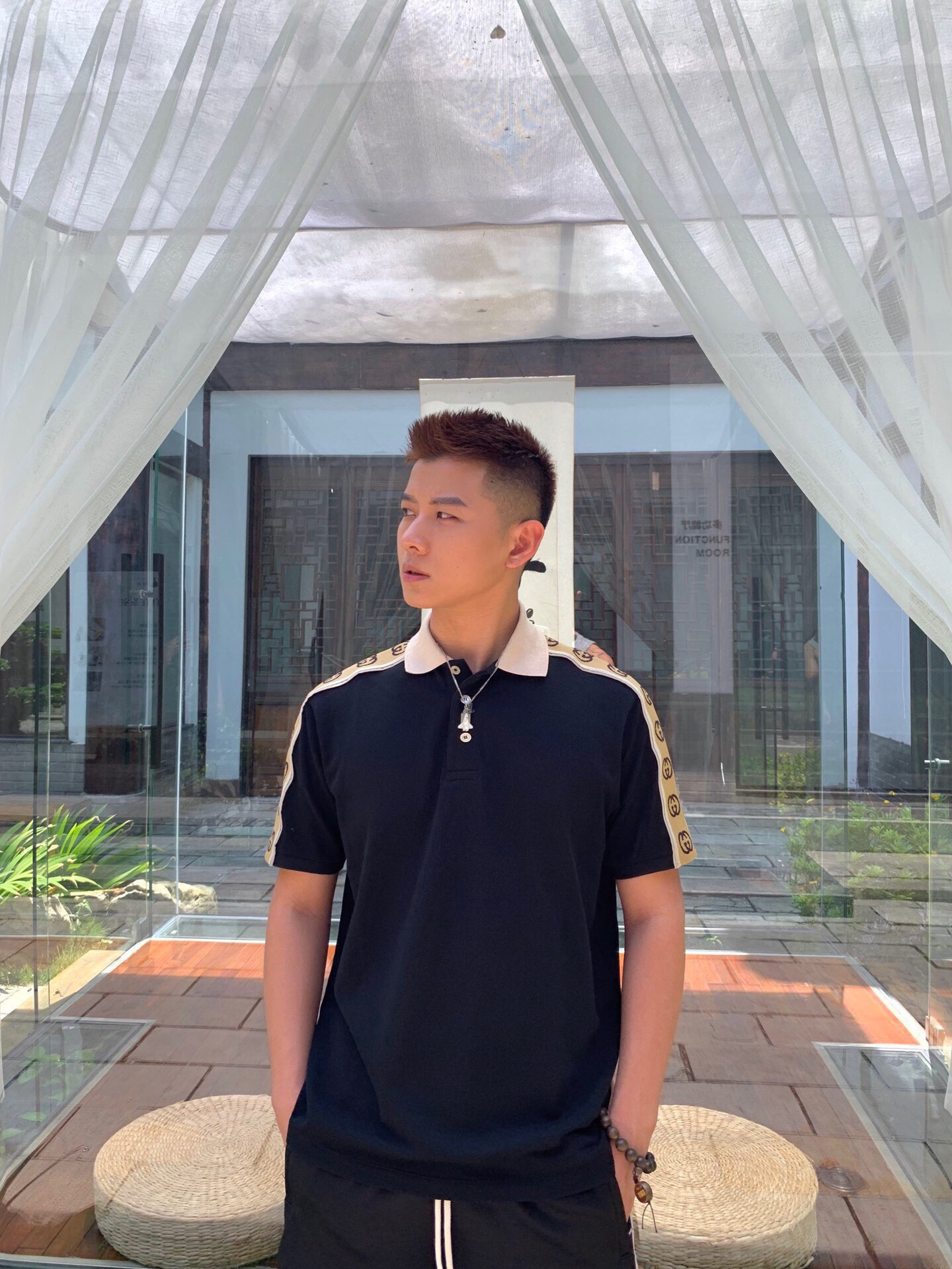 这款衣服是AAAAA 1:1 质量 (非常棒). 使用了和原版一模一样的材料. 商标部分也保持了和古奇/Gucci一样. 图片拍摄是实物衣服拍摄, 您所收到的实物保证和我们图片一模一样.