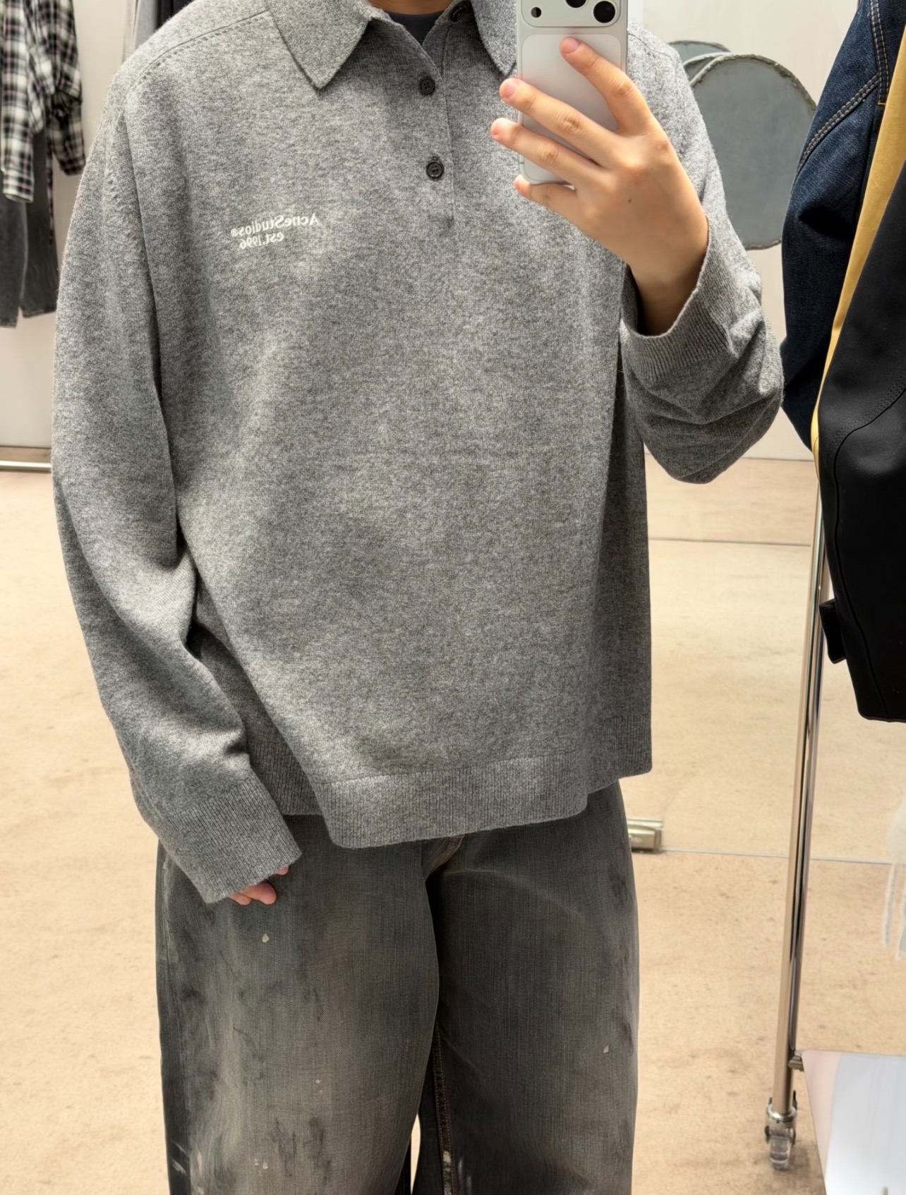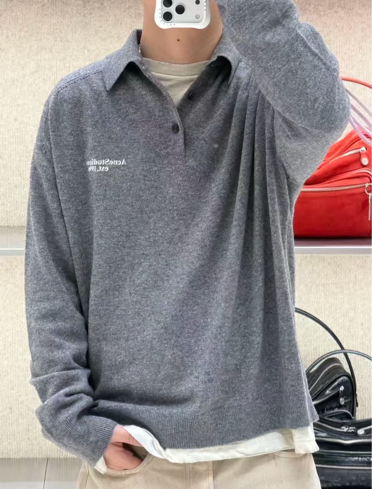 这款衣服是AAAAA 1:1 质量 (非常棒). 使用了和原版一模一样的材料. 商标部分也保持了和Acne一样. 图片拍摄是实物衣服拍摄, 您所收到的实物保证和我们图片一模一样.