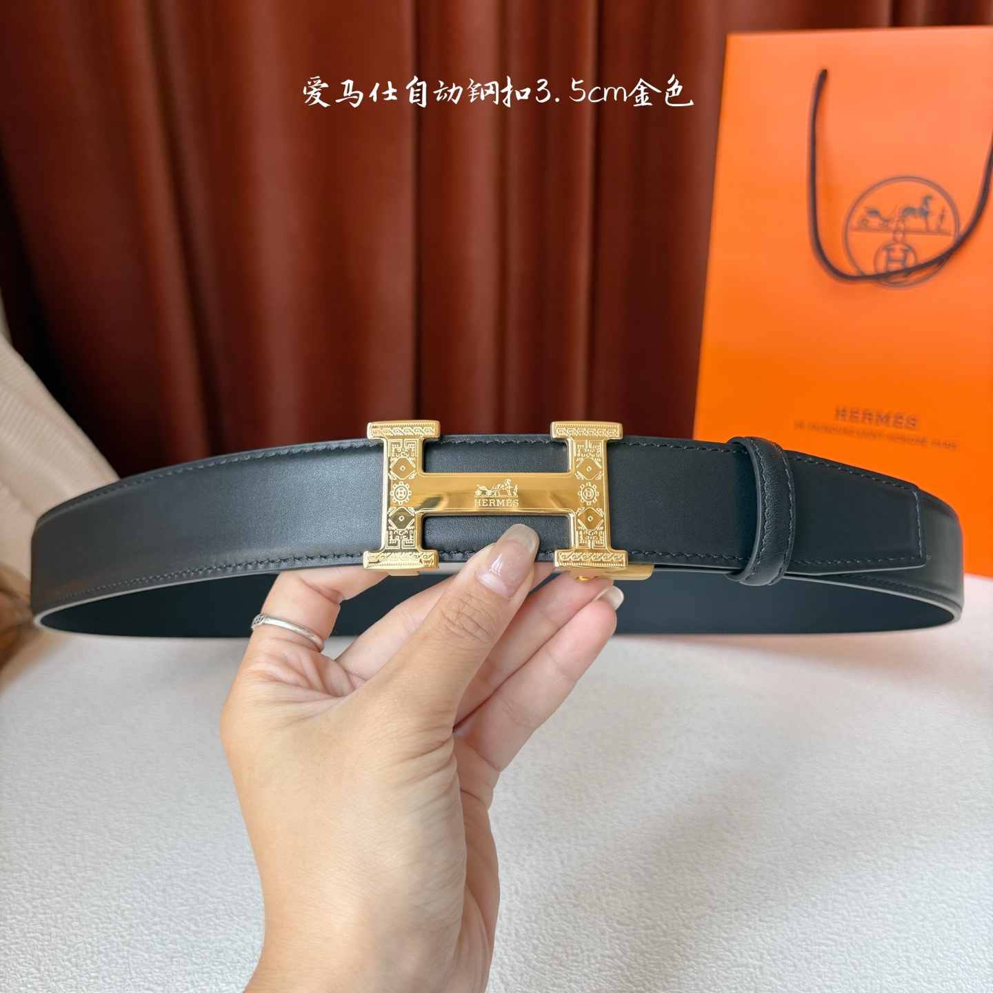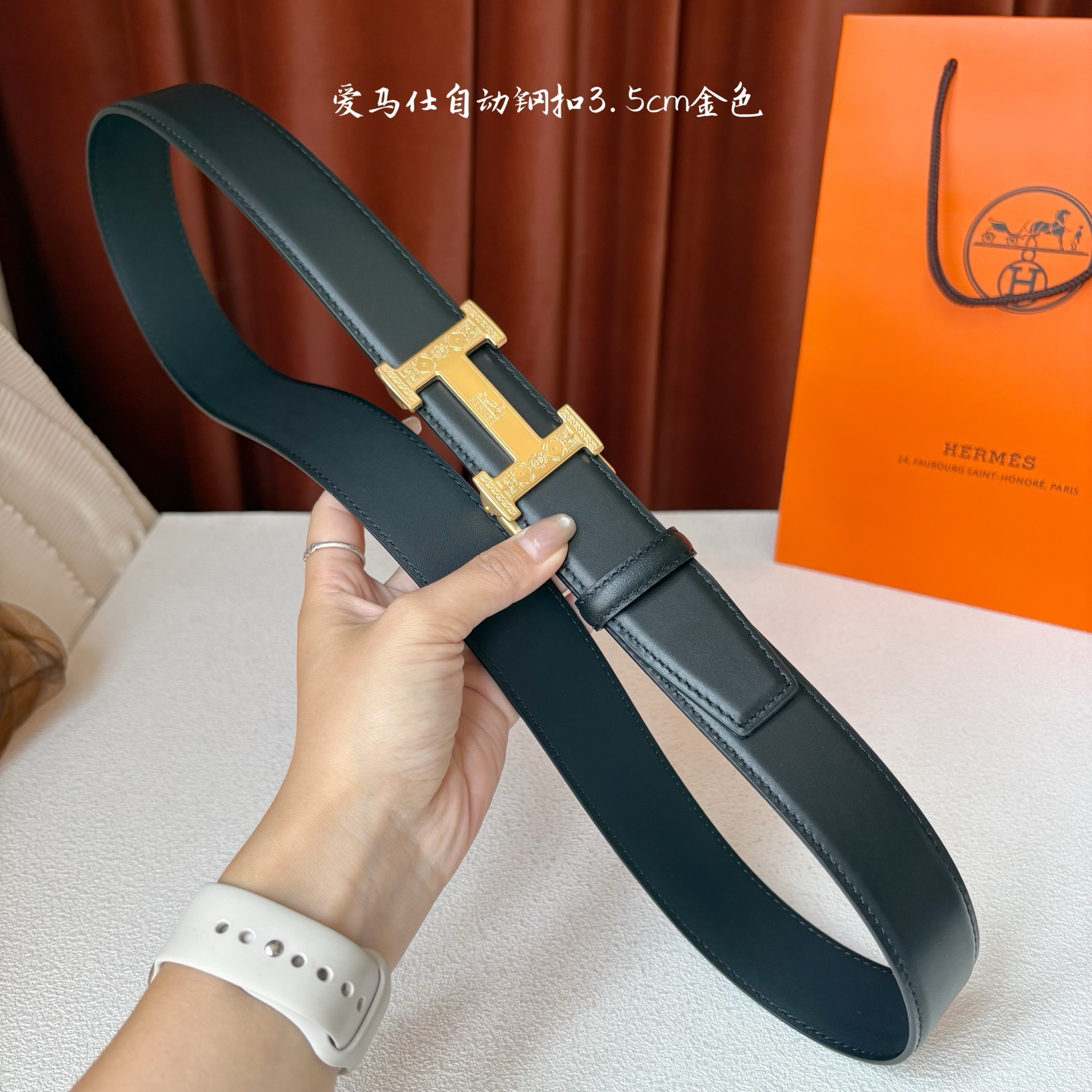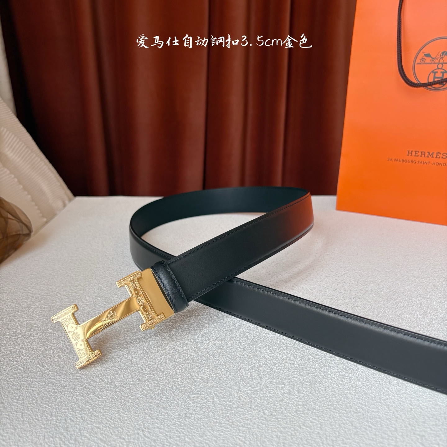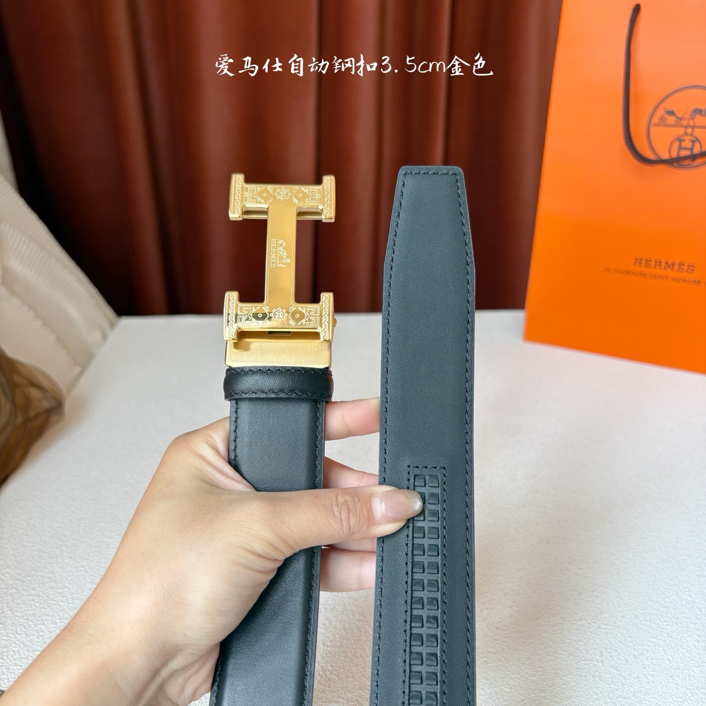 这款皮带是AAAAA 1:1 质量 (非常棒). 使用了和原版一模一样的材料. 商标部分也保持了和爱马仕/Hermes一样. 图片拍摄是实物皮带拍摄, 您所收到的实物保证和我们图片一模一样.