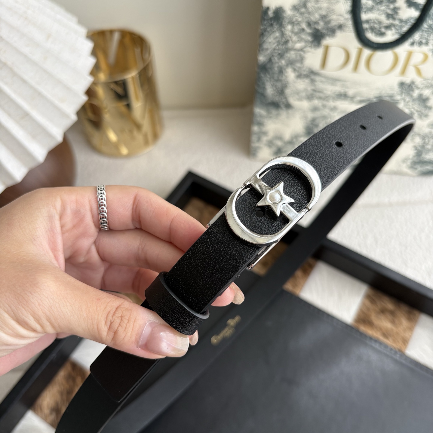 这款皮带是AAAAA 1:1 质量 (非常棒). 使用了和原版一模一样的材料. 商标部分也保持了和迪奥/Dior一样. 图片拍摄是实物皮带拍摄, 您所收到的实物保证和我们图片一模一样.
