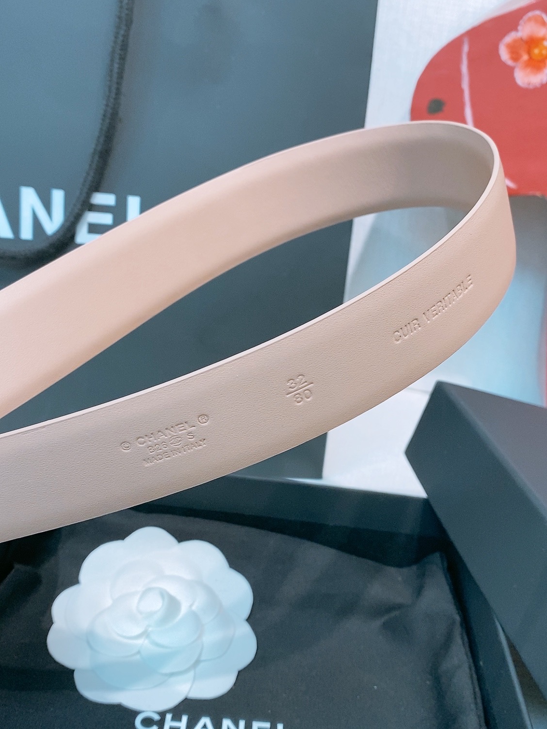 这款皮带是AAAAA 1:1 质量 (非常棒). 使用了和原版一模一样的材料. 商标部分也保持了和香奈儿/Chanel一样. 图片拍摄是实物皮带拍摄, 您所收到的实物保证和我们图片一模一样.