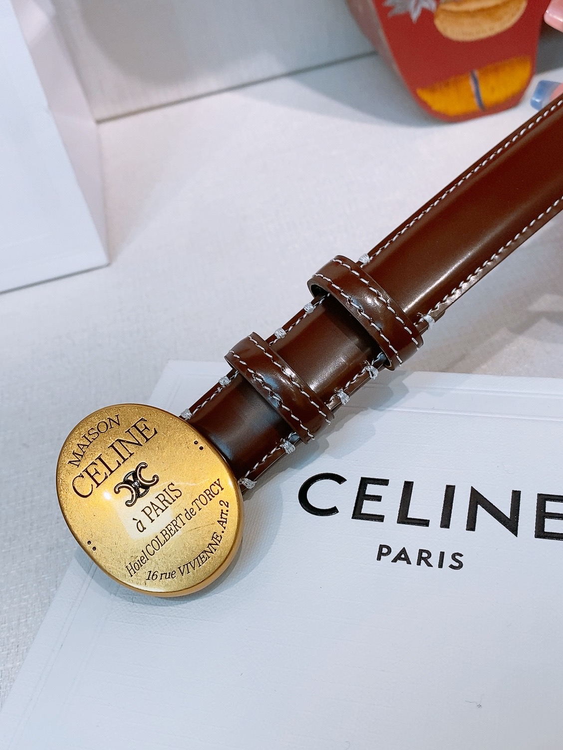 这款皮带是AAAAA 1:1 质量 (非常棒). 使用了和原版一模一样的材料. 商标部分也保持了和思琳/Celine一样. 图片拍摄是实物皮带拍摄, 您所收到的实物保证和我们图片一模一样.