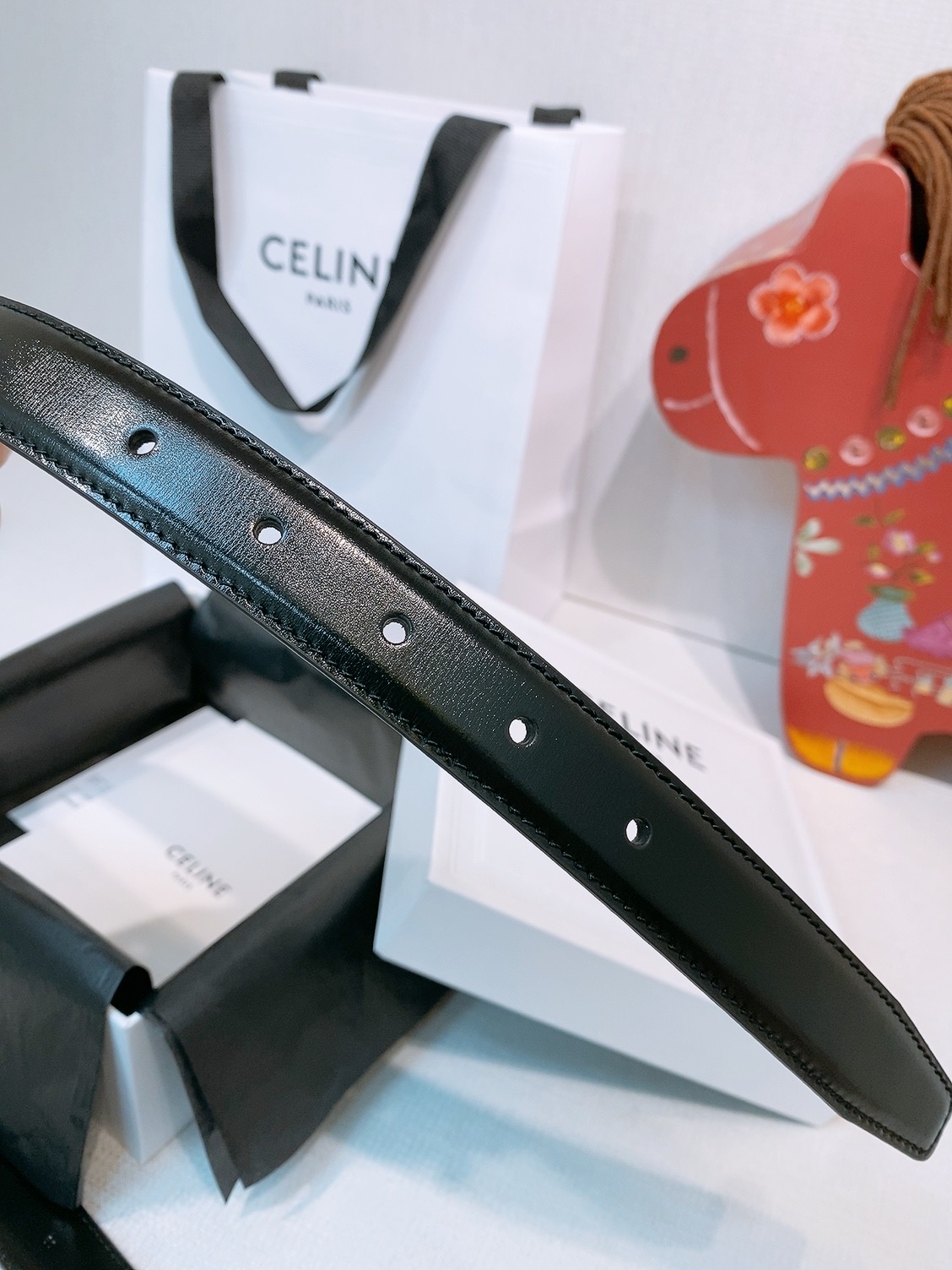 这款皮带是AAAAA 1:1 质量 (非常棒). 使用了和原版一模一样的材料. 商标部分也保持了和思琳/Celine一样. 图片拍摄是实物皮带拍摄, 您所收到的实物保证和我们图片一模一样.