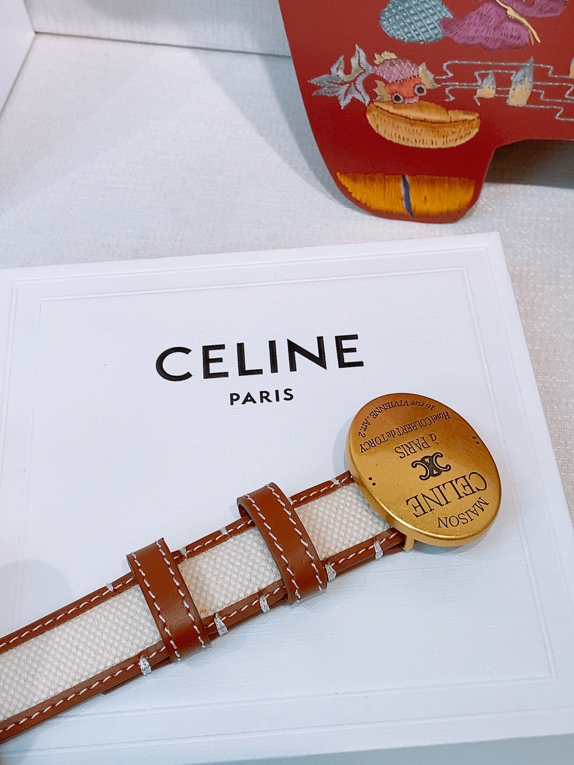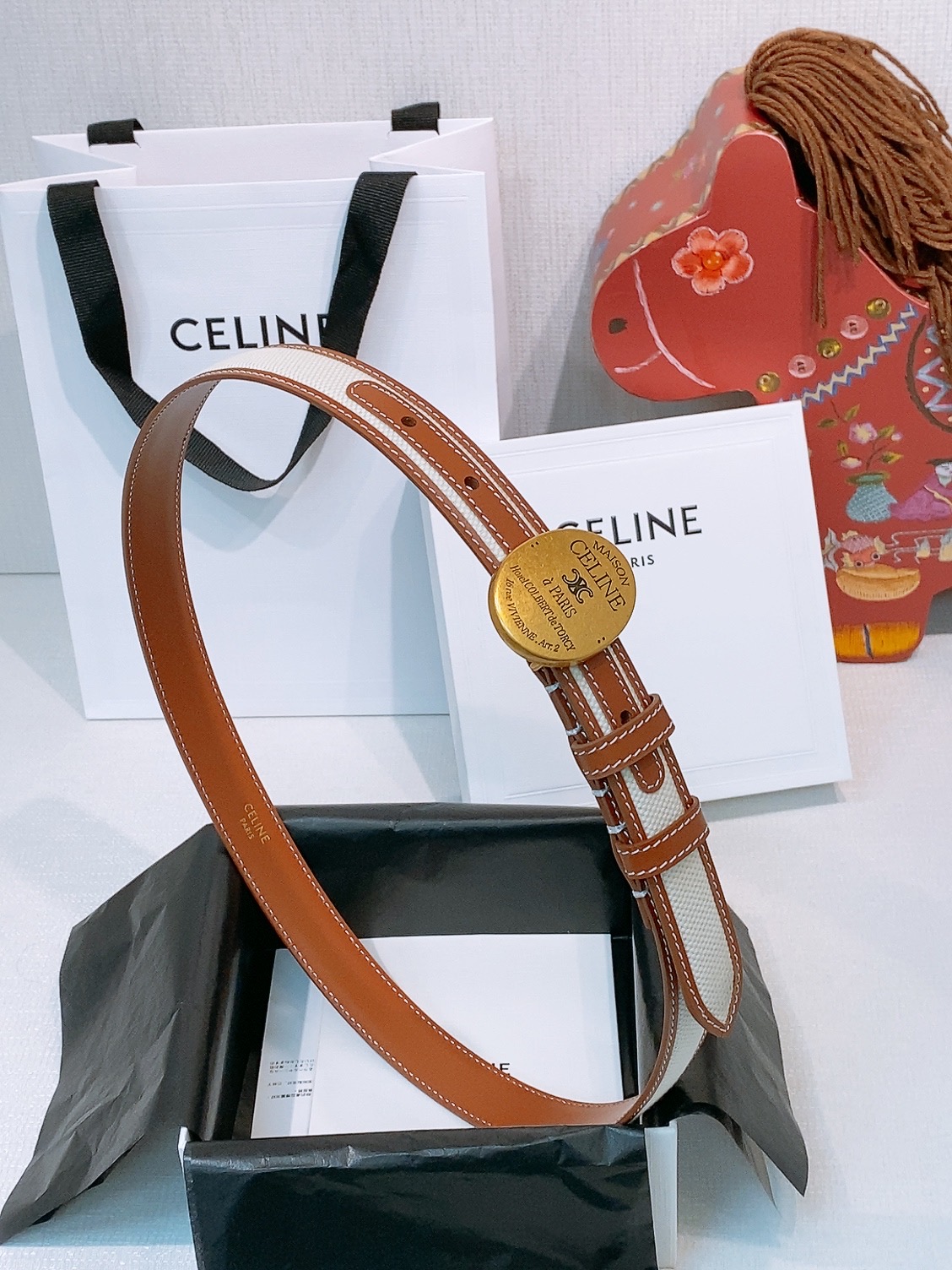 这款皮带是AAAAA 1:1 质量 (非常棒). 使用了和原版一模一样的材料. 商标部分也保持了和思琳/Celine一样. 图片拍摄是实物皮带拍摄, 您所收到的实物保证和我们图片一模一样.