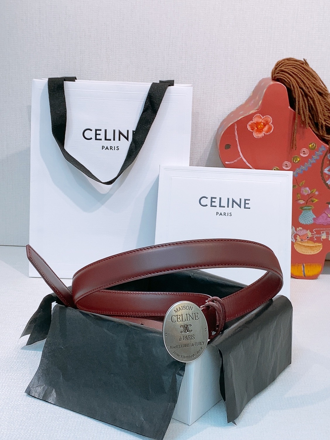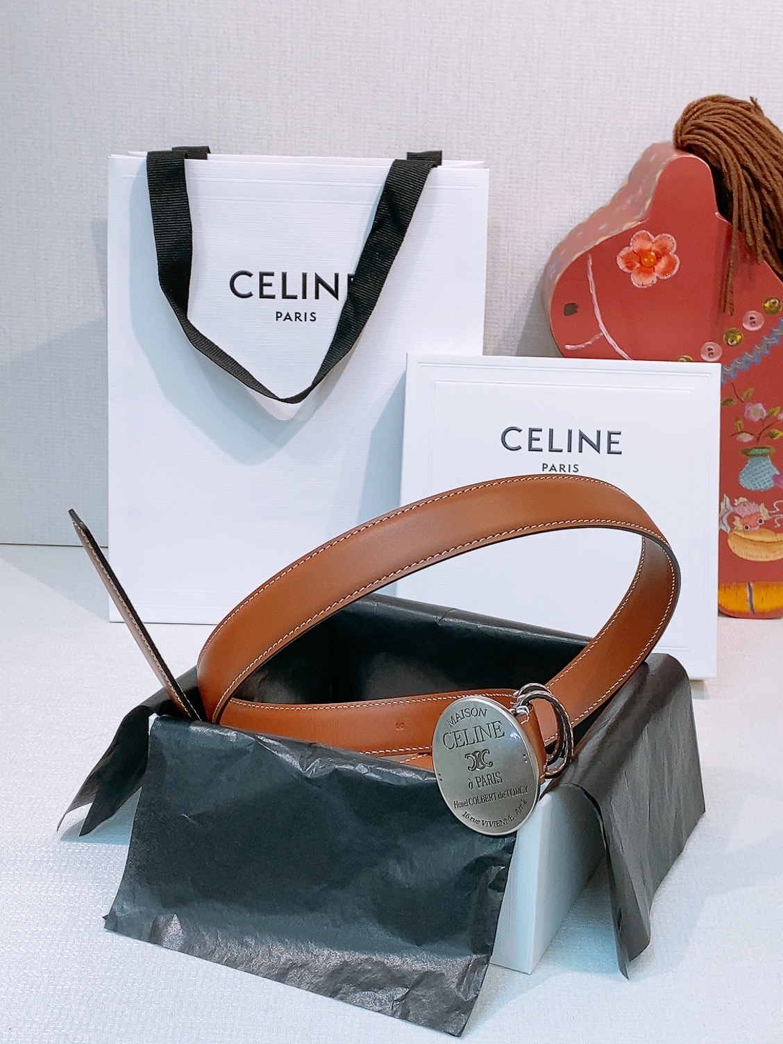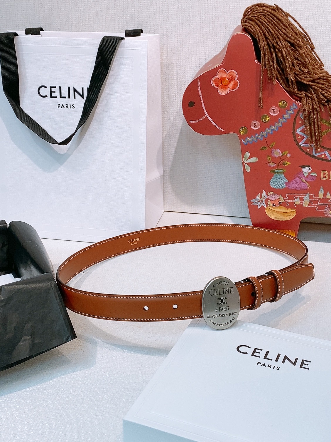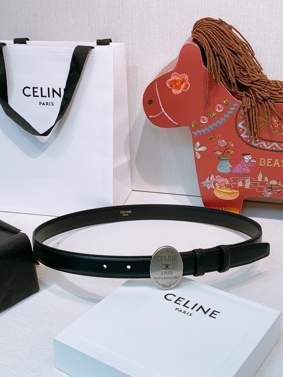 这款皮带是AAAAA 1:1 质量 (非常棒). 使用了和原版一模一样的材料. 商标部分也保持了和思琳/Celine一样. 图片拍摄是实物皮带拍摄, 您所收到的实物保证和我们图片一模一样.