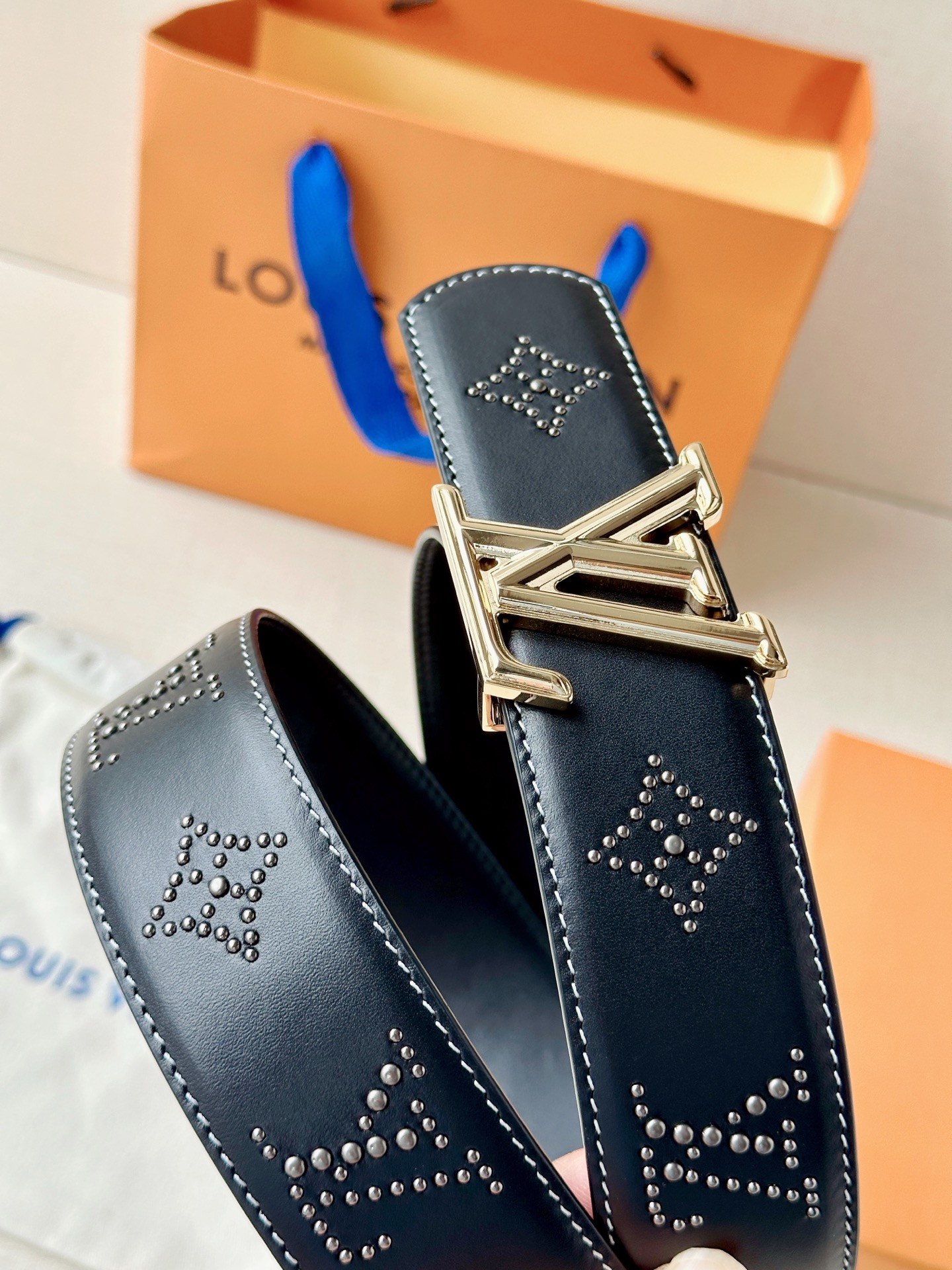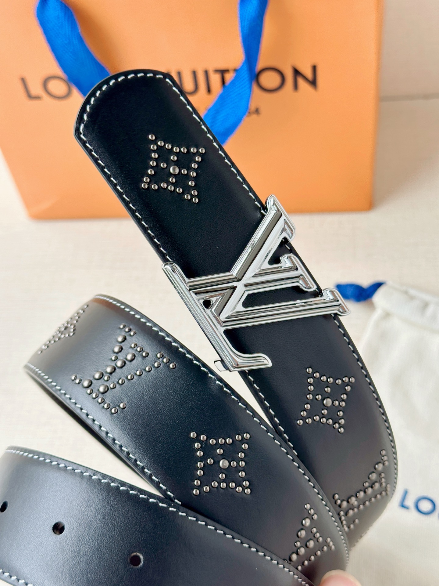 这款皮带是AAAAA 1:1 质量 (非常棒). 使用了和原版一模一样的材料. 商标部分也保持了和路易威登/Louis Vuitton一样. 图片拍摄是实物皮带拍摄, 您所收到的实物保证和我们图片一模一样.
