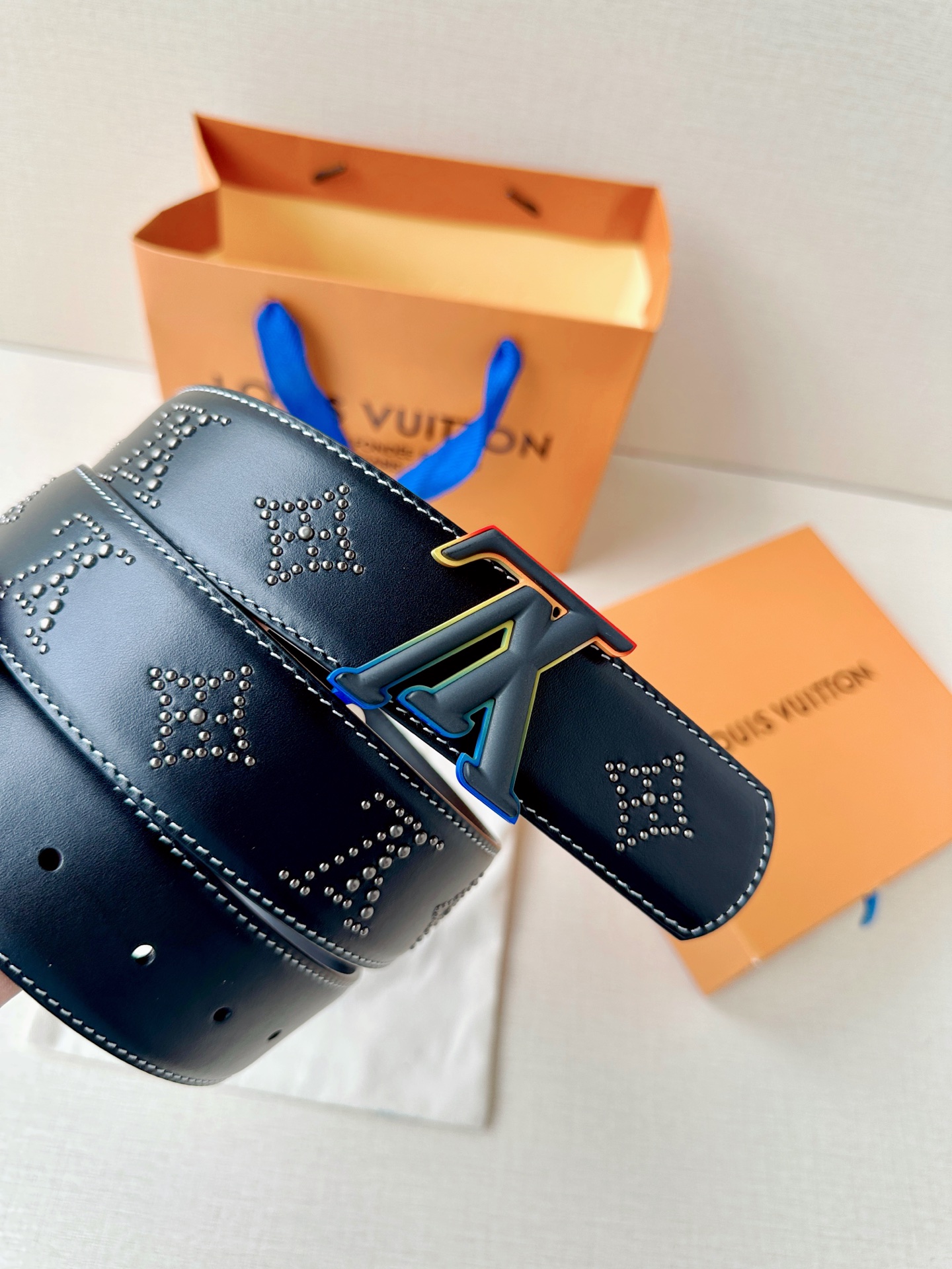 这款皮带是AAAAA 1:1 质量 (非常棒). 使用了和原版一模一样的材料. 商标部分也保持了和路易威登/Louis Vuitton一样. 图片拍摄是实物皮带拍摄, 您所收到的实物保证和我们图片一模一样.