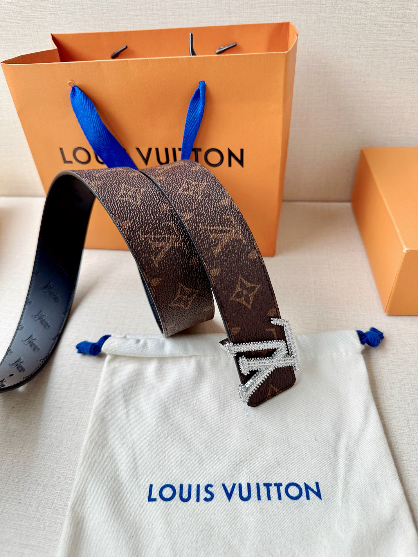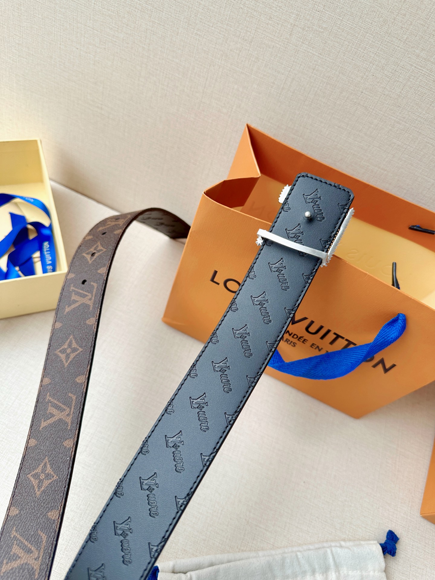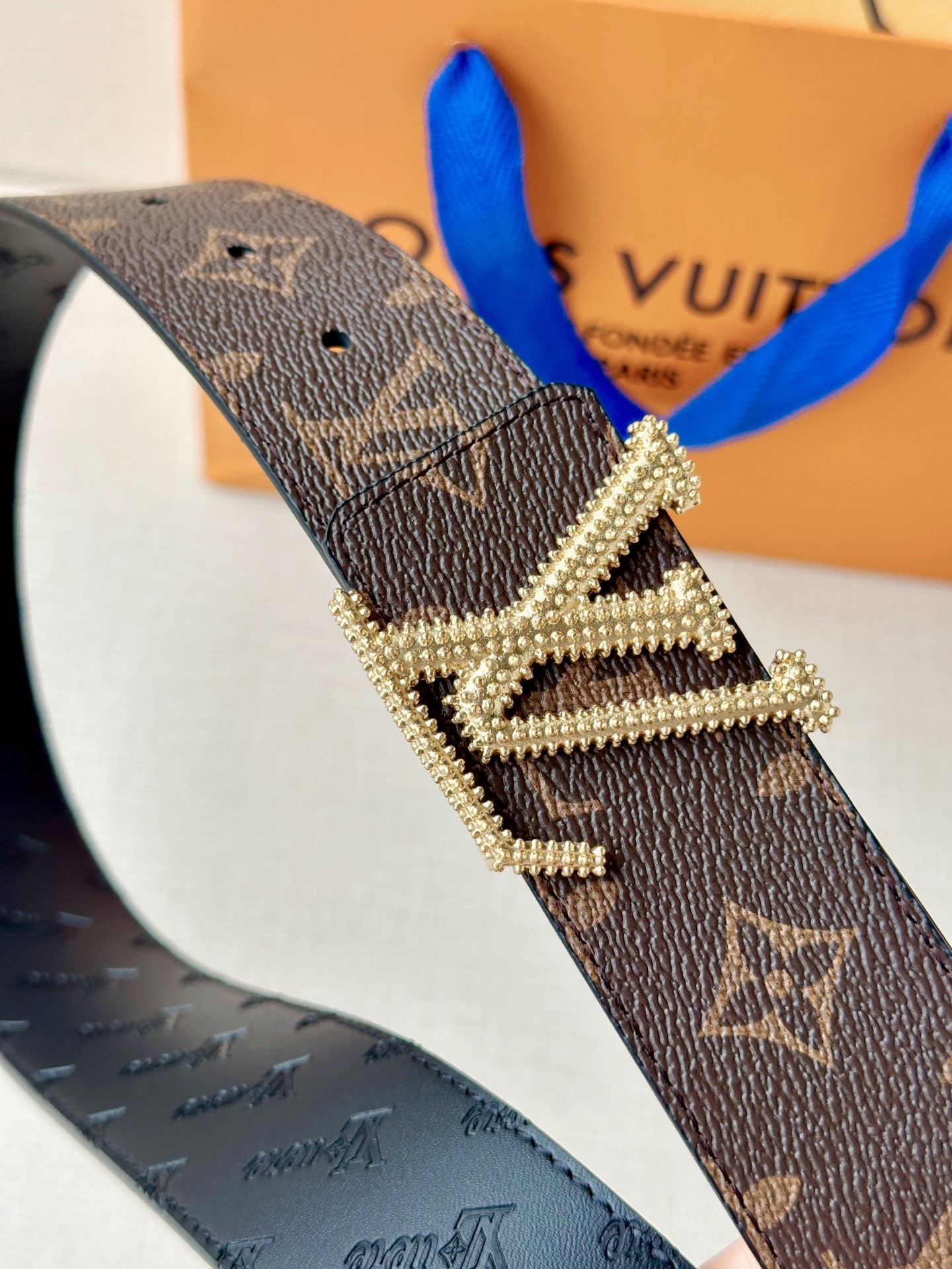 这款皮带是AAAAA 1:1 质量 (非常棒). 使用了和原版一模一样的材料. 商标部分也保持了和路易威登/Louis Vuitton一样. 图片拍摄是实物皮带拍摄, 您所收到的实物保证和我们图片一模一样.