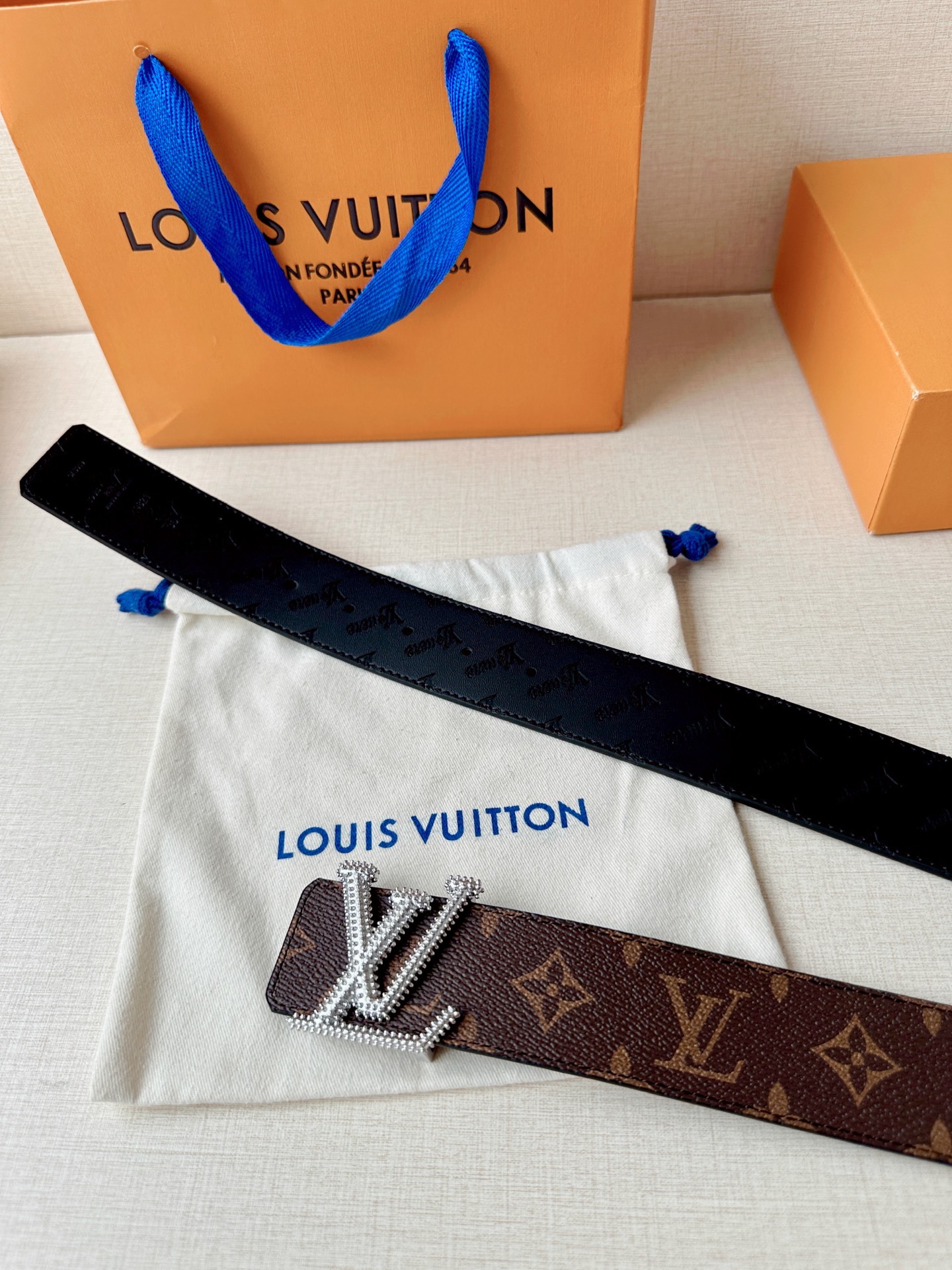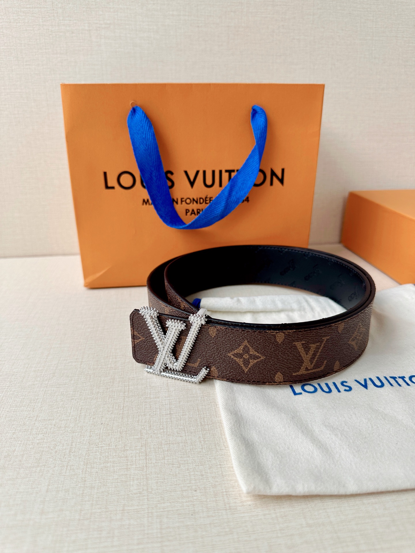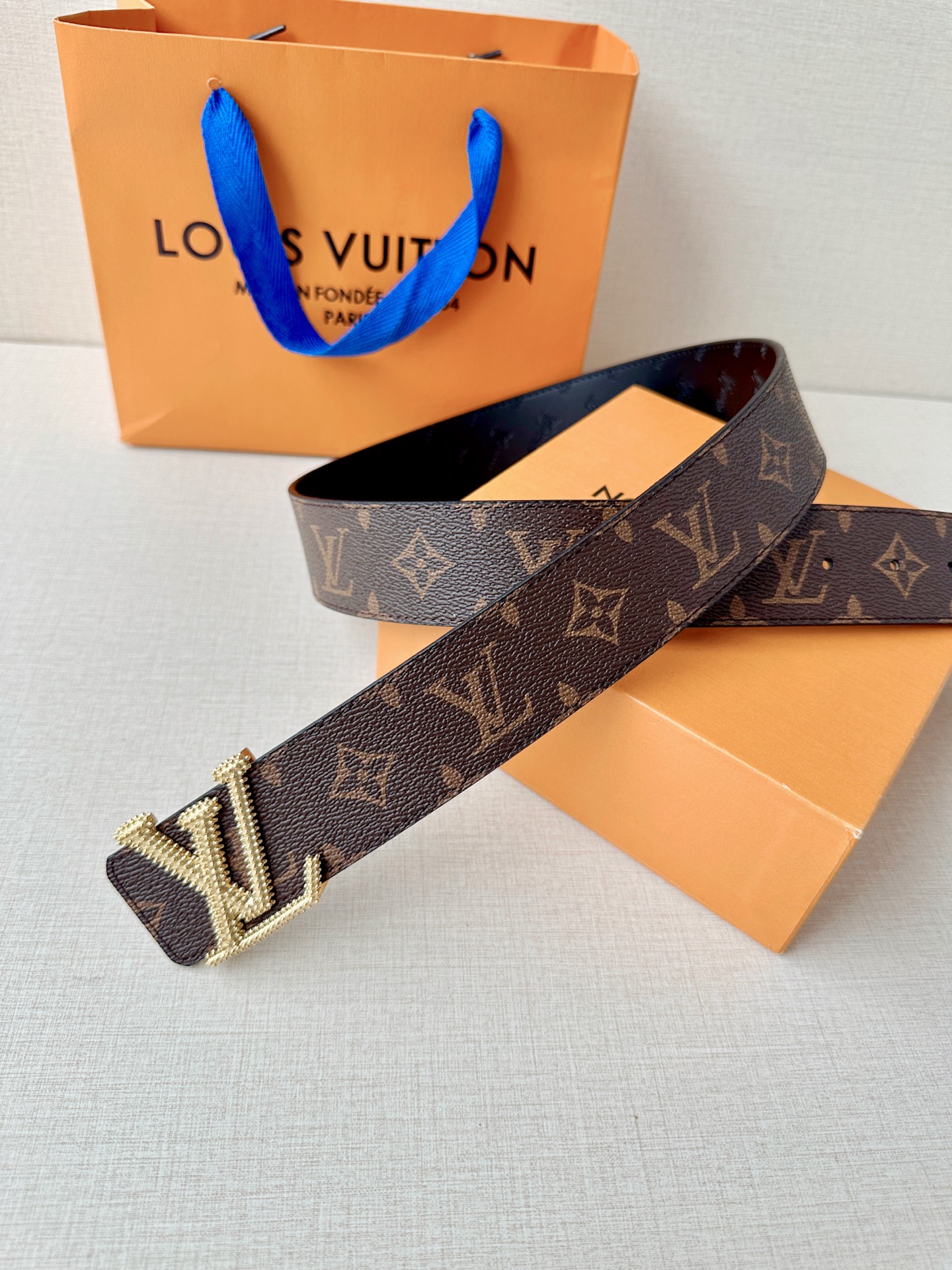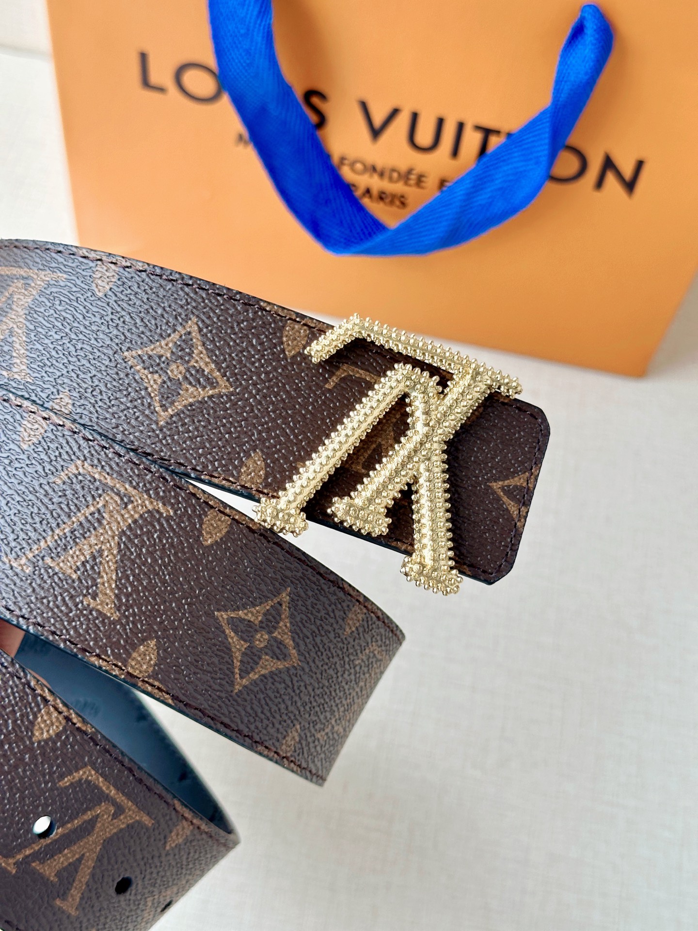 这款皮带是AAAAA 1:1 质量 (非常棒). 使用了和原版一模一样的材料. 商标部分也保持了和路易威登/Louis Vuitton一样. 图片拍摄是实物皮带拍摄, 您所收到的实物保证和我们图片一模一样.
