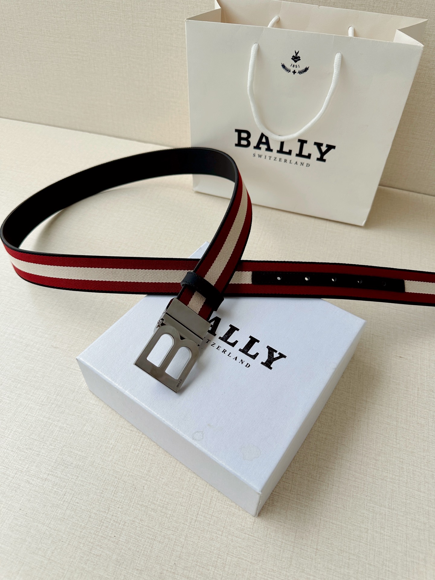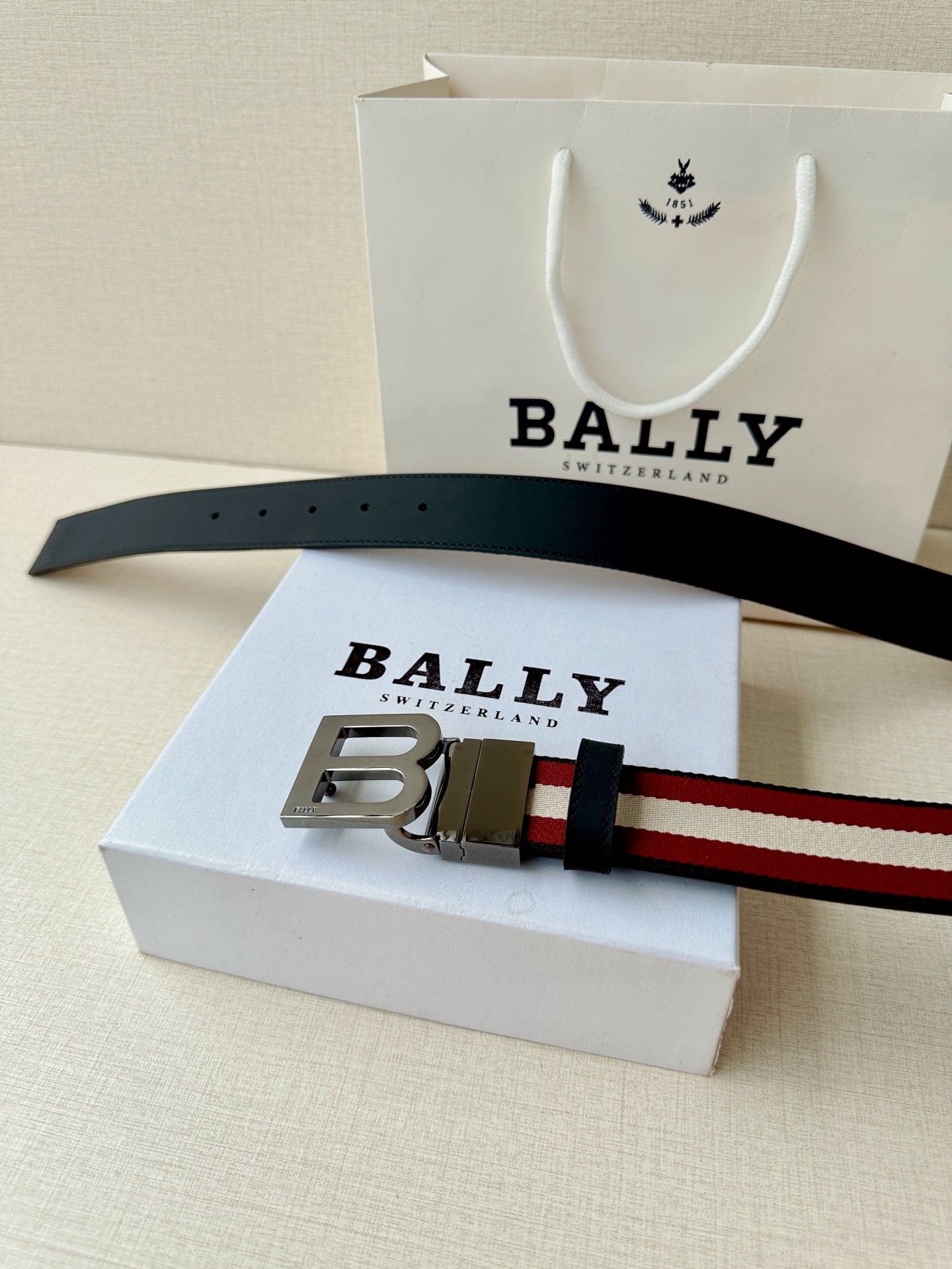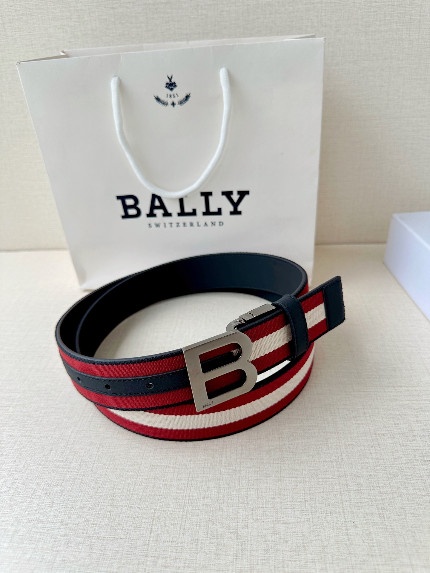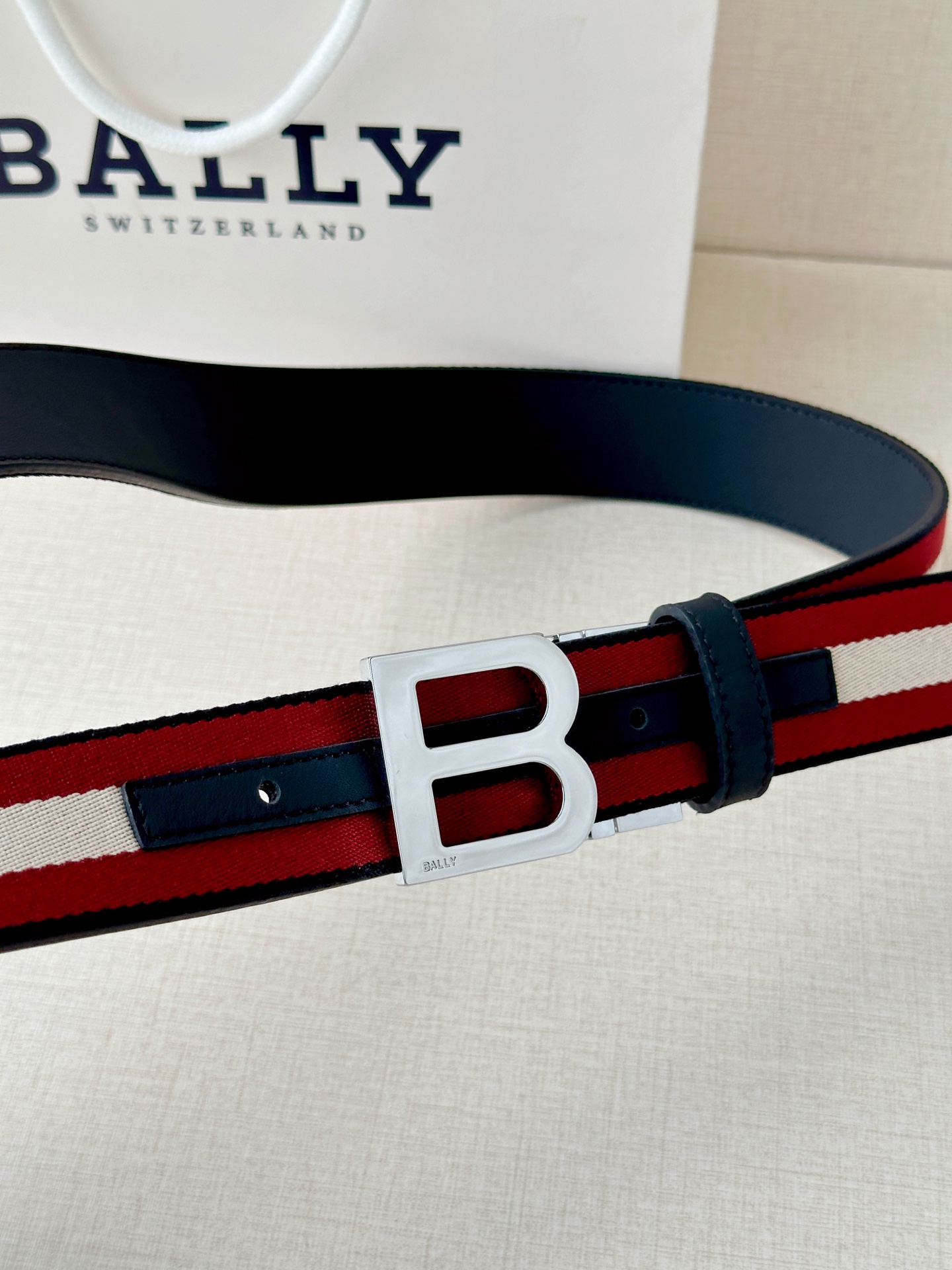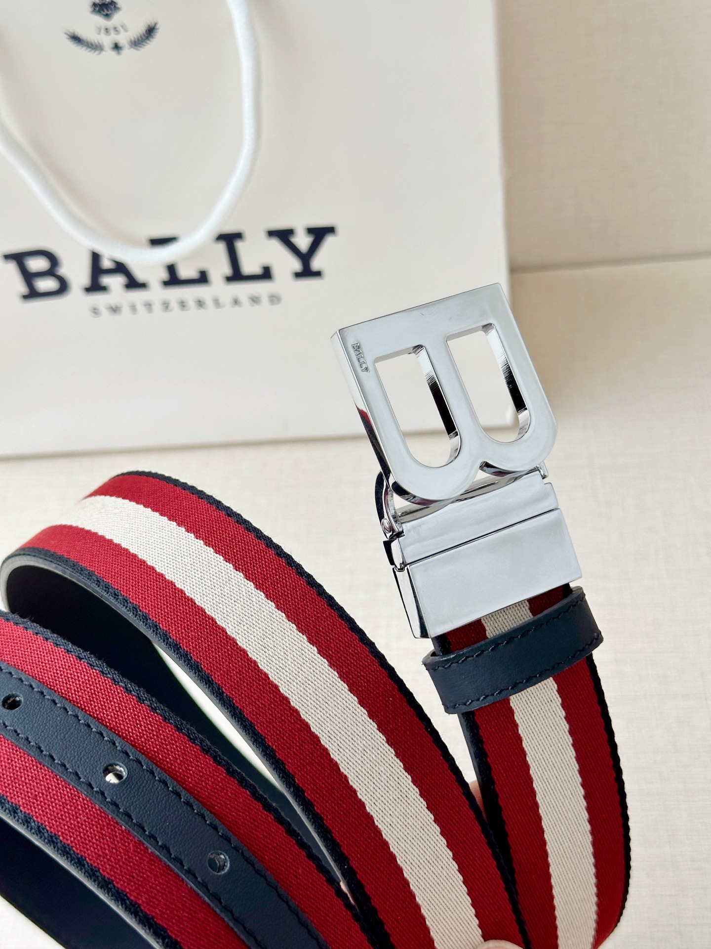 这款皮带是AAAAA 1:1 质量 (非常棒). 使用了和原版一模一样的材料. 商标部分也保持了和BALLY巴利/BALLY一样. 图片拍摄是实物皮带拍摄, 您所收到的实物保证和我们图片一模一样.