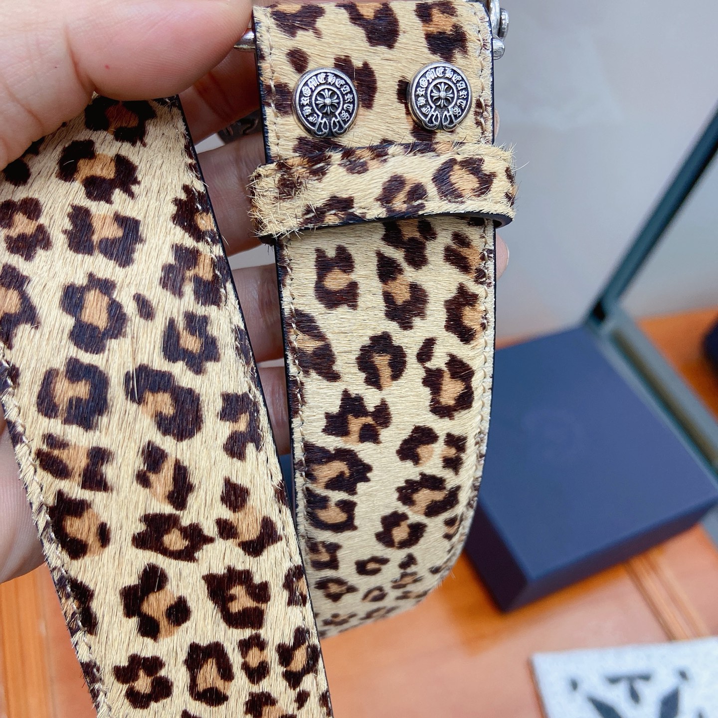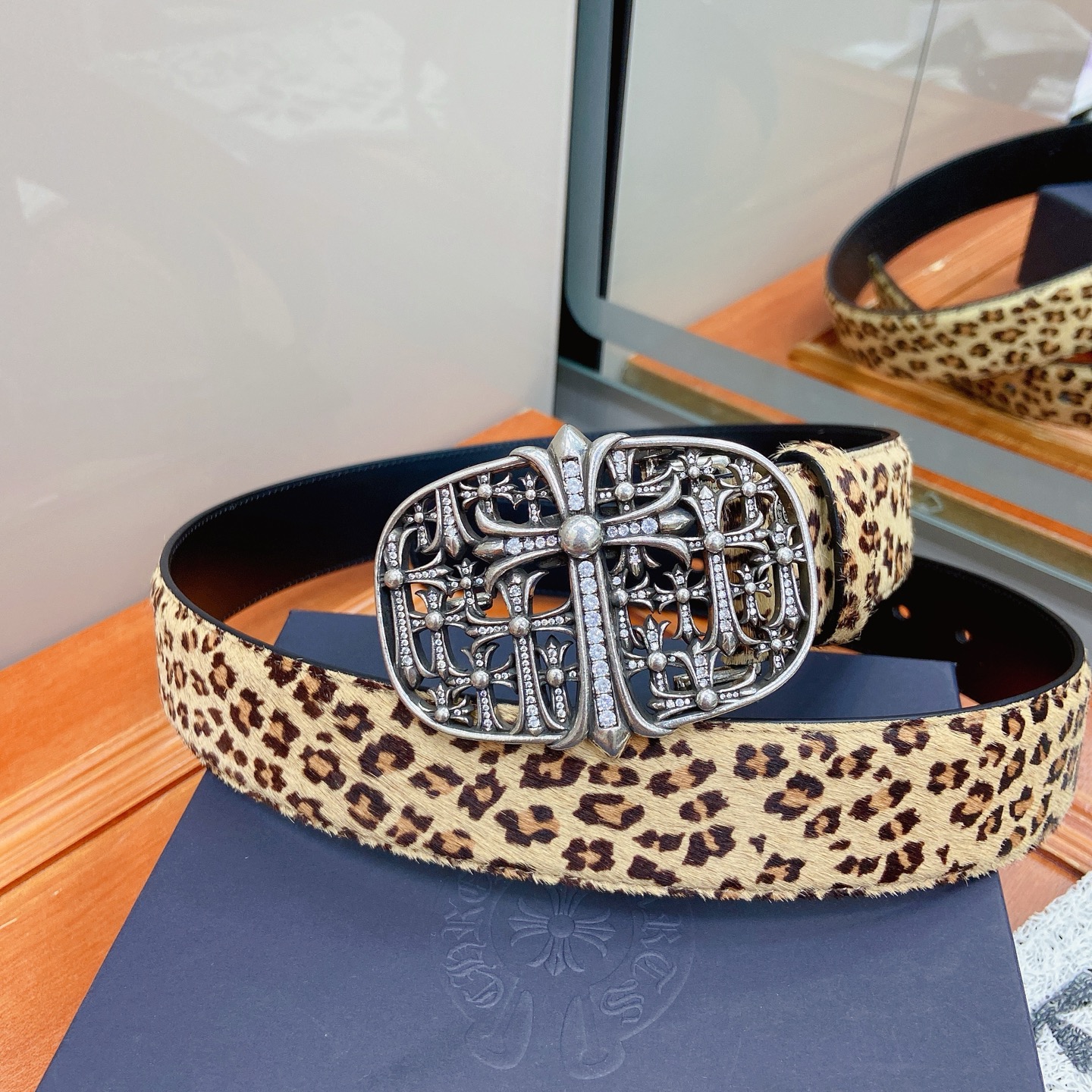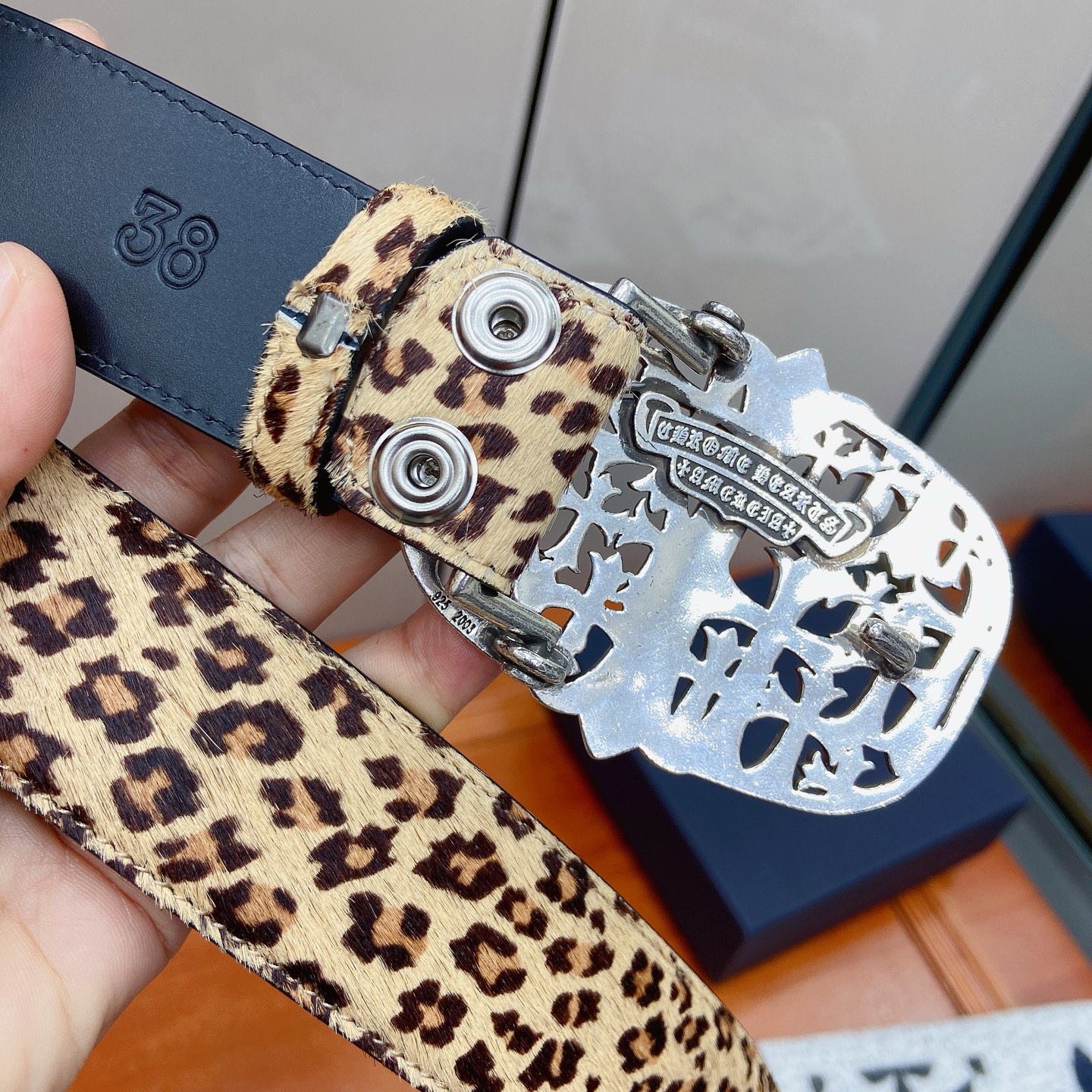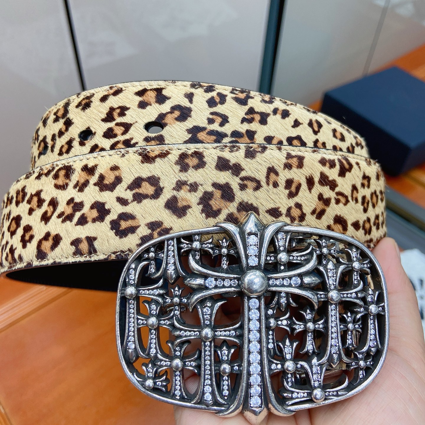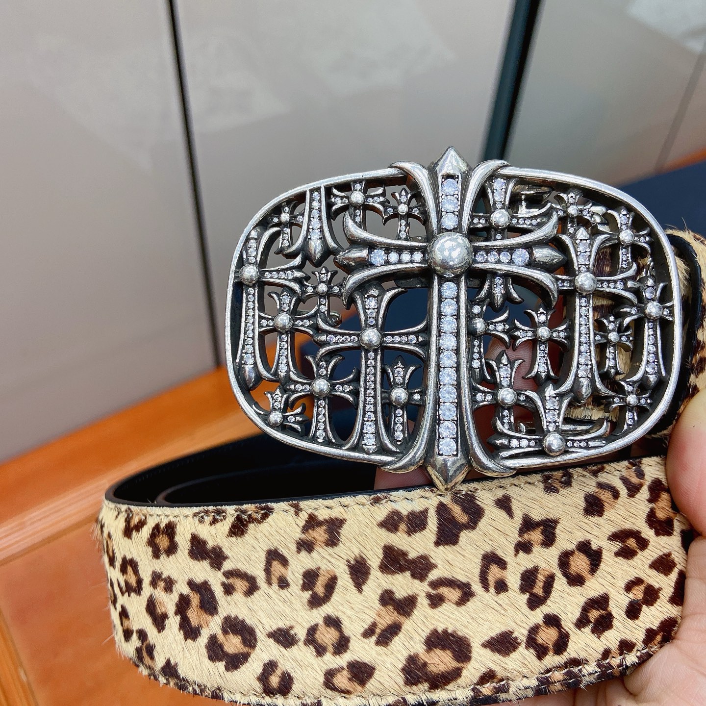 这款皮带是AAAAA 1:1 质量 (非常棒). 使用了和原版一模一样的材料. 商标部分也保持了和克罗心/Chrome Hearts一样. 图片拍摄是实物皮带拍摄, 您所收到的实物保证和我们图片一模一样.