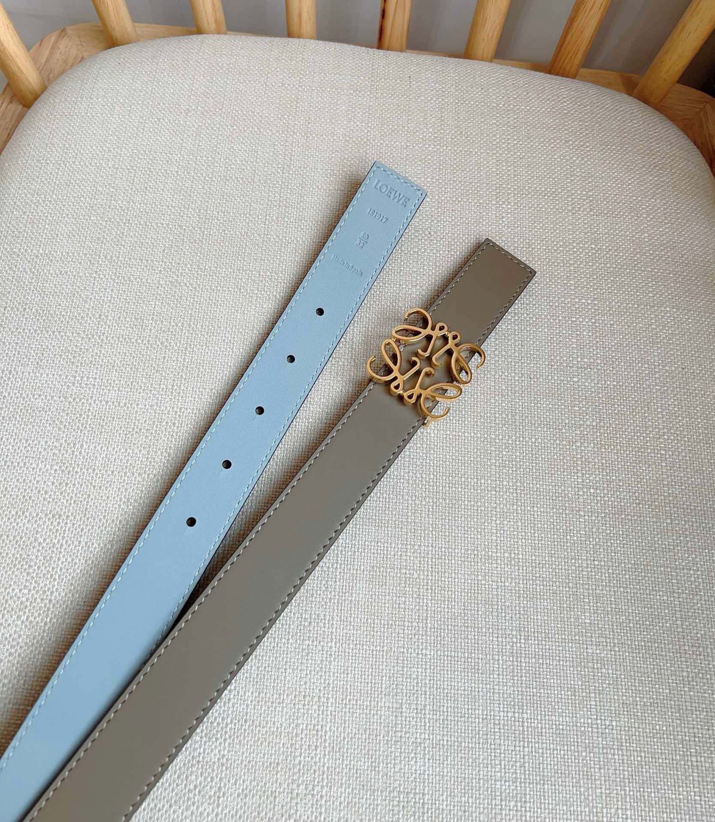 这款皮带是AAAAA 1:1 质量 (非常棒). 使用了和原版一模一样的材料. 商标部分也保持了和罗意威/Loewe一样. 图片拍摄是实物皮带拍摄, 您所收到的实物保证和我们图片一模一样.