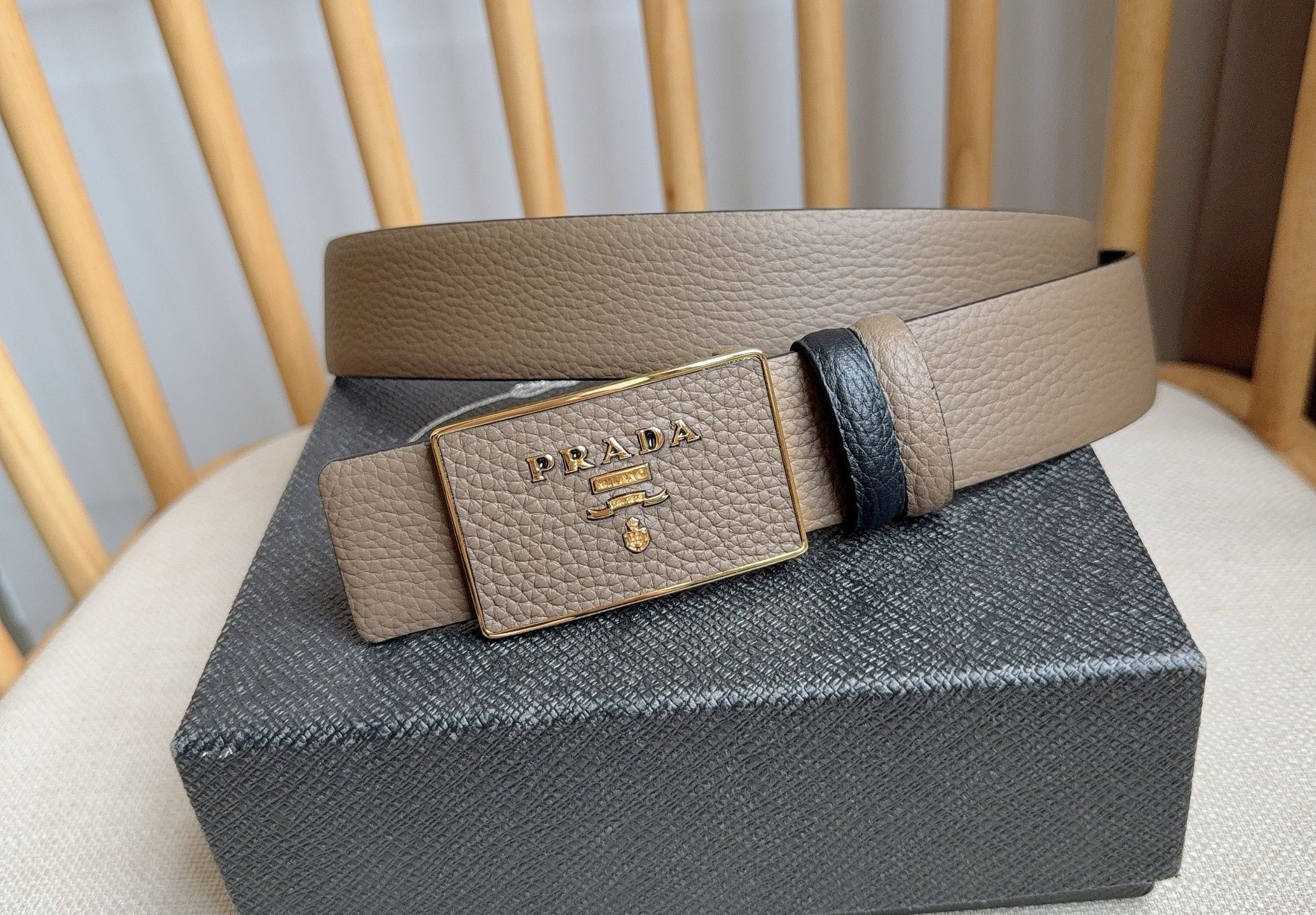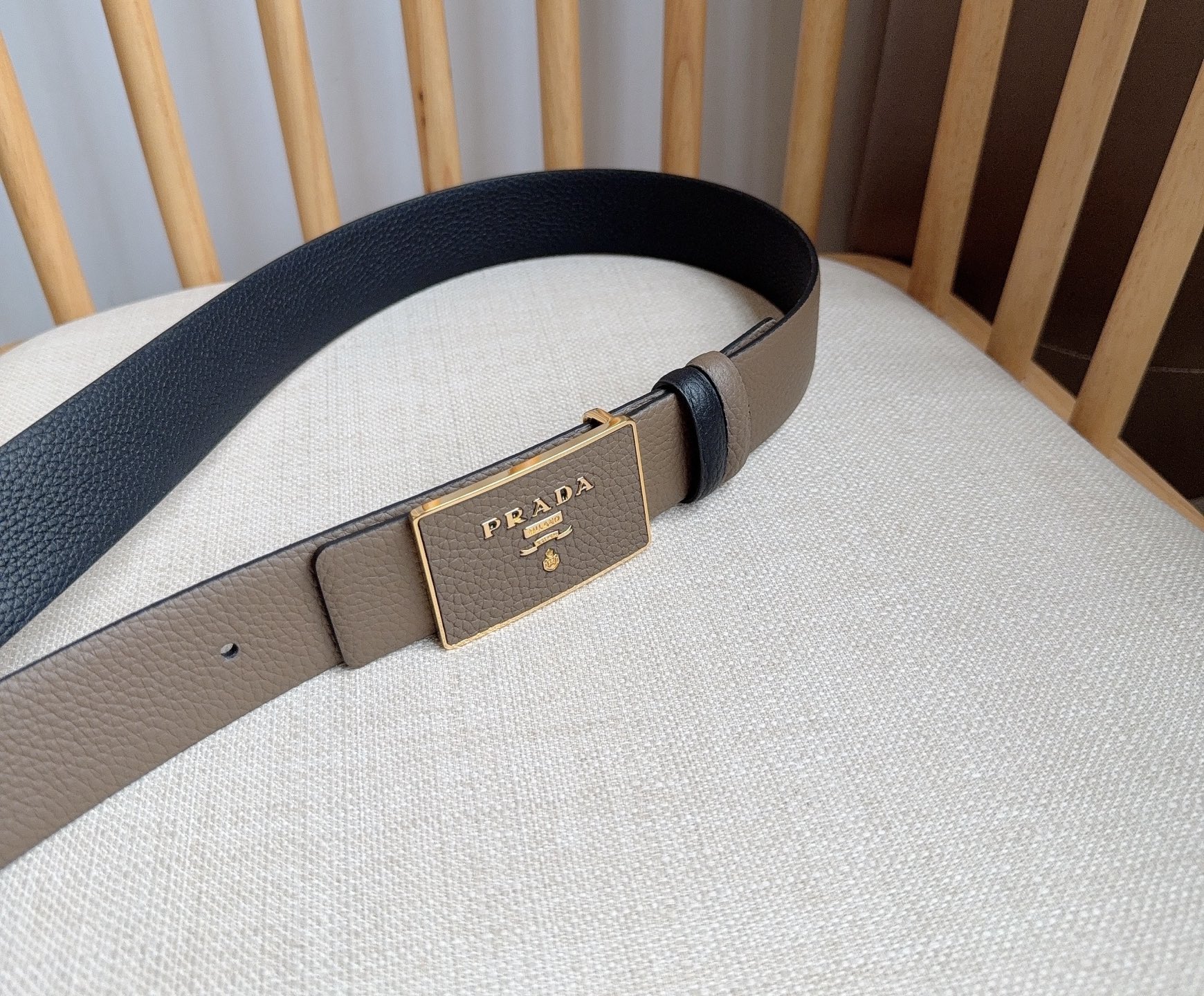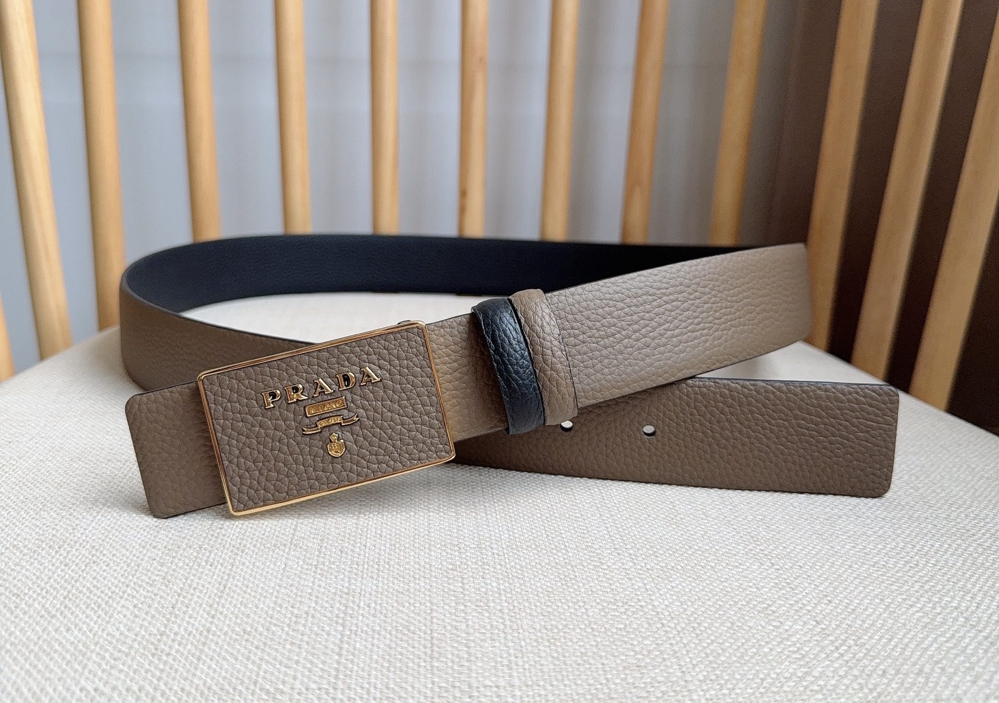这款皮带是AAAAA 1:1 质量 (非常棒). 使用了和原版一模一样的材料. 商标部分也保持了和普拉达/Prada一样. 图片拍摄是实物皮带拍摄, 您所收到的实物保证和我们图片一模一样.