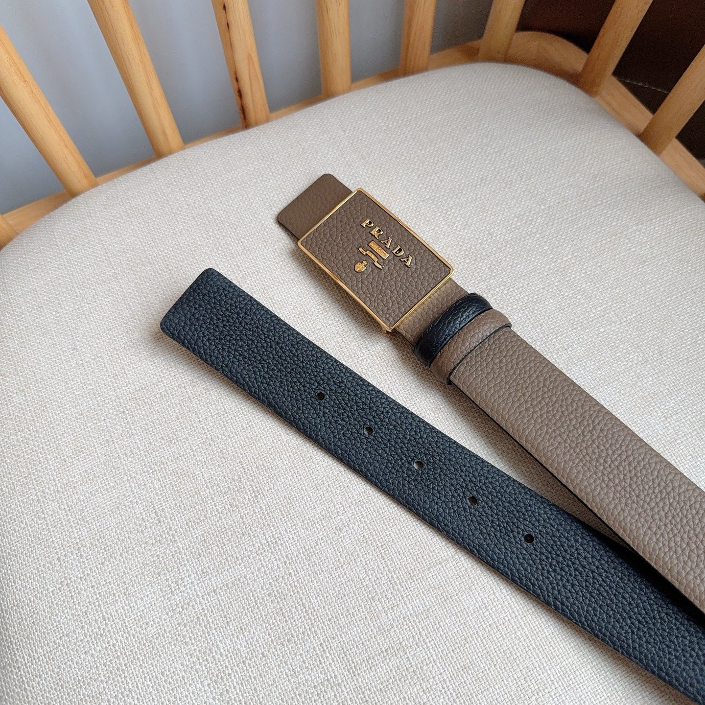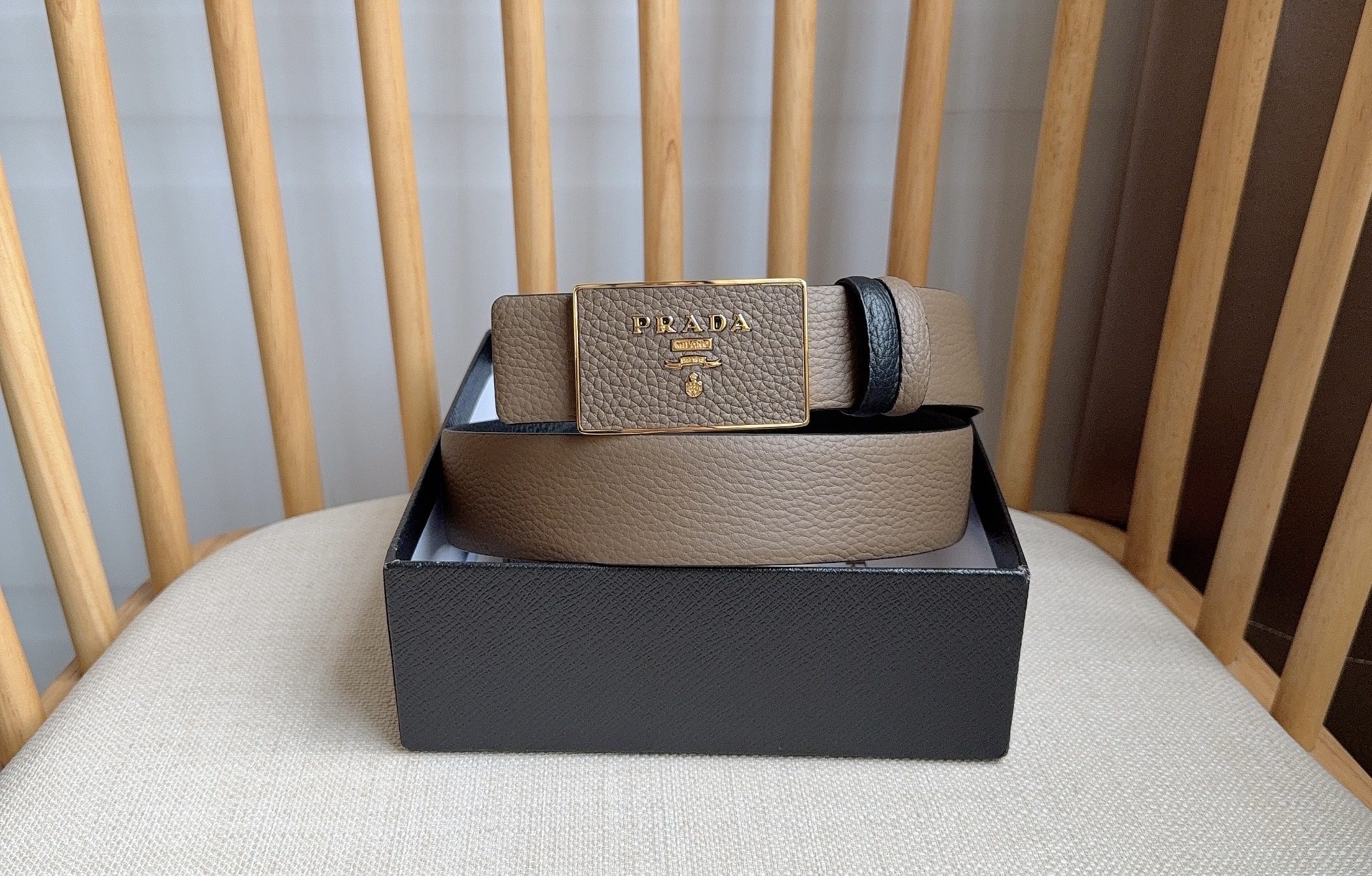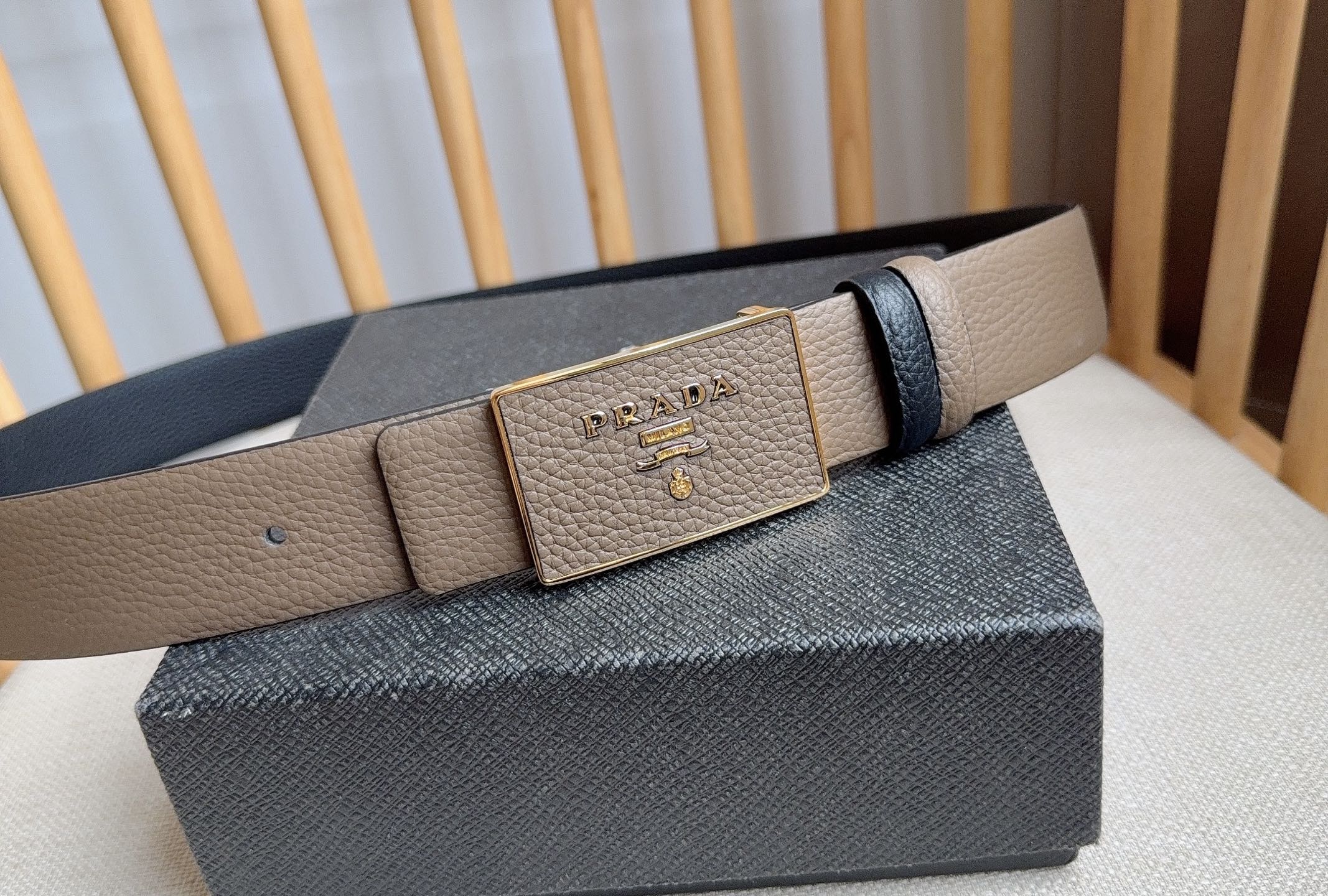 这款皮带是AAAAA 1:1 质量 (非常棒). 使用了和原版一模一样的材料. 商标部分也保持了和普拉达/Prada一样. 图片拍摄是实物皮带拍摄, 您所收到的实物保证和我们图片一模一样.