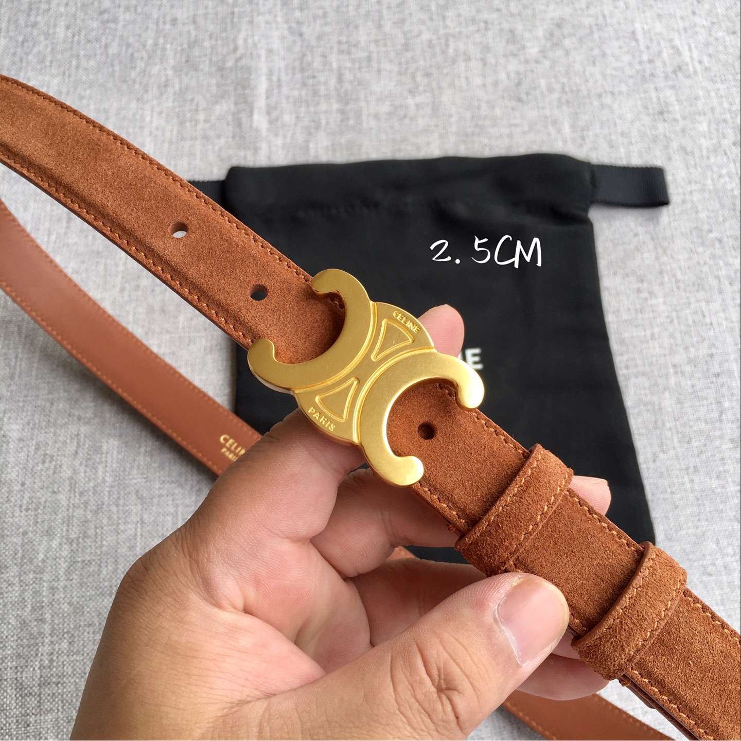 这款皮带是AAAAA 1:1 质量 (非常棒). 使用了和原版一模一样的材料. 商标部分也保持了和思琳/Celine一样. 图片拍摄是实物皮带拍摄, 您所收到的实物保证和我们图片一模一样.
