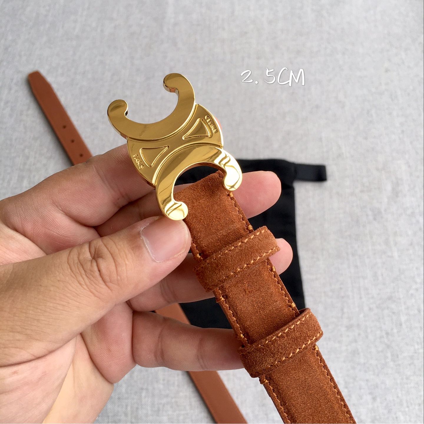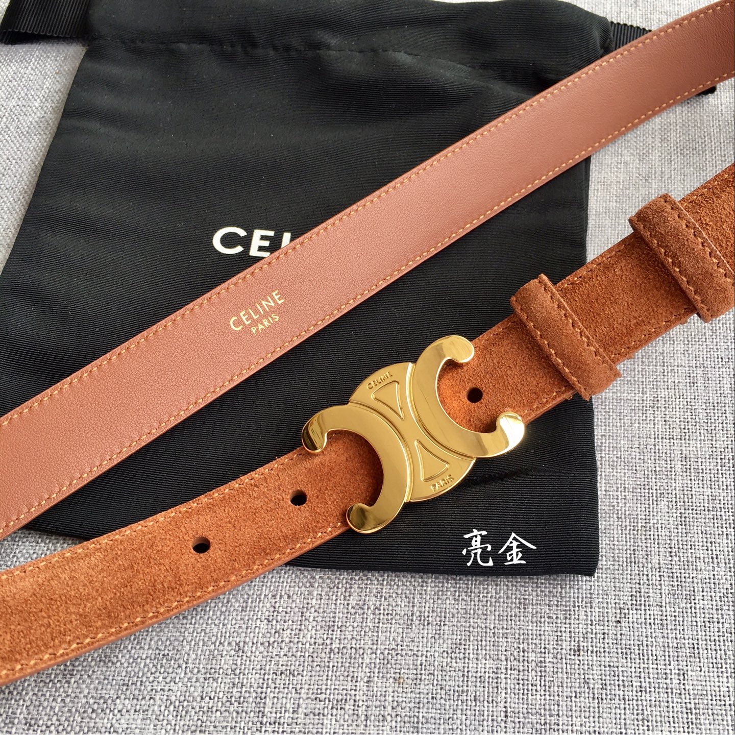 这款皮带是AAAAA 1:1 质量 (非常棒). 使用了和原版一模一样的材料. 商标部分也保持了和思琳/Celine一样. 图片拍摄是实物皮带拍摄, 您所收到的实物保证和我们图片一模一样.