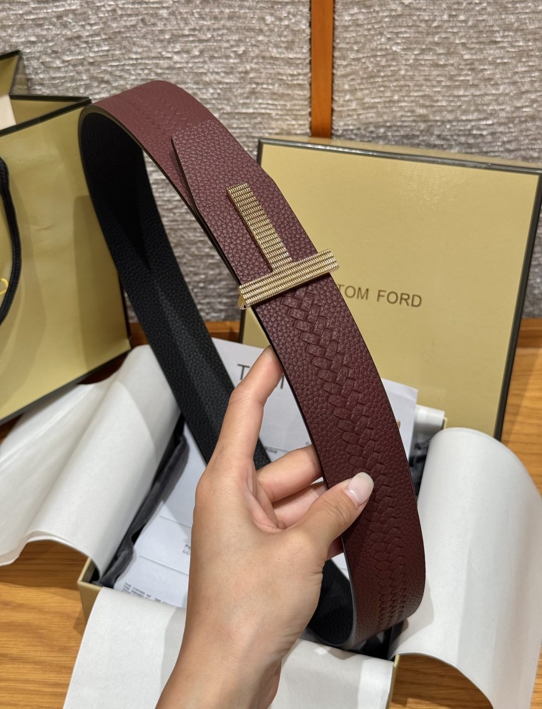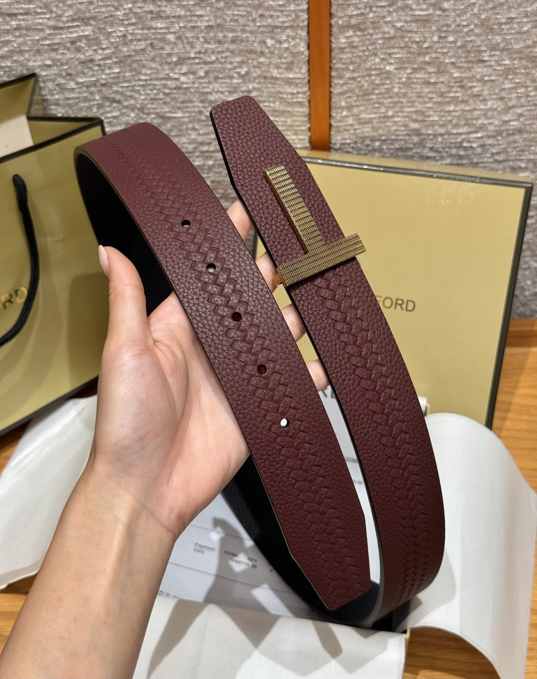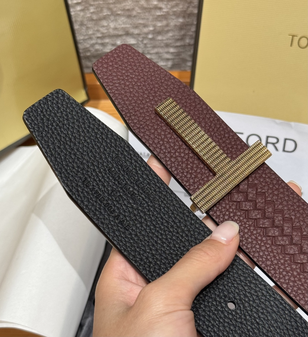 这款皮带是AAAAA 1:1 质量 (非常棒). 使用了和原版一模一样的材料. 商标部分也保持了和一样. 图片拍摄是实物皮带拍摄, 您所收到的实物保证和我们图片一模一样.