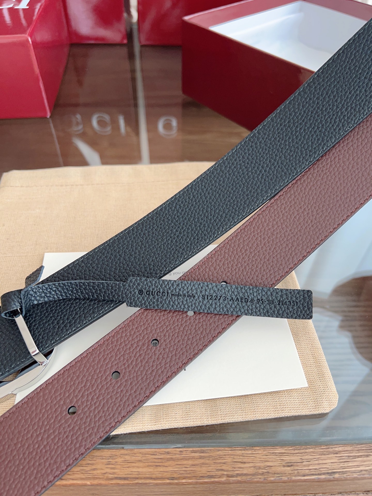 这款皮带是AAAAA 1:1 质量 (非常棒). 使用了和原版一模一样的材料. 商标部分也保持了和古奇/Gucci一样. 图片拍摄是实物皮带拍摄, 您所收到的实物保证和我们图片一模一样.