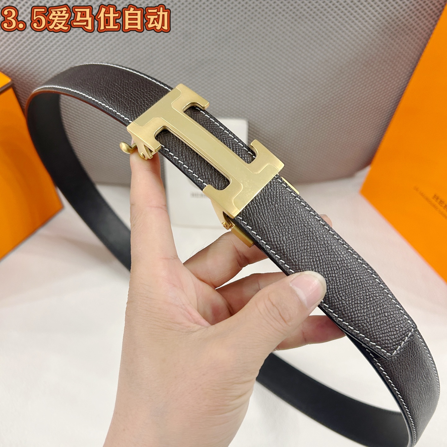 这款皮带是AAAAA 1:1 质量 (非常棒). 使用了和原版一模一样的材料. 商标部分也保持了和爱马仕/Hermes一样. 图片拍摄是实物皮带拍摄, 您所收到的实物保证和我们图片一模一样.