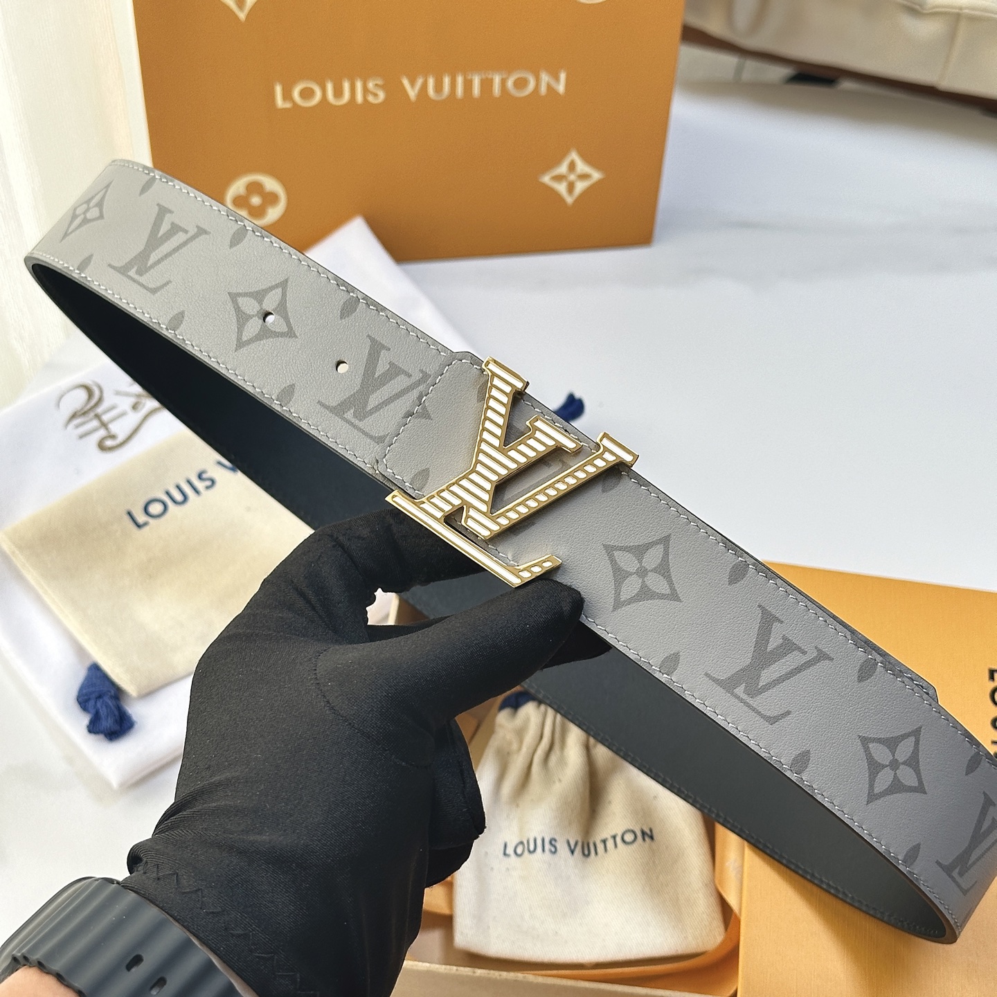 这款皮带是AAAAA 1:1 质量 (非常棒). 使用了和原版一模一样的材料. 商标部分也保持了和一样. 图片拍摄是实物皮带拍摄, 您所收到的实物保证和我们图片一模一样.