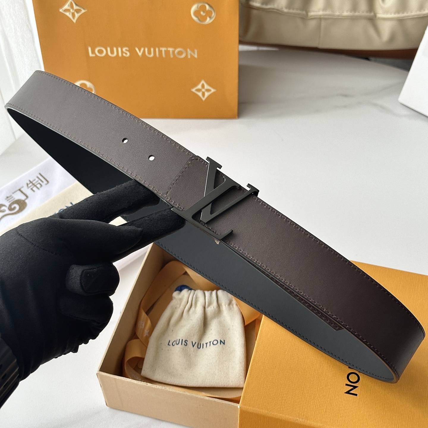 这款皮带是AAAAA 1:1 质量 (非常棒). 使用了和原版一模一样的材料. 商标部分也保持了和一样. 图片拍摄是实物皮带拍摄, 您所收到的实物保证和我们图片一模一样.