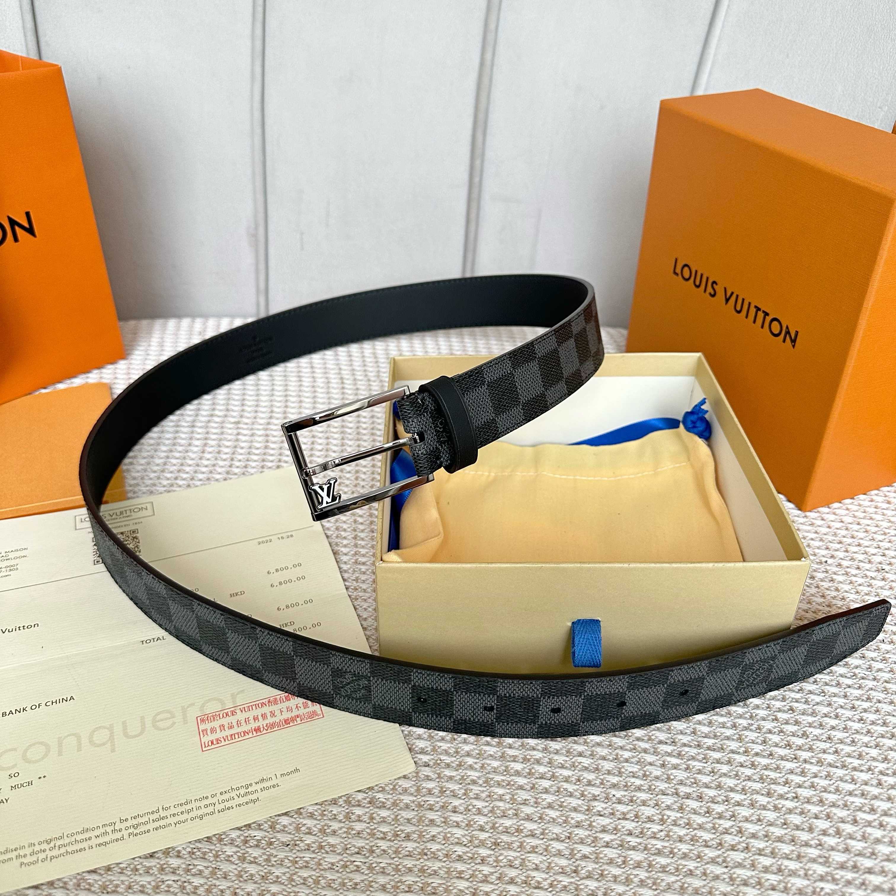 这款皮带是AAAAA 1:1 质量 (非常棒). 使用了和原版一模一样的材料. 商标部分也保持了和路易威登/Louis Vuitton一样. 图片拍摄是实物皮带拍摄, 您所收到的实物保证和我们图片一模一样.