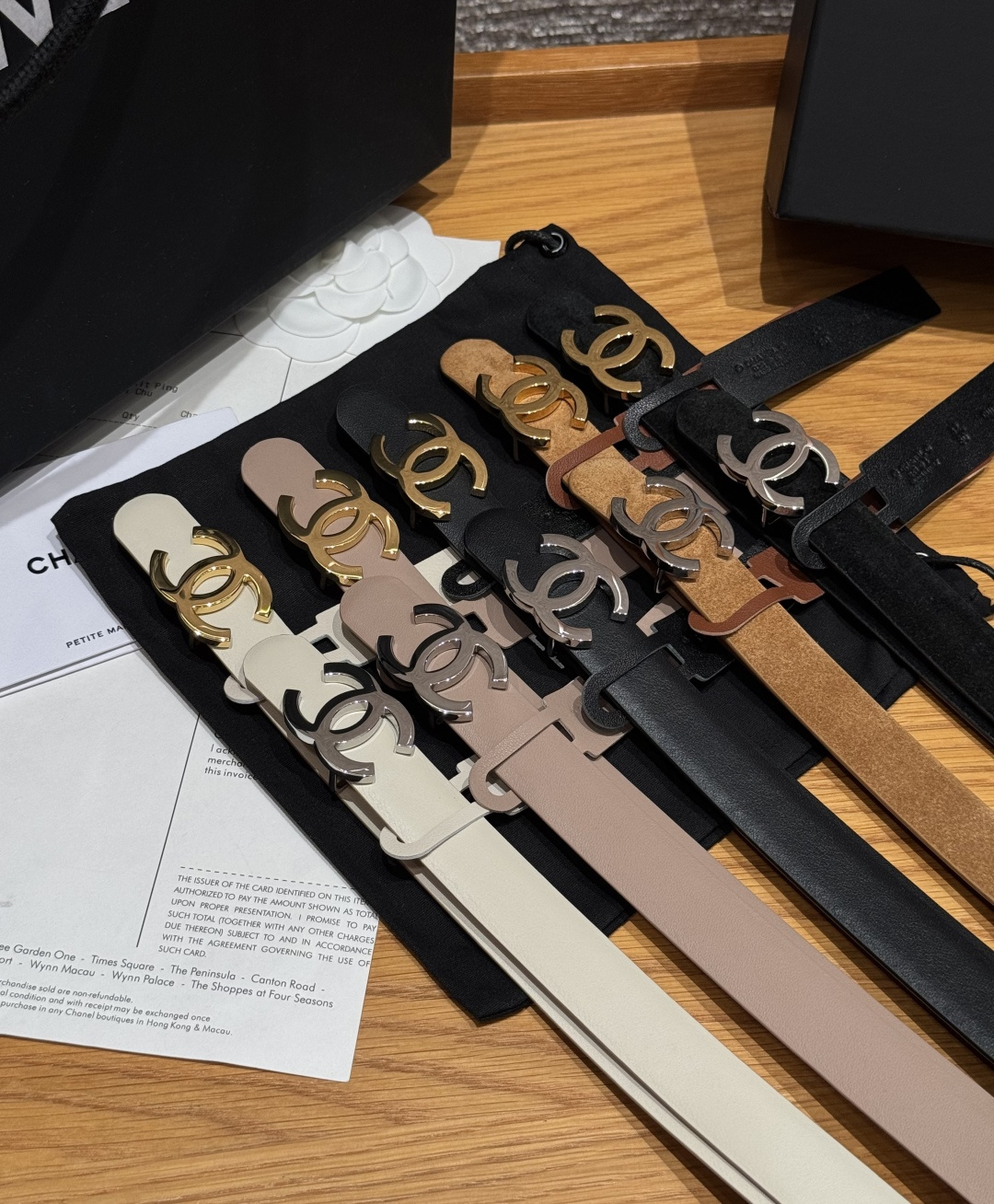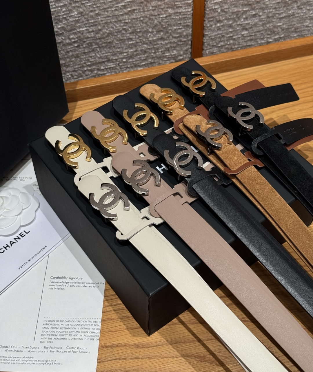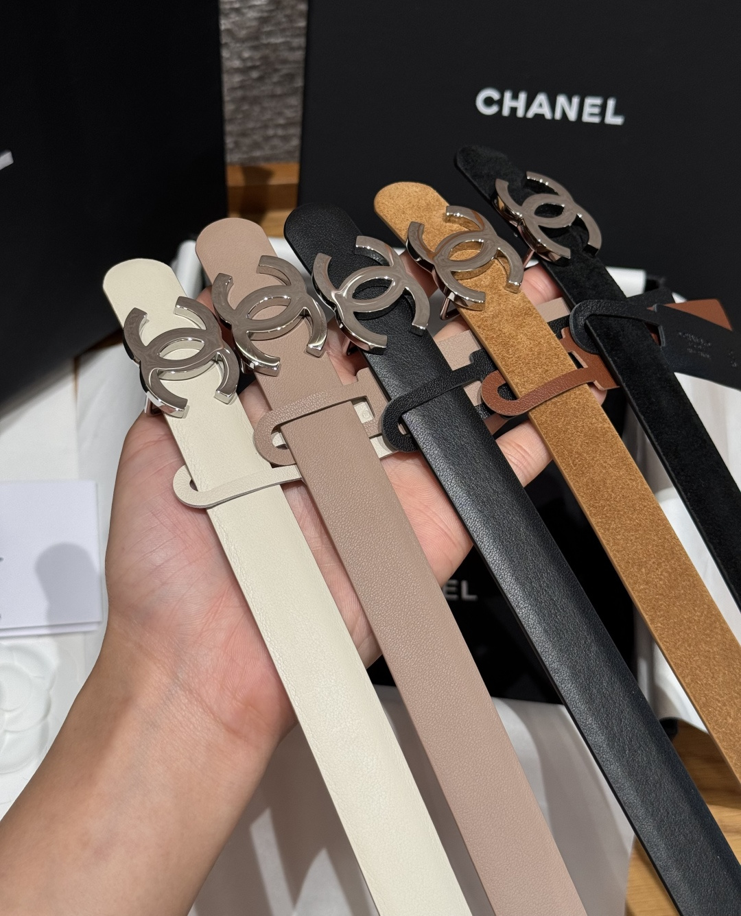 这款皮带是AAAAA 1:1 质量 (非常棒). 使用了和原版一模一样的材料. 商标部分也保持了和香奈儿/Chanel一样. 图片拍摄是实物皮带拍摄, 您所收到的实物保证和我们图片一模一样.