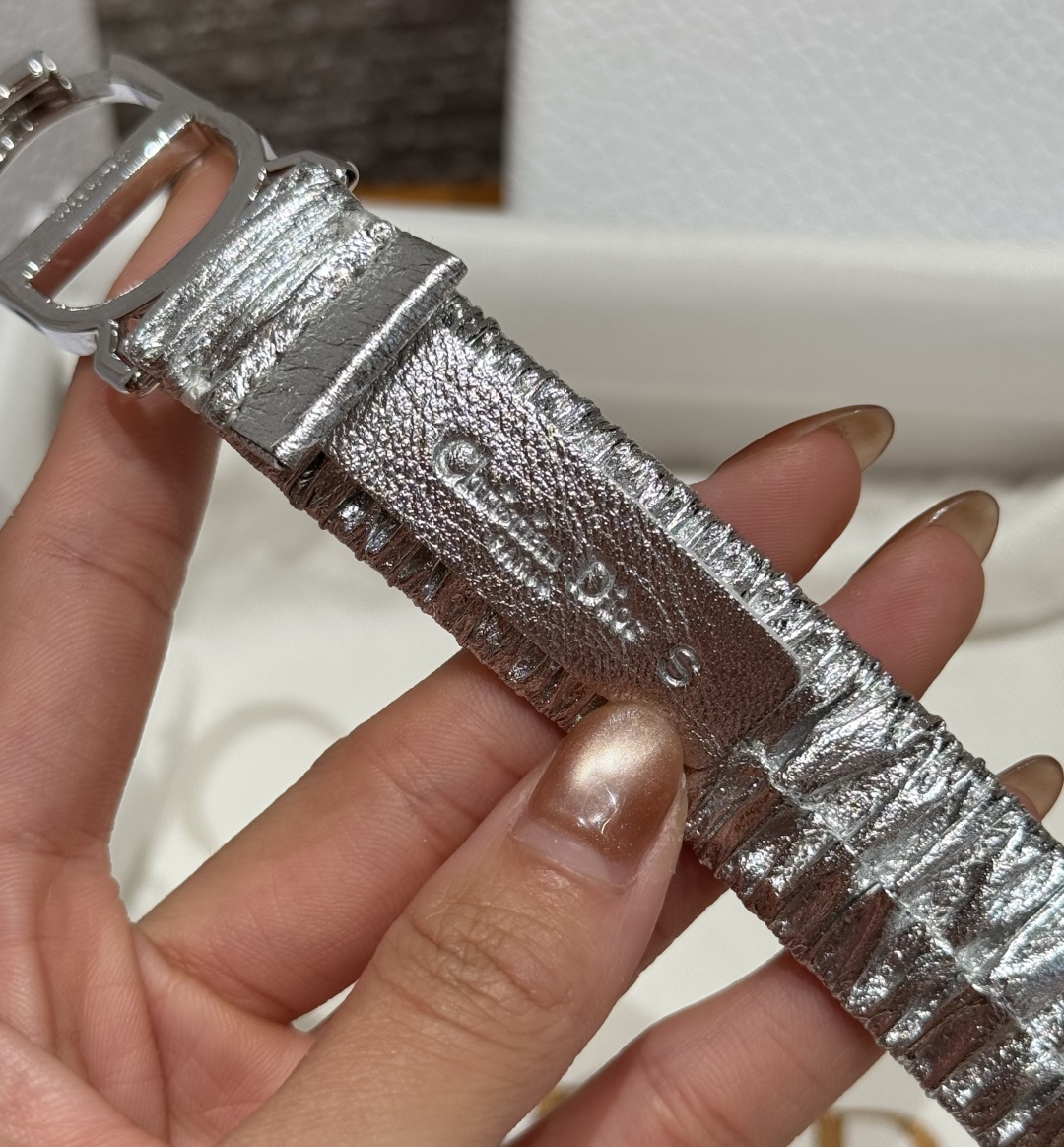 这款皮带是AAAAA 1:1 质量 (非常棒). 使用了和原版一模一样的材料. 商标部分也保持了和迪奥/Dior一样. 图片拍摄是实物皮带拍摄, 您所收到的实物保证和我们图片一模一样.
