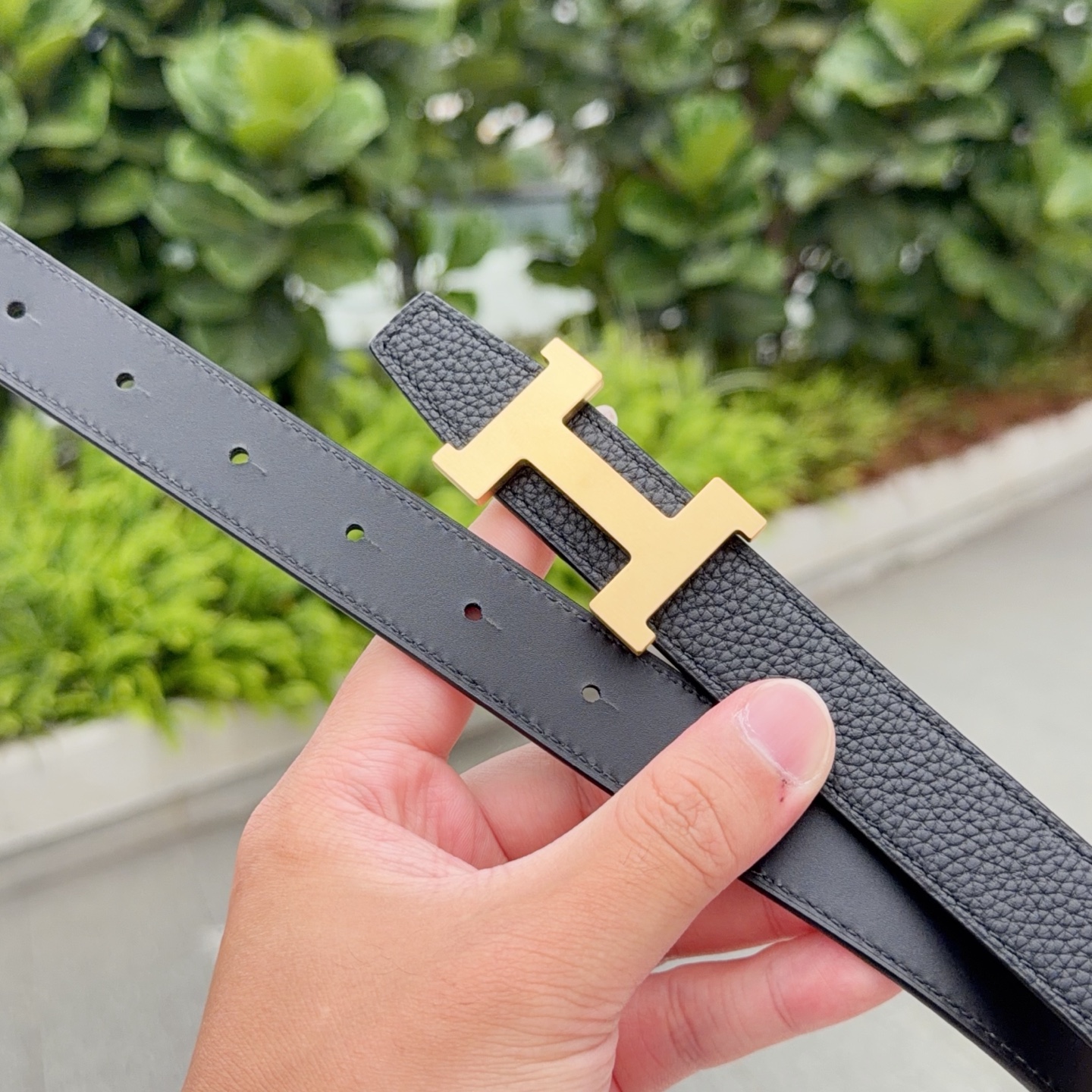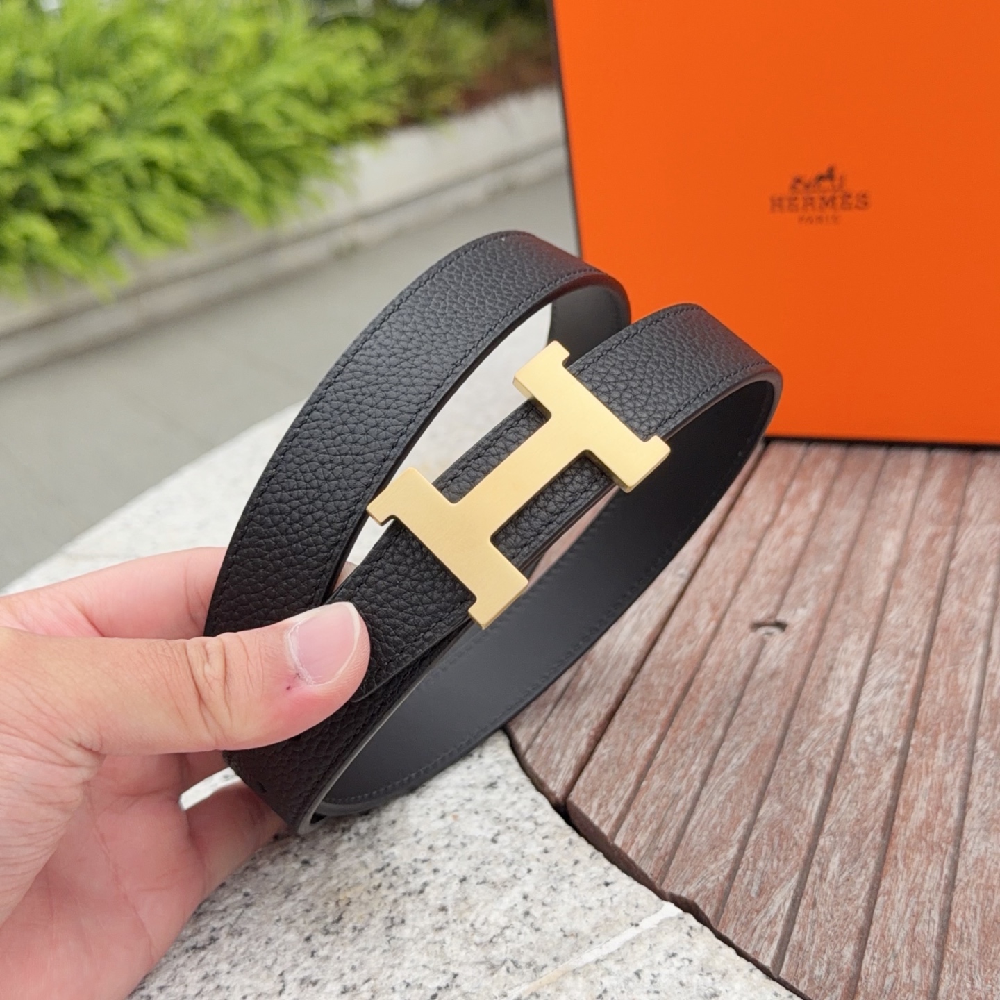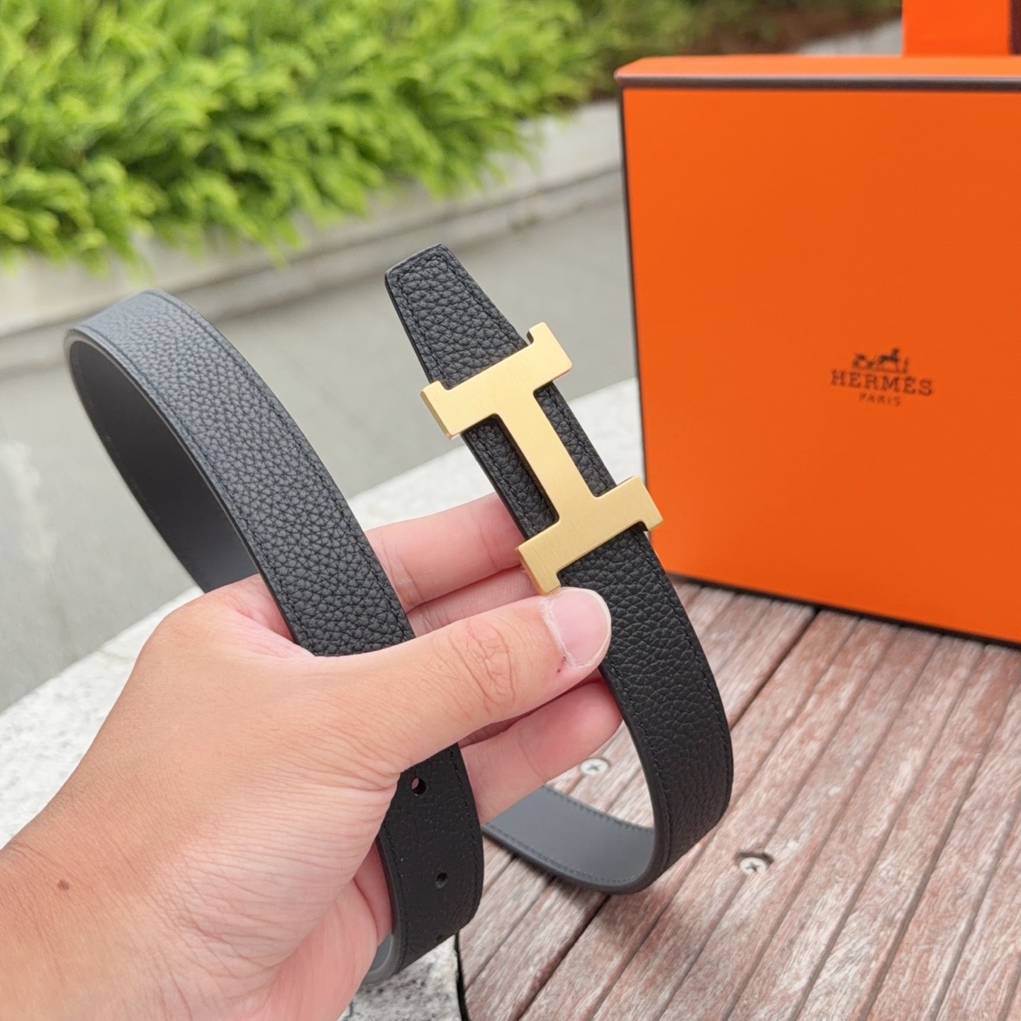 这款皮带是AAAAA 1:1 质量 (非常棒). 使用了和原版一模一样的材料. 商标部分也保持了和爱马仕/Hermes一样. 图片拍摄是实物皮带拍摄, 您所收到的实物保证和我们图片一模一样.