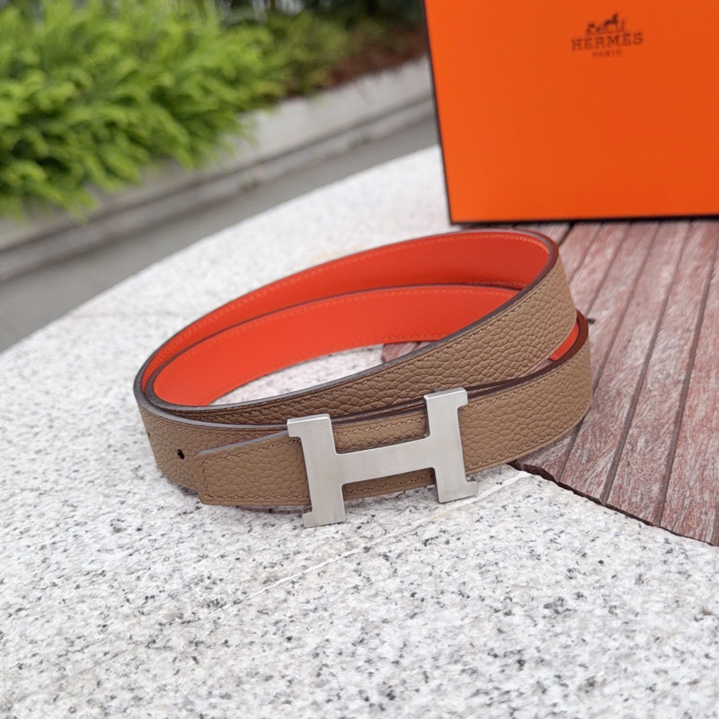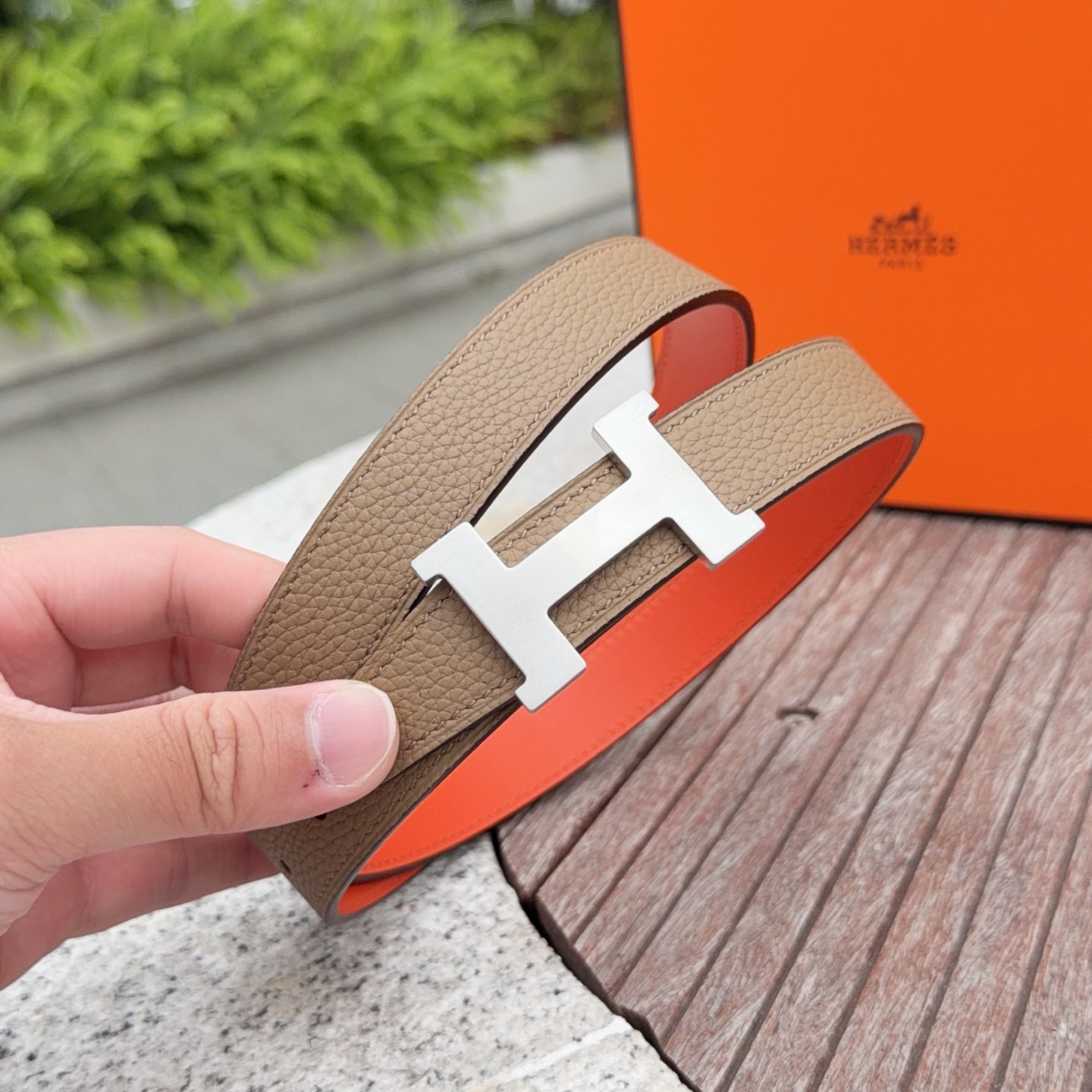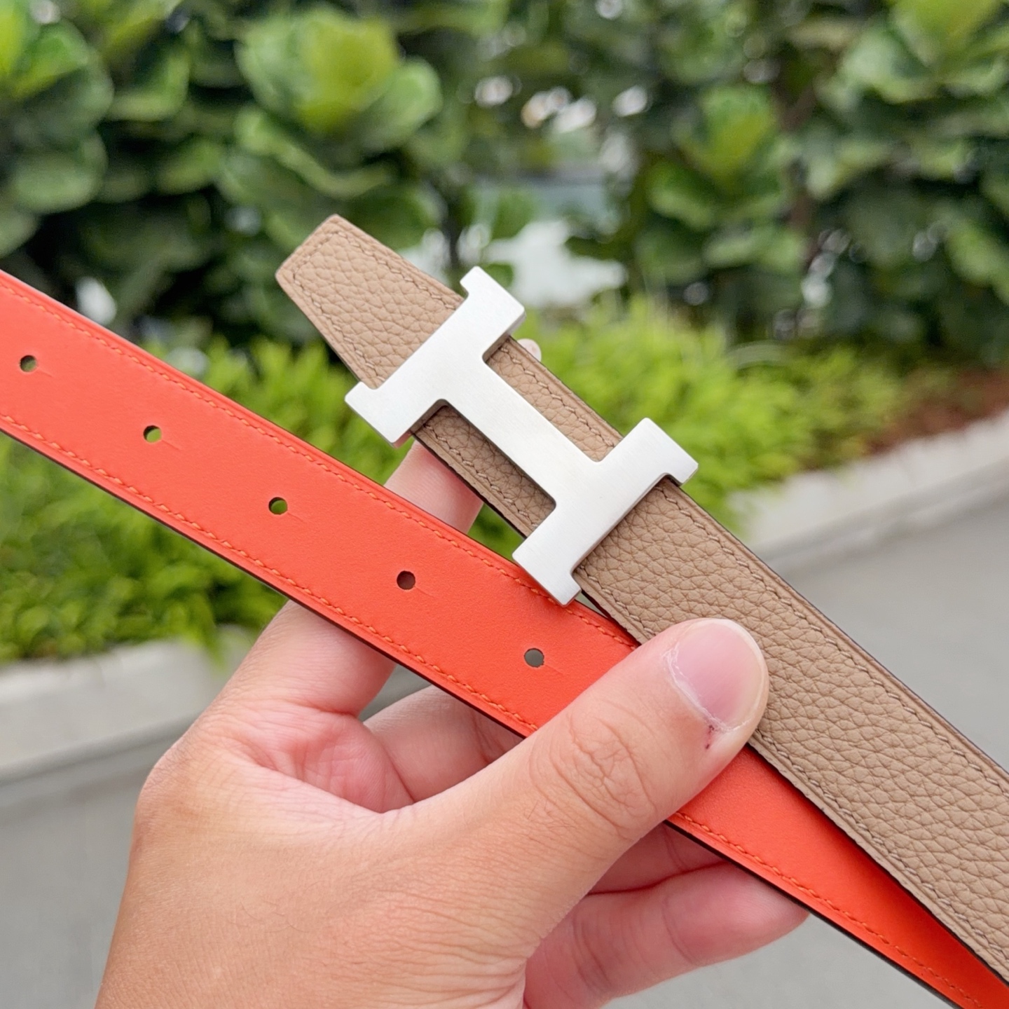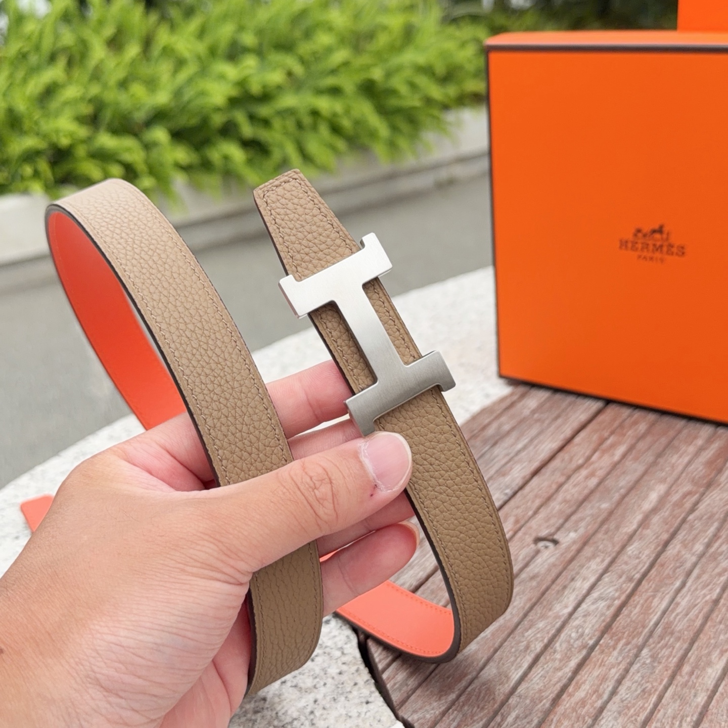这款皮带是AAAAA 1:1 质量 (非常棒). 使用了和原版一模一样的材料. 商标部分也保持了和爱马仕/Hermes一样. 图片拍摄是实物皮带拍摄, 您所收到的实物保证和我们图片一模一样.