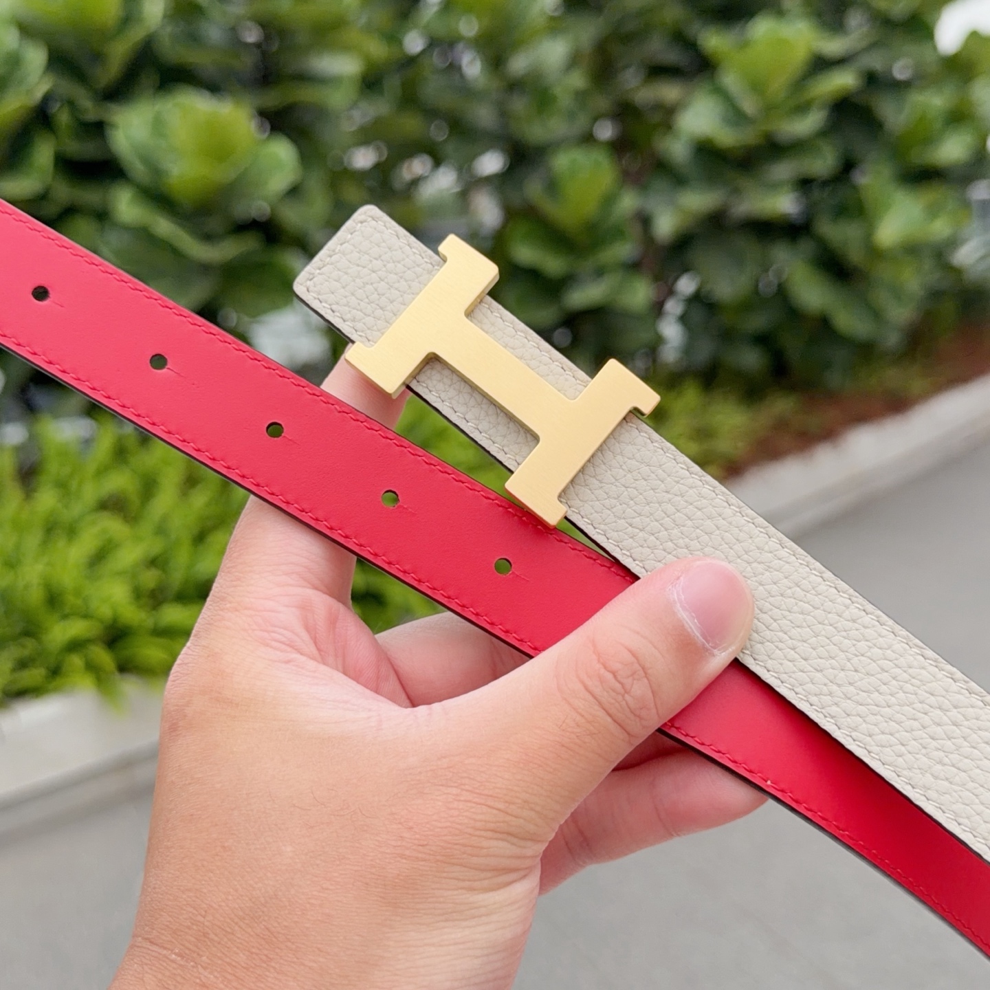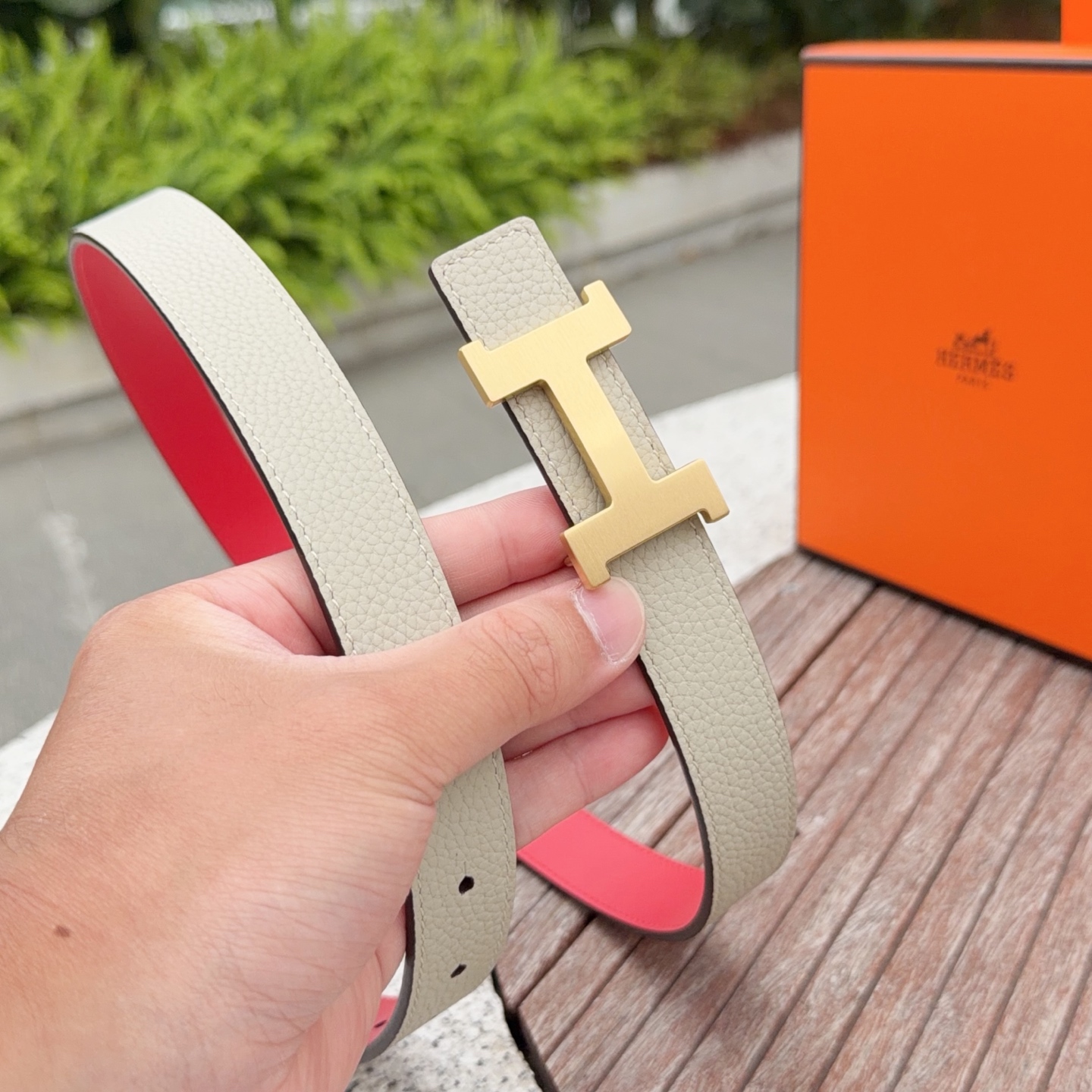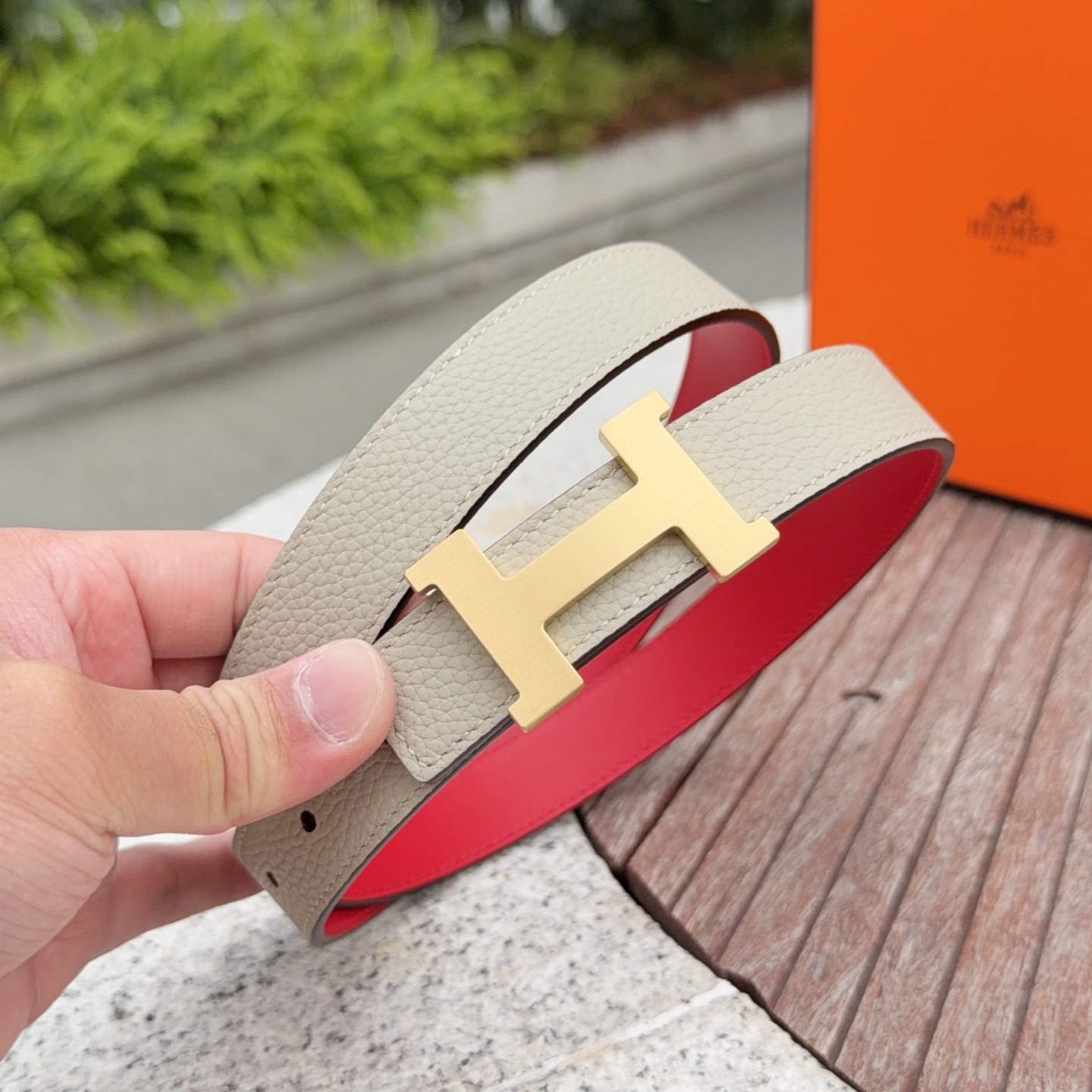 这款皮带是AAAAA 1:1 质量 (非常棒). 使用了和原版一模一样的材料. 商标部分也保持了和爱马仕/Hermes一样. 图片拍摄是实物皮带拍摄, 您所收到的实物保证和我们图片一模一样.