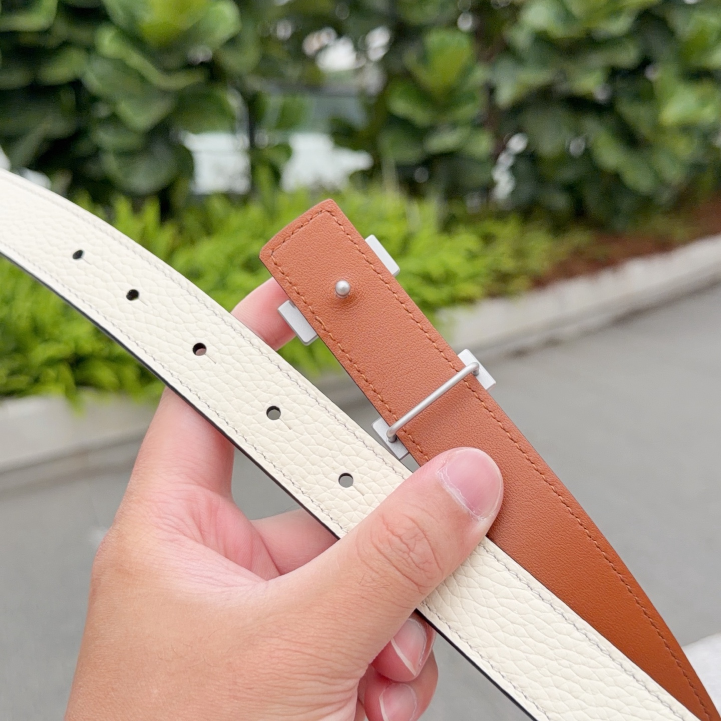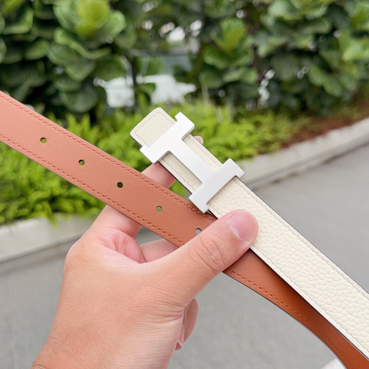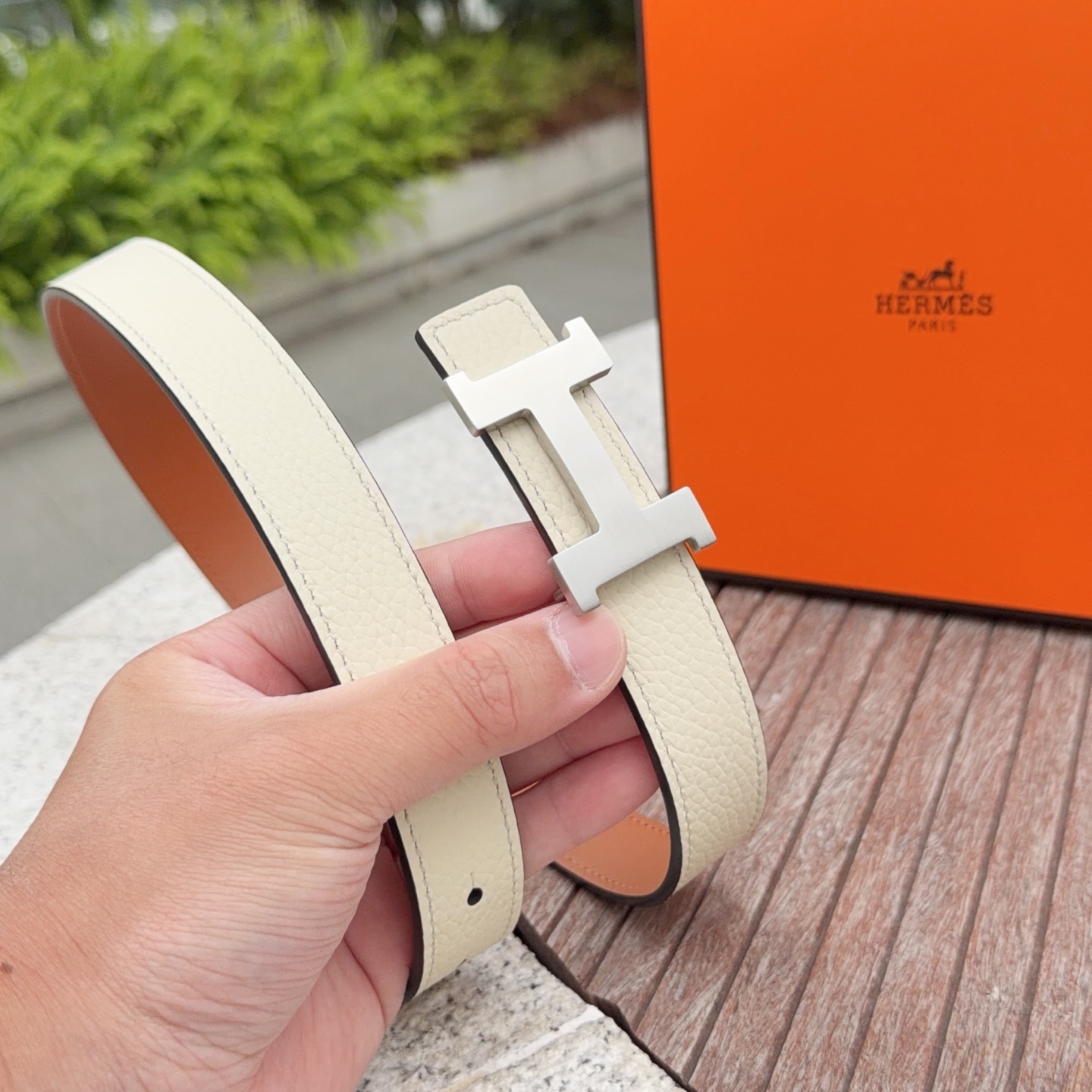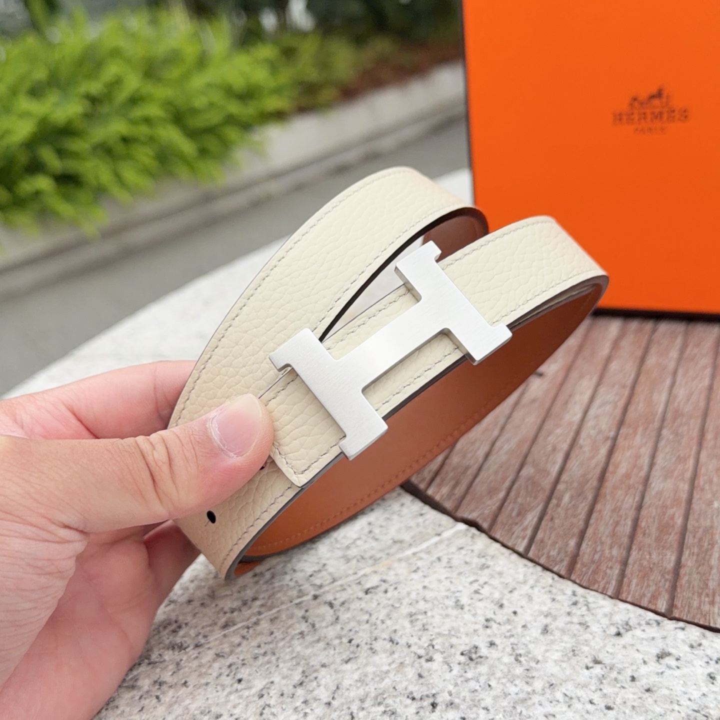 这款皮带是AAAAA 1:1 质量 (非常棒). 使用了和原版一模一样的材料. 商标部分也保持了和爱马仕/Hermes一样. 图片拍摄是实物皮带拍摄, 您所收到的实物保证和我们图片一模一样.