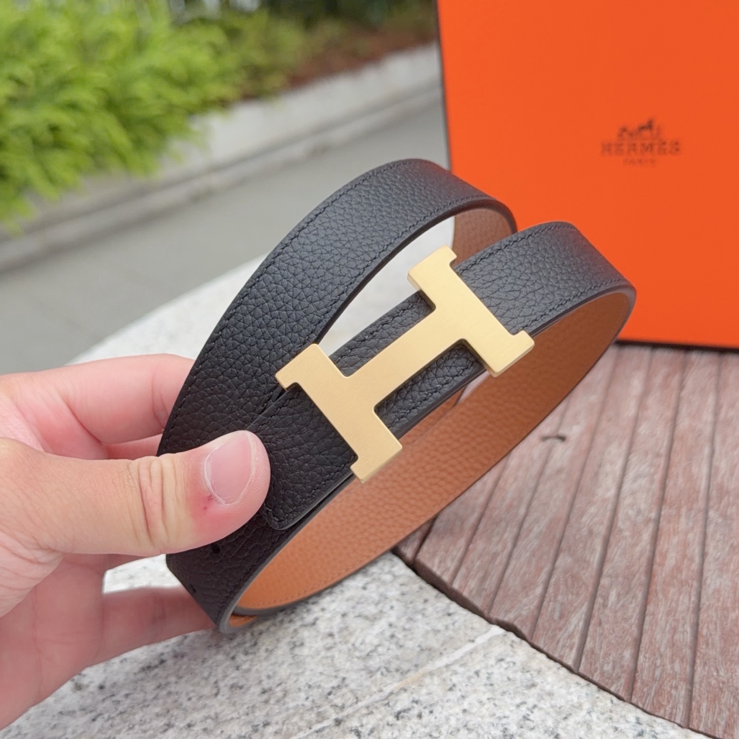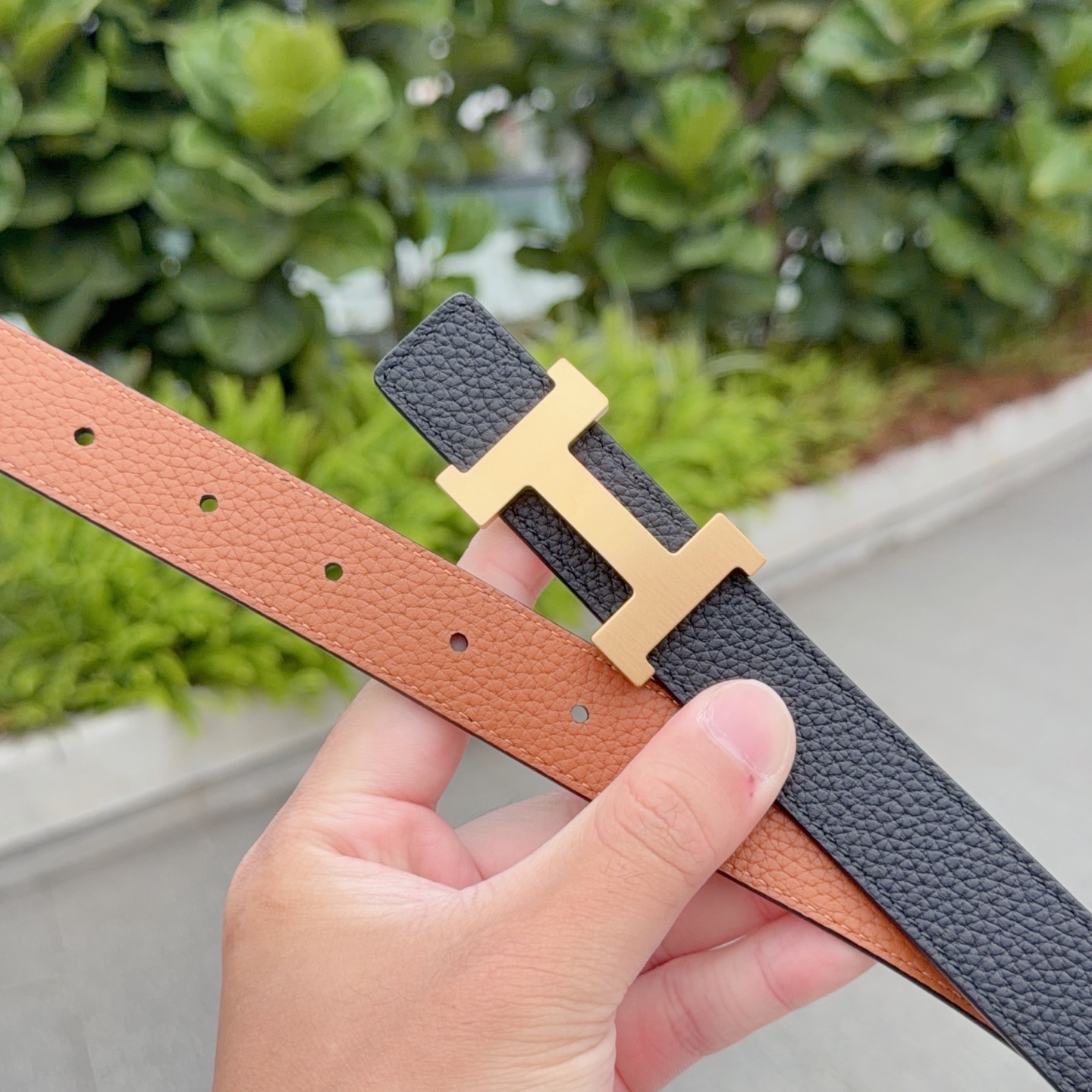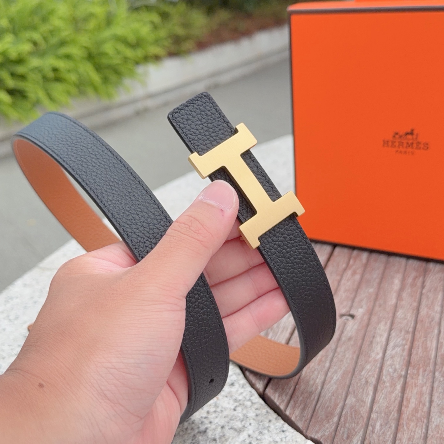 这款皮带是AAAAA 1:1 质量 (非常棒). 使用了和原版一模一样的材料. 商标部分也保持了和爱马仕/Hermes一样. 图片拍摄是实物皮带拍摄, 您所收到的实物保证和我们图片一模一样.