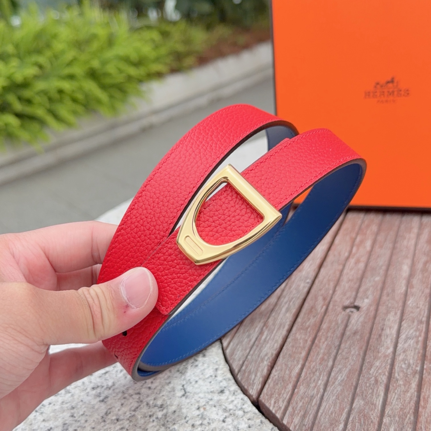 这款皮带是AAAAA 1:1 质量 (非常棒). 使用了和原版一模一样的材料. 商标部分也保持了和爱马仕/Hermes一样. 图片拍摄是实物皮带拍摄, 您所收到的实物保证和我们图片一模一样.