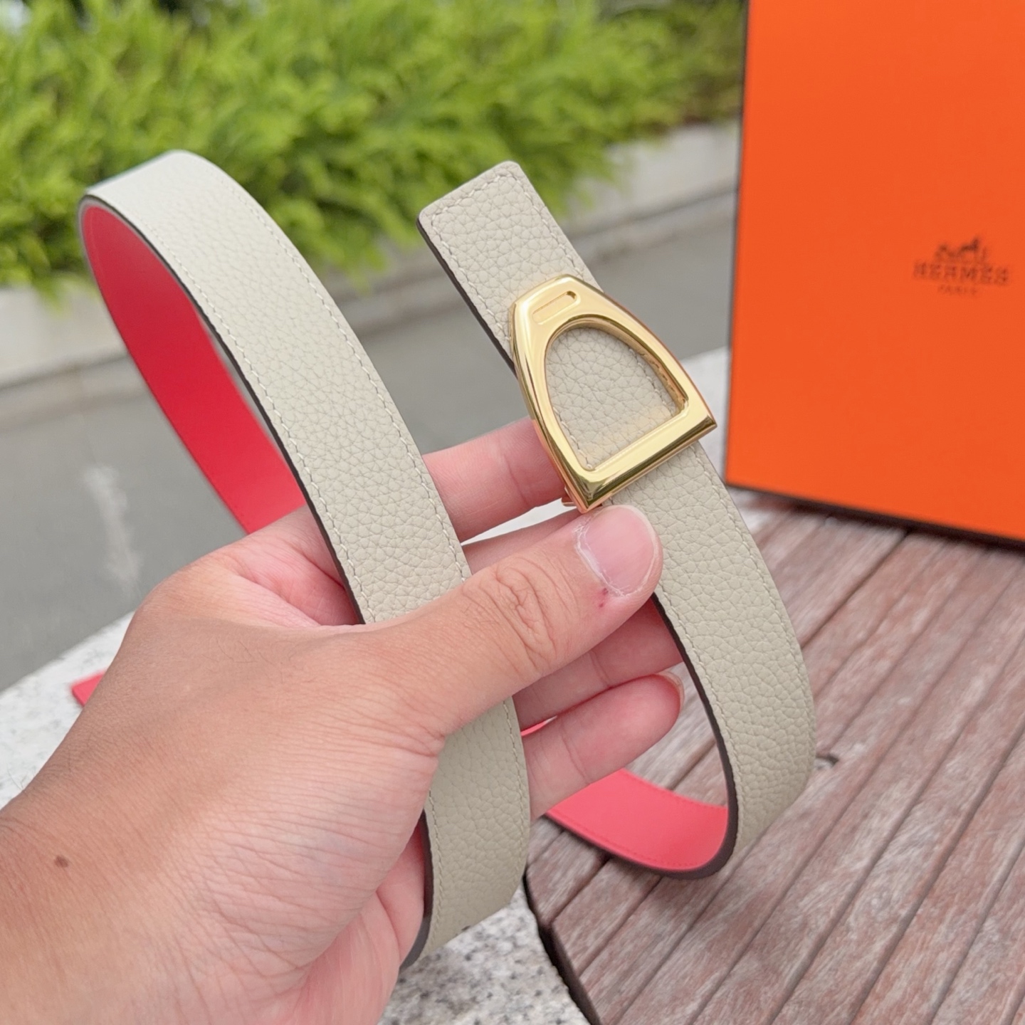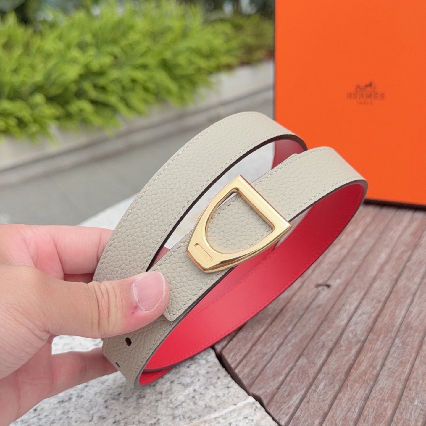 这款皮带是AAAAA 1:1 质量 (非常棒). 使用了和原版一模一样的材料. 商标部分也保持了和爱马仕/Hermes一样. 图片拍摄是实物皮带拍摄, 您所收到的实物保证和我们图片一模一样.