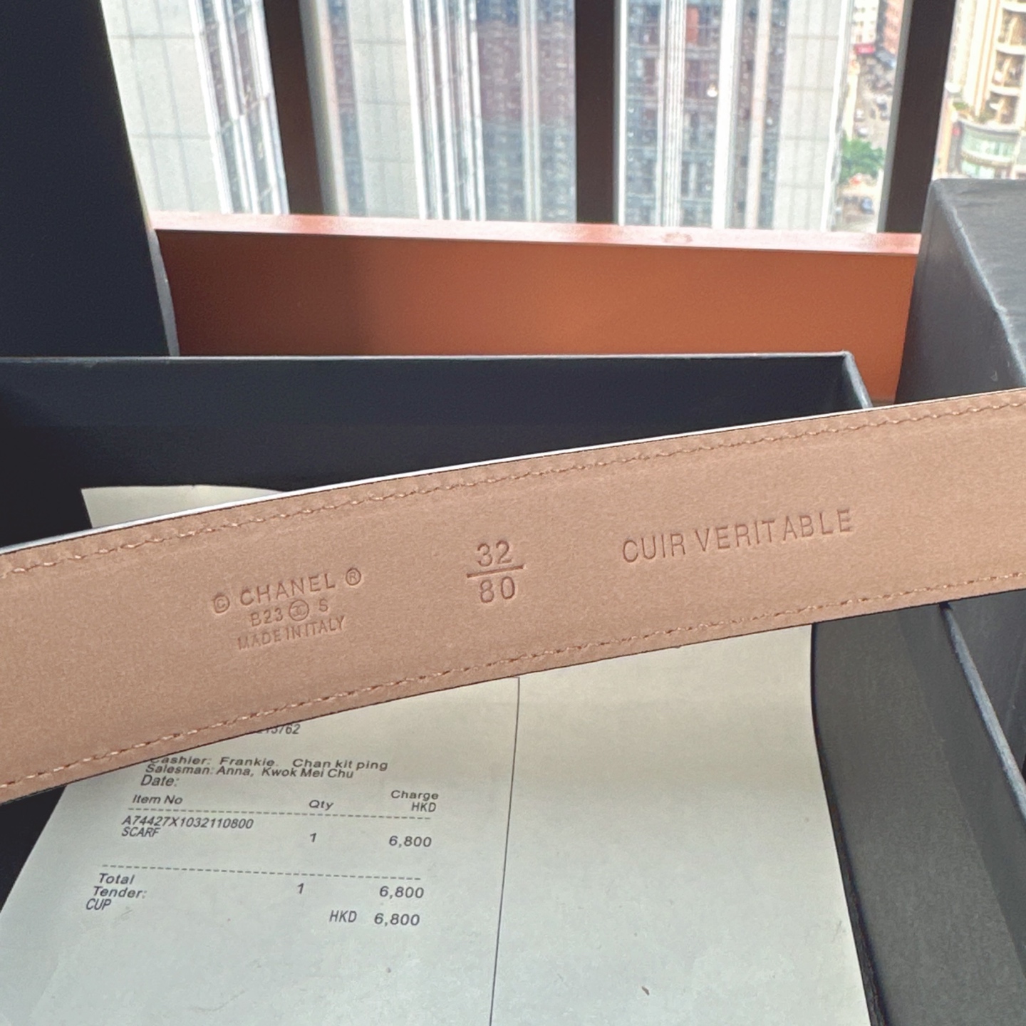 这款皮带是AAAAA 1:1 质量 (非常棒). 使用了和原版一模一样的材料. 商标部分也保持了和香奈儿/Chanel一样. 图片拍摄是实物皮带拍摄, 您所收到的实物保证和我们图片一模一样.