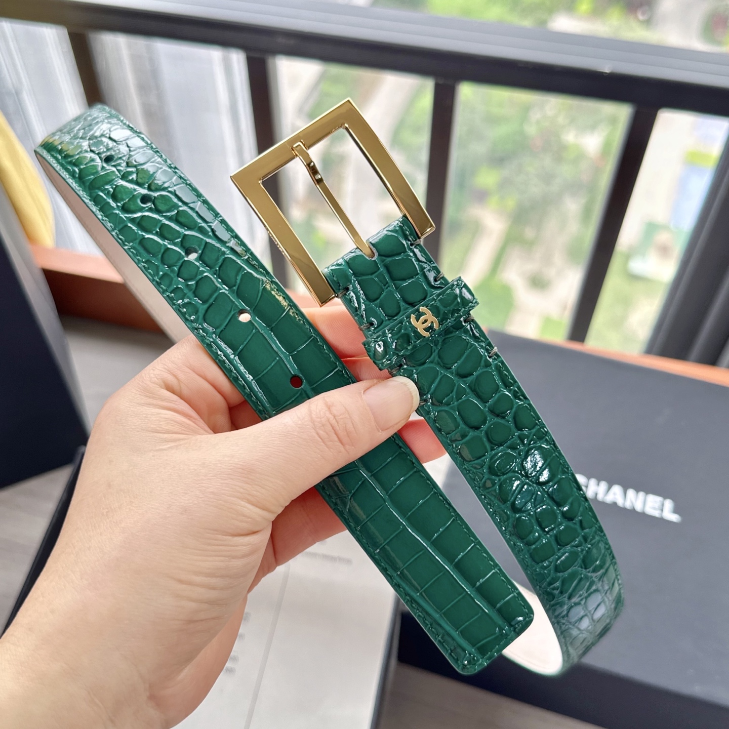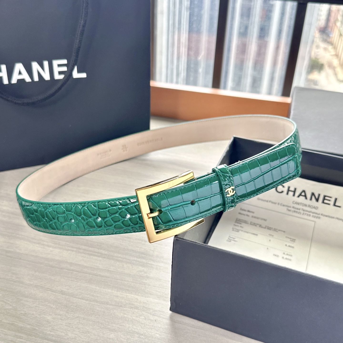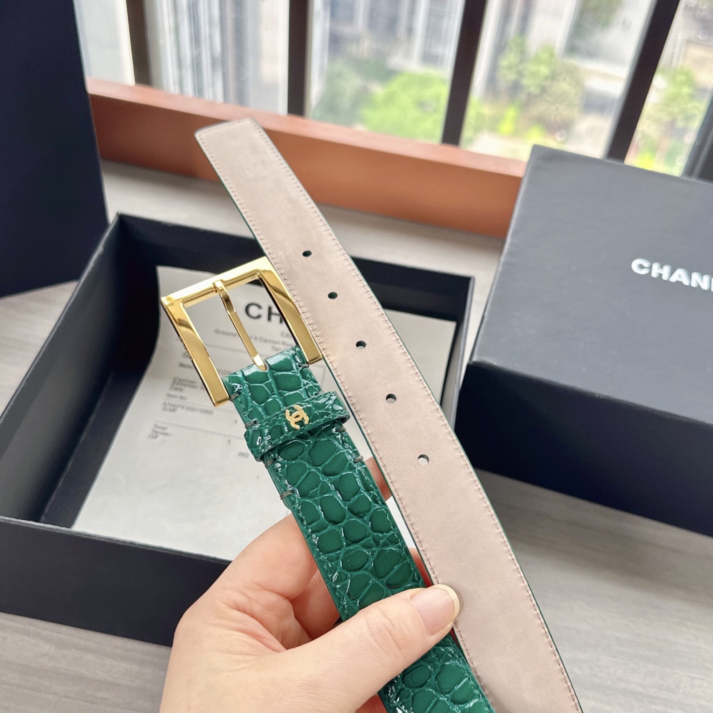 这款皮带是AAAAA 1:1 质量 (非常棒). 使用了和原版一模一样的材料. 商标部分也保持了和香奈儿/Chanel一样. 图片拍摄是实物皮带拍摄, 您所收到的实物保证和我们图片一模一样.
