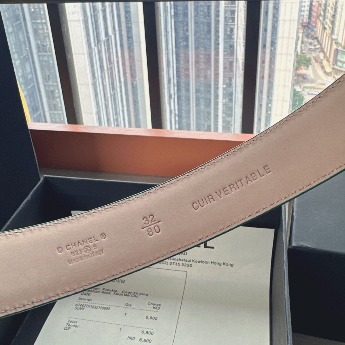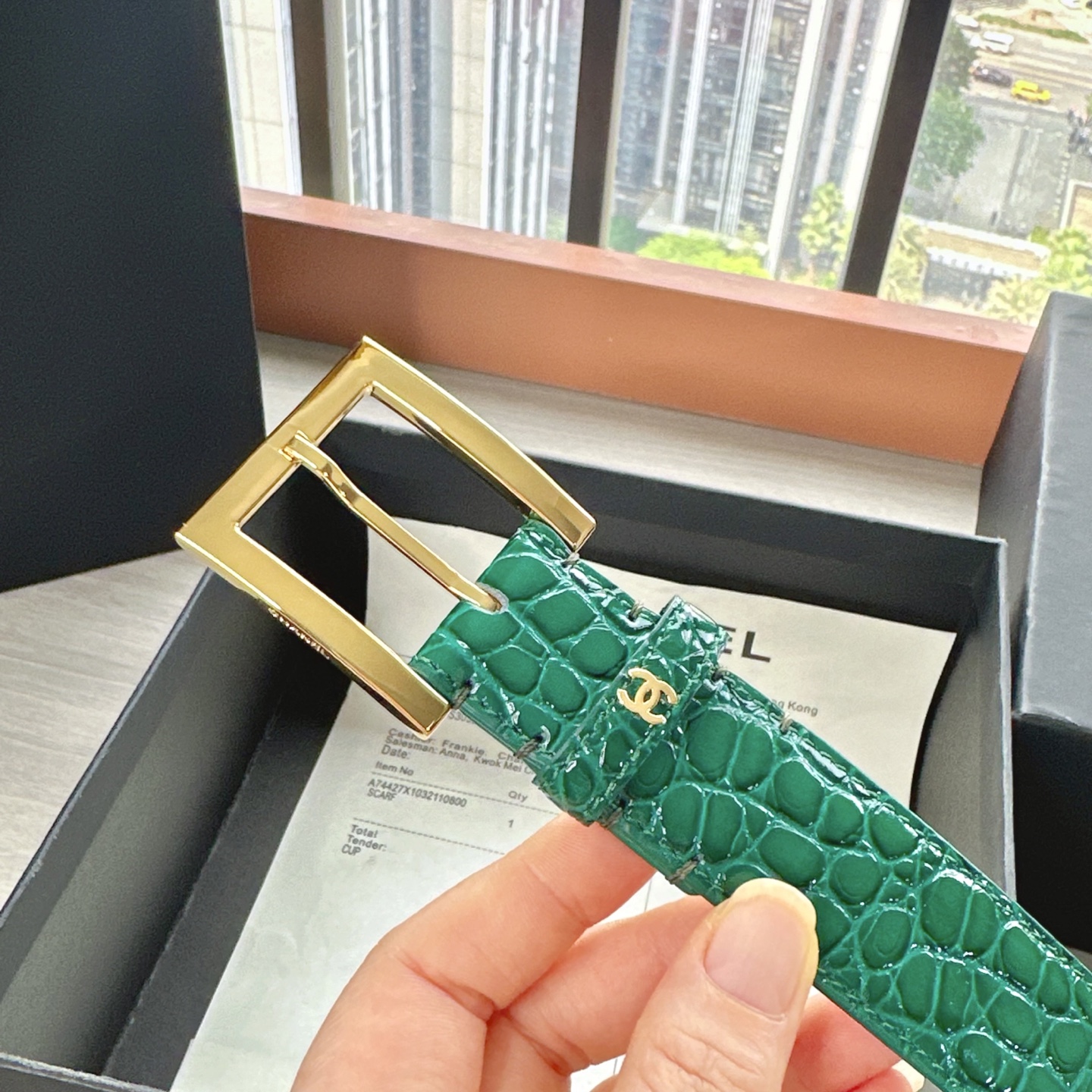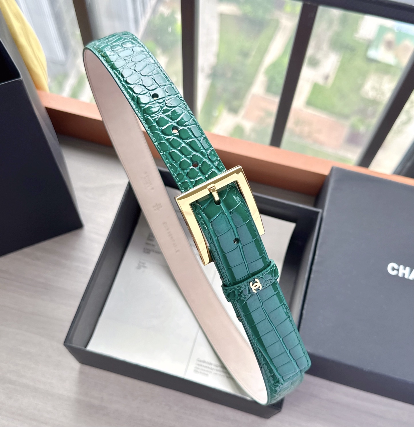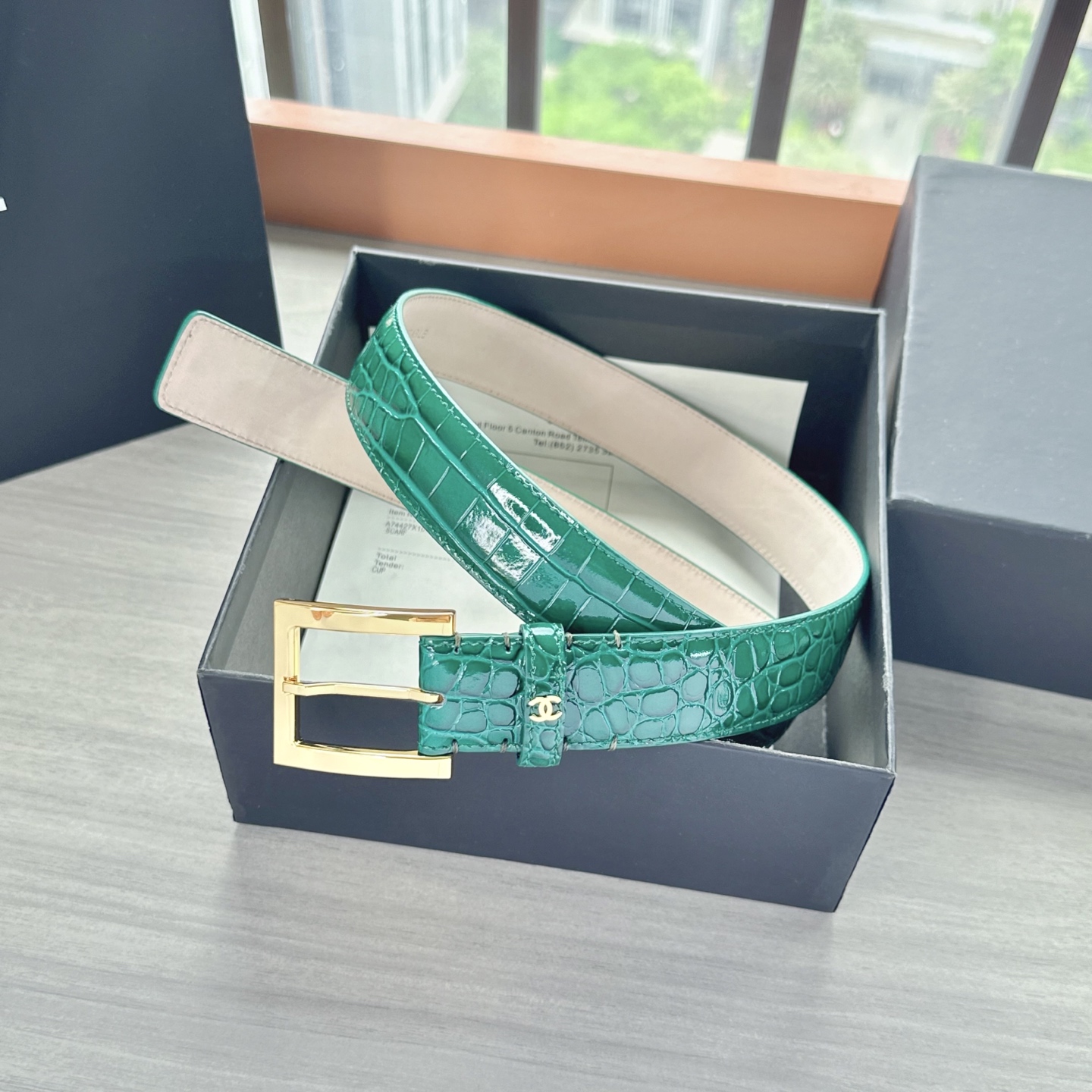 这款皮带是AAAAA 1:1 质量 (非常棒). 使用了和原版一模一样的材料. 商标部分也保持了和香奈儿/Chanel一样. 图片拍摄是实物皮带拍摄, 您所收到的实物保证和我们图片一模一样.