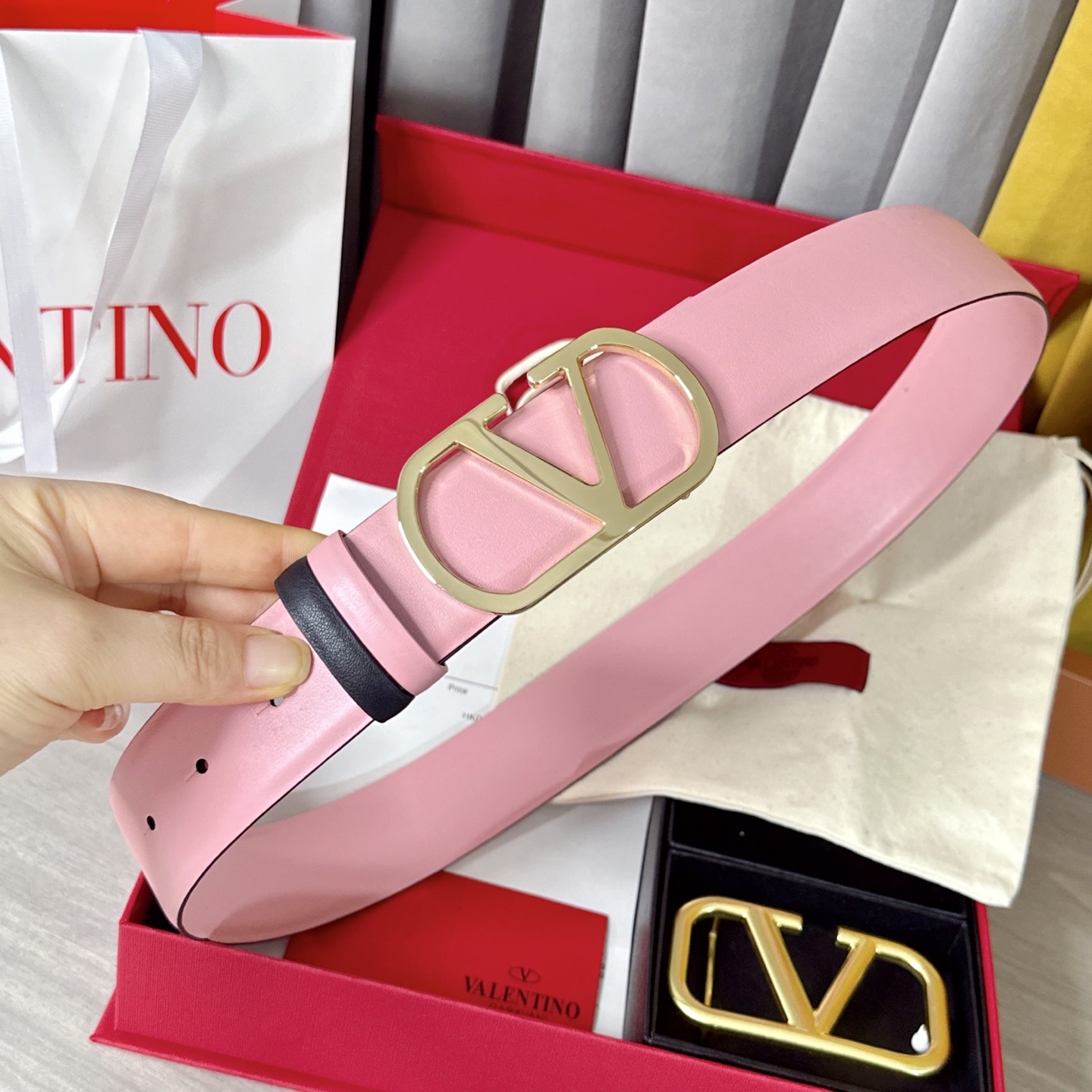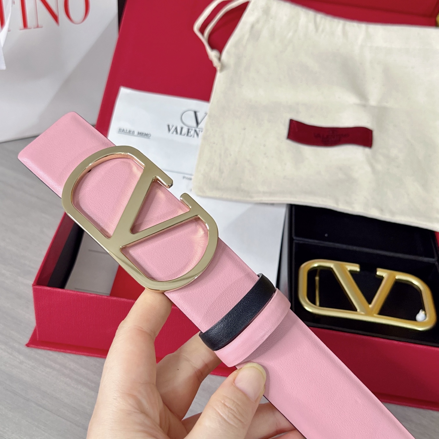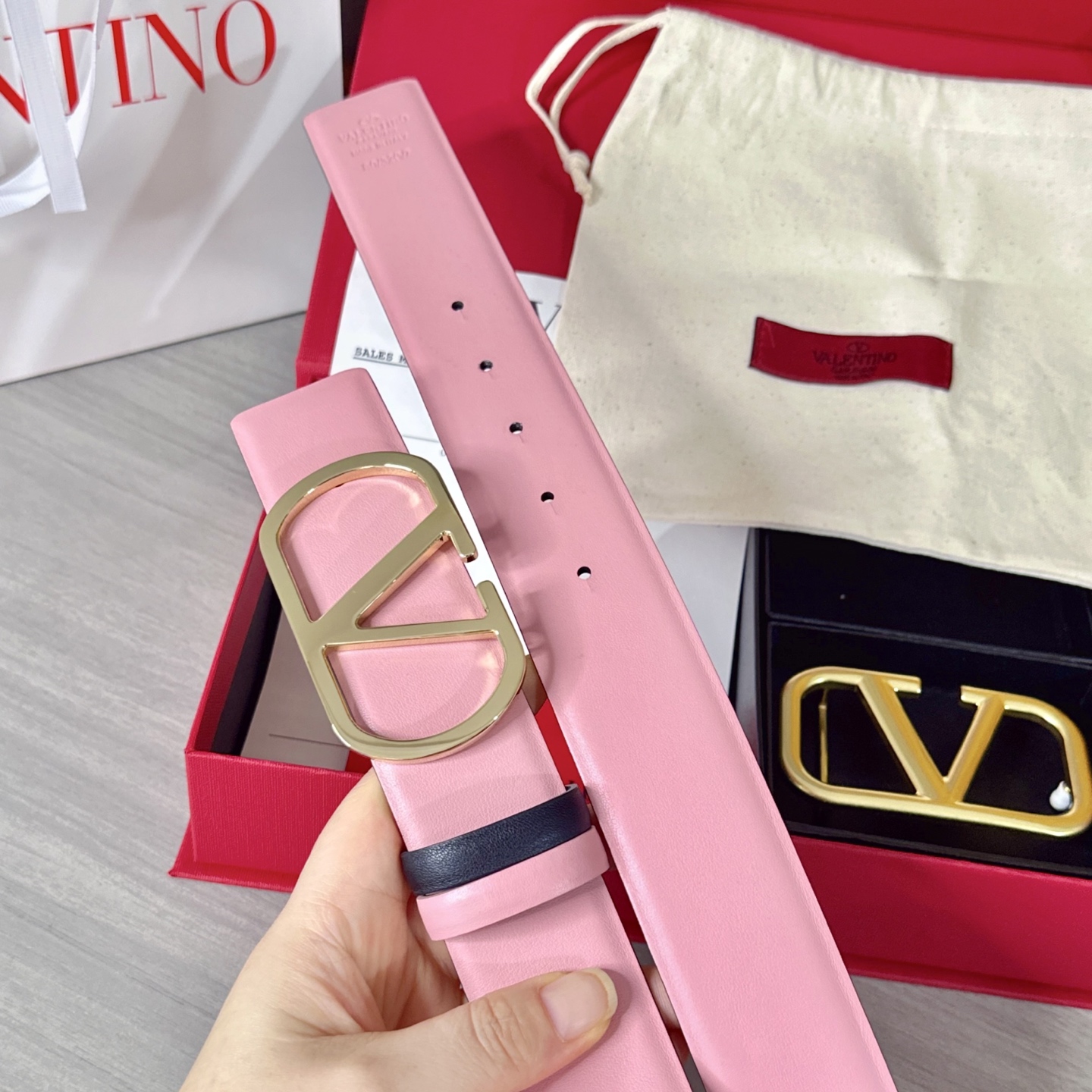 这款皮带是AAAAA 1:1 质量 (非常棒). 使用了和原版一模一样的材料. 商标部分也保持了和华伦天奴/Valentino一样. 图片拍摄是实物皮带拍摄, 您所收到的实物保证和我们图片一模一样.