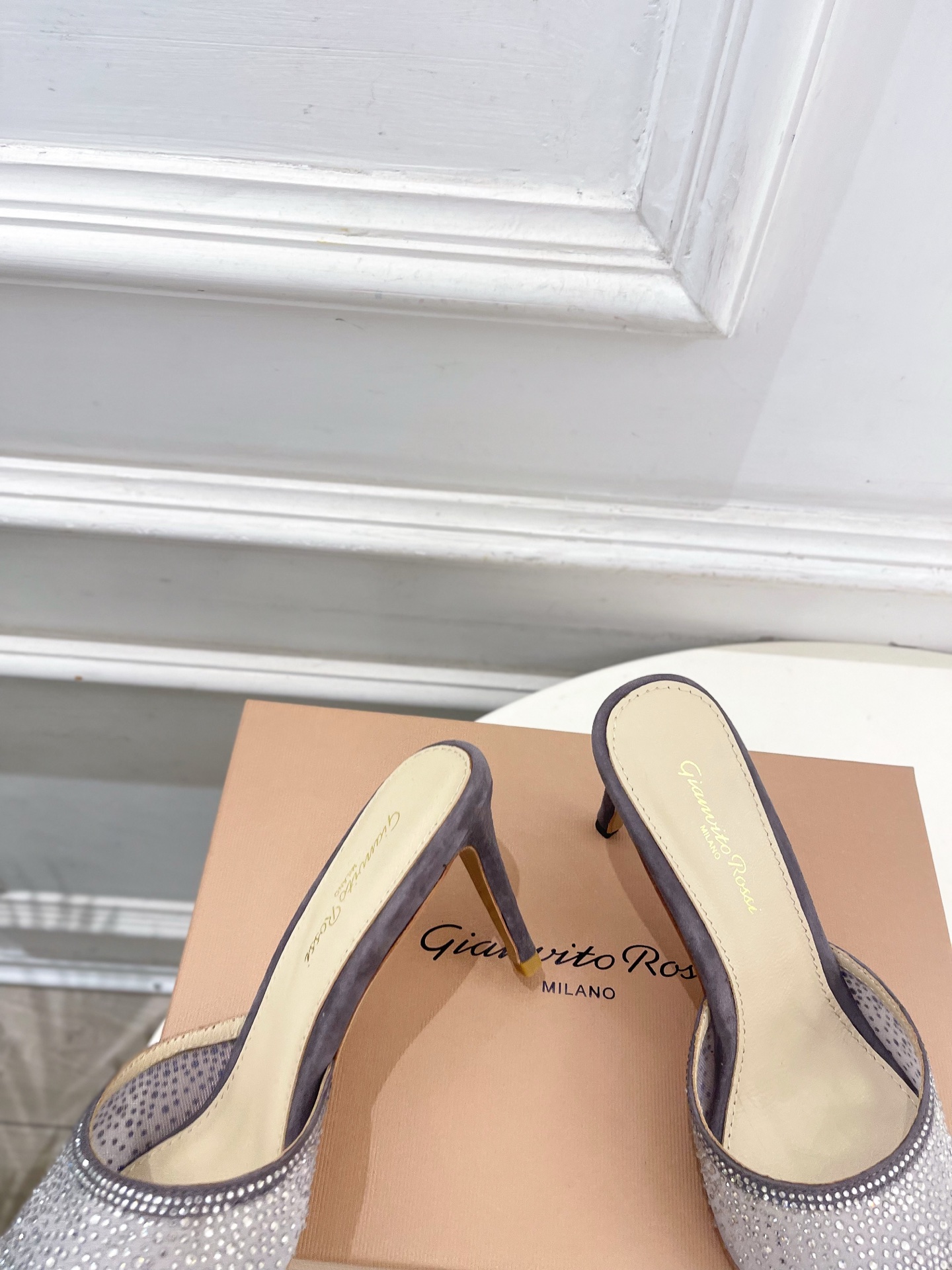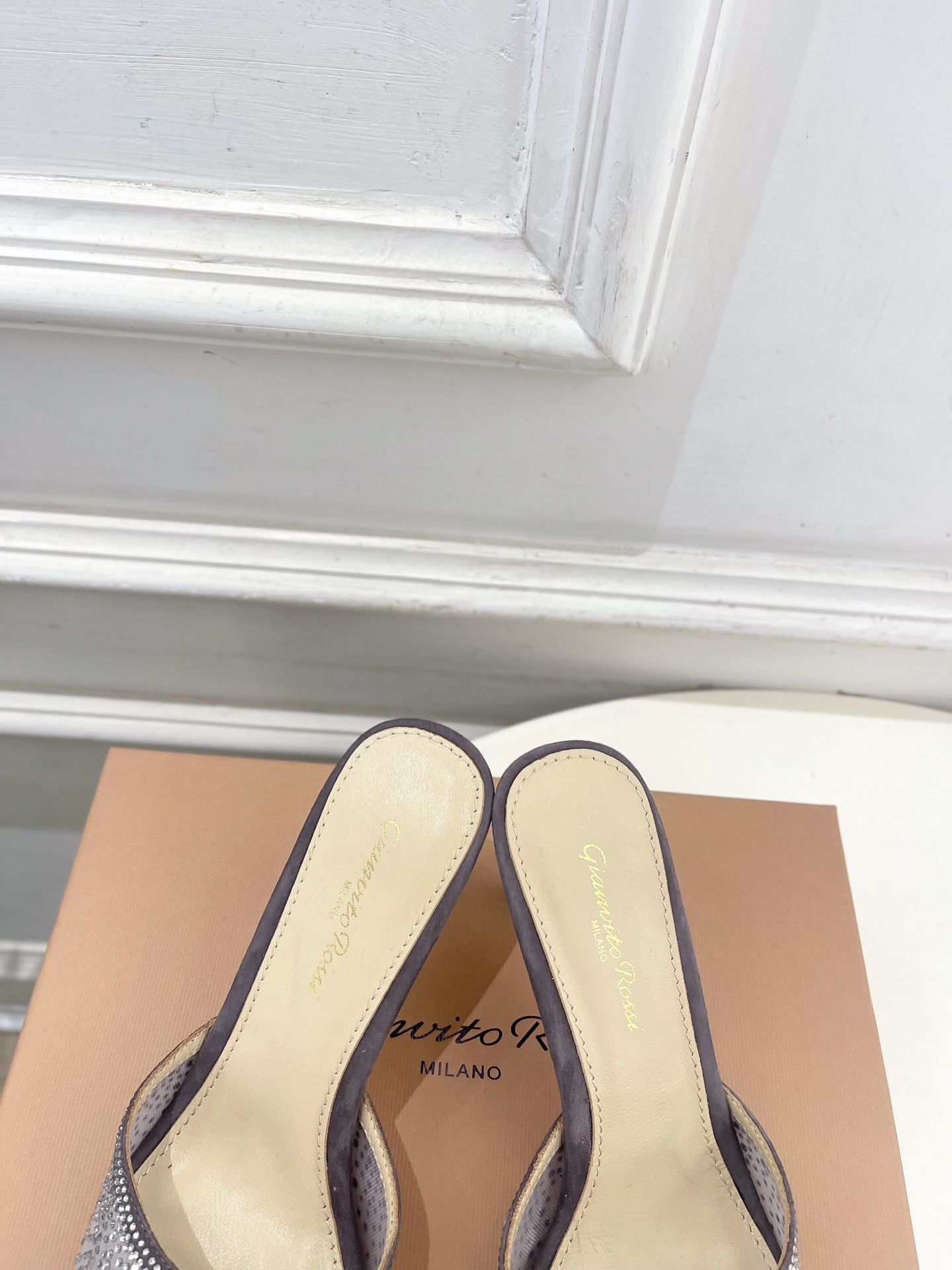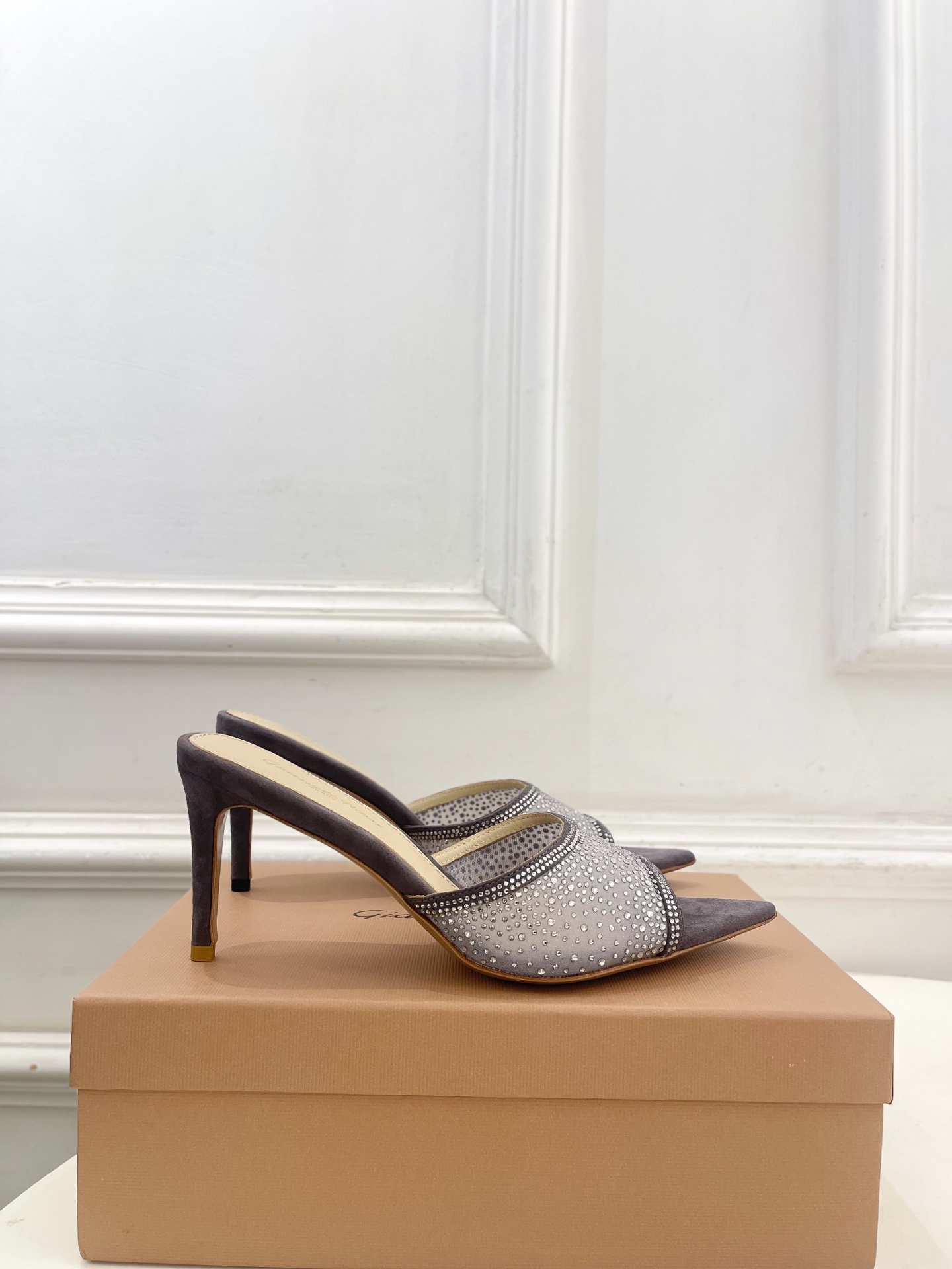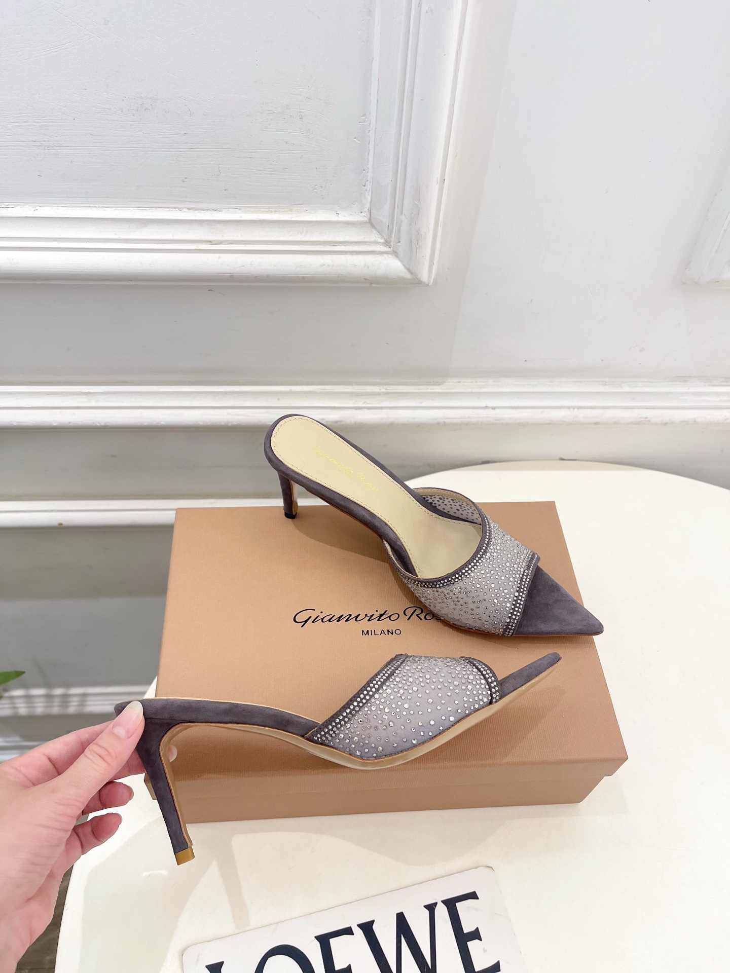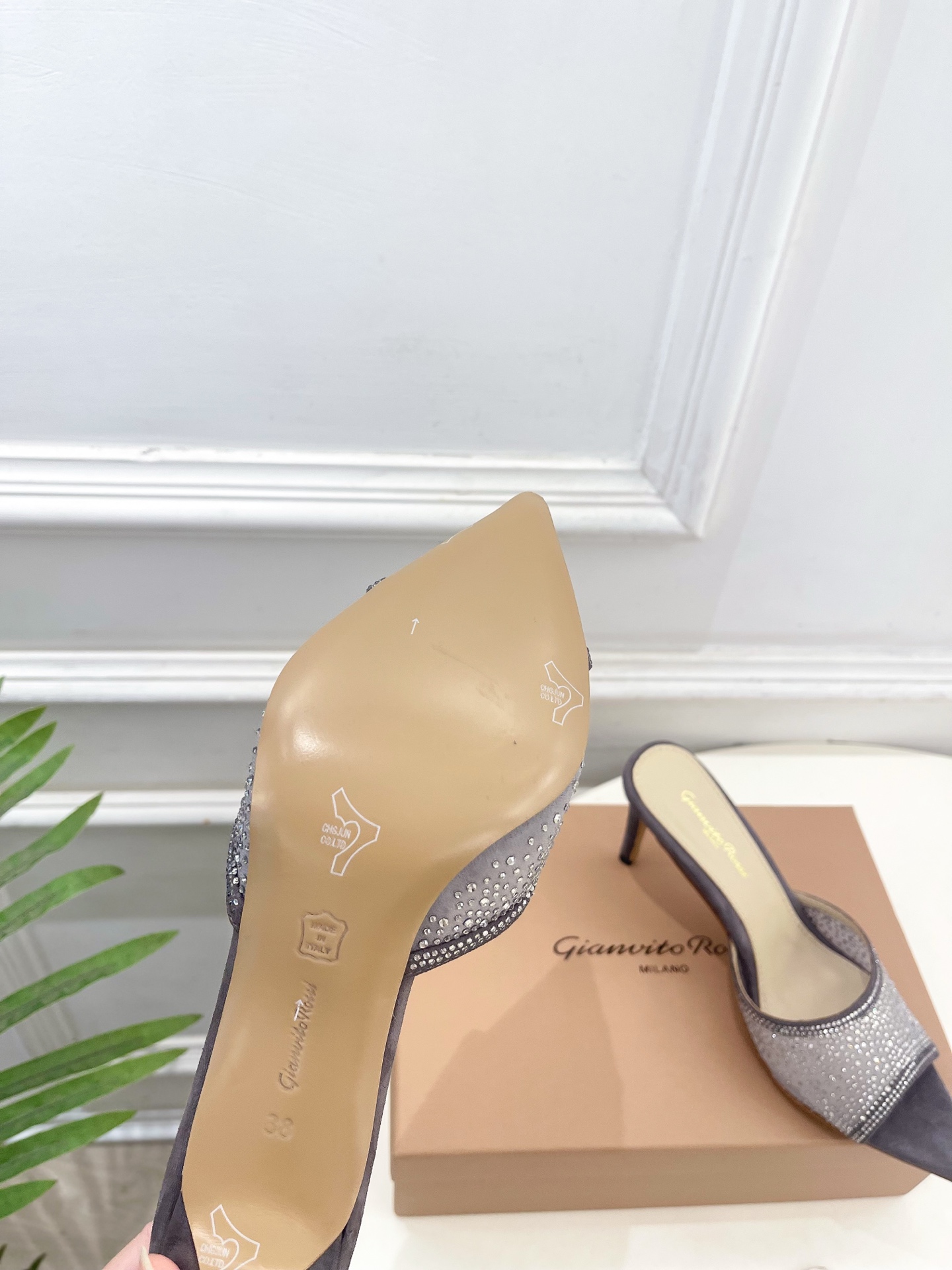 这款鞋子是AAAAA 1:1 质量 (非常棒). 使用了和原版一模一样的材料. 商标部分也保持了和Gianvito Rossi一样. 图片拍摄是实物鞋子拍摄, 您所收到的实物保证和我们图片一模一样.
