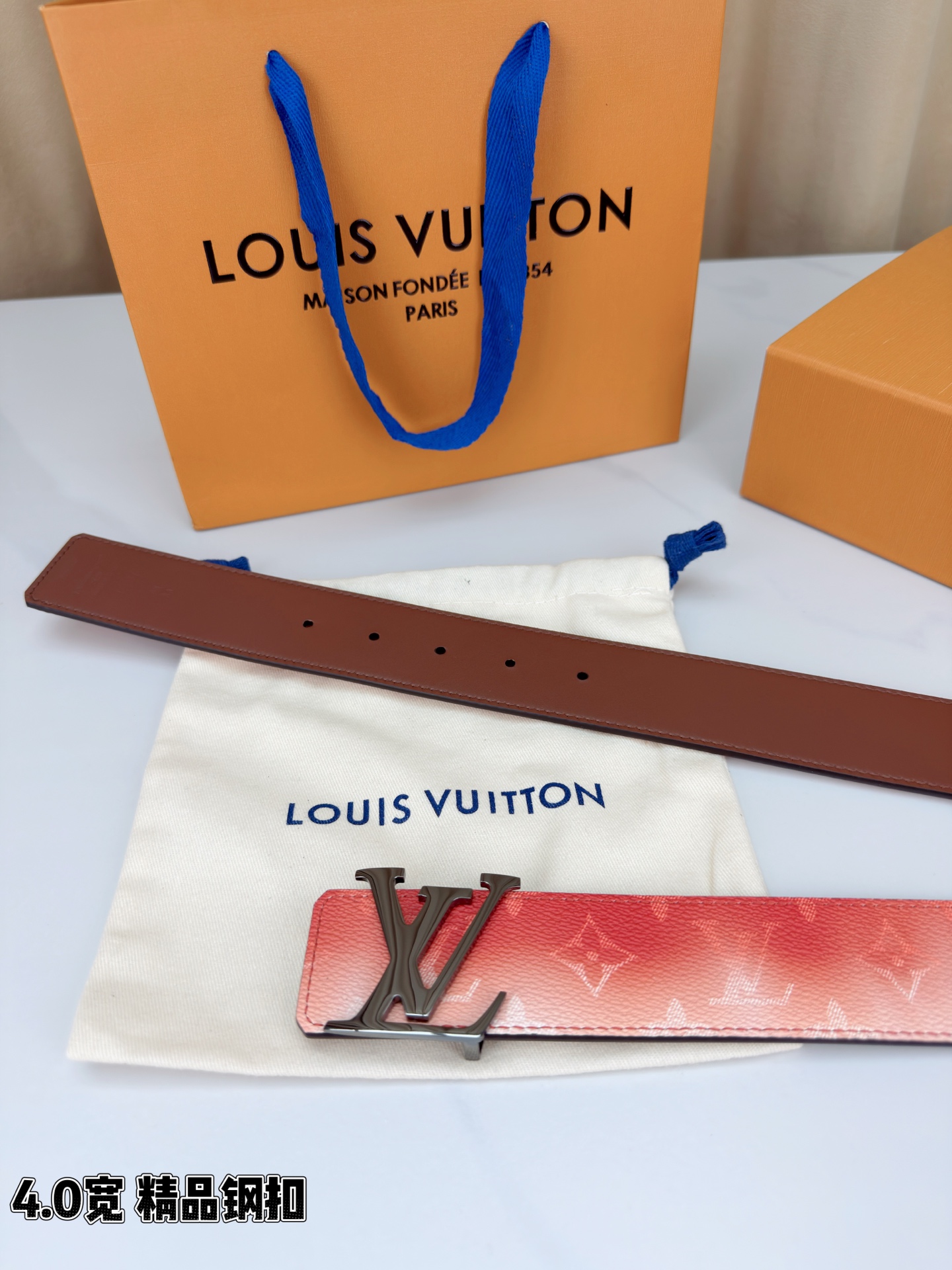 这款皮带是AAAAA 1:1 质量 (非常棒). 使用了和原版一模一样的材料. 商标部分也保持了和路易威登/Louis Vuitton一样. 图片拍摄是实物皮带拍摄, 您所收到的实物保证和我们图片一模一样.